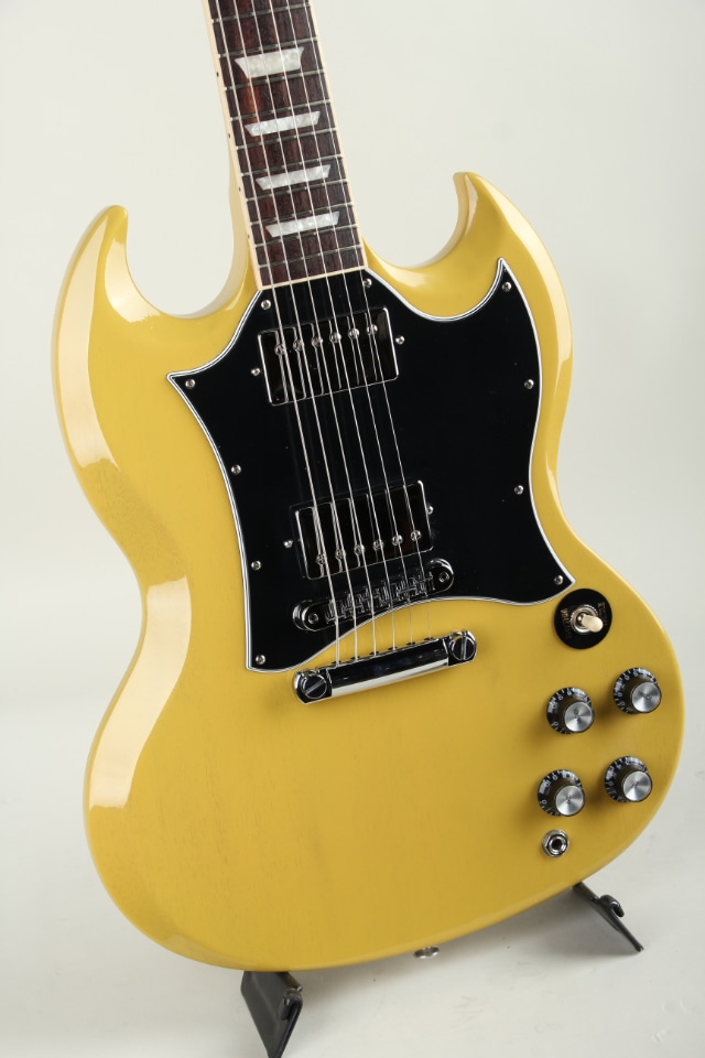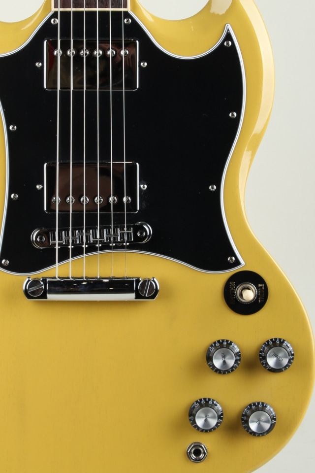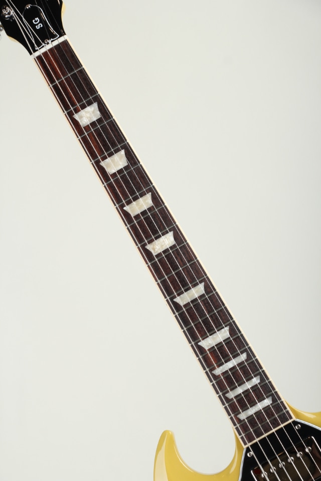 ラージピックガードや19フレットネックジョイントが特徴的な60年後期スタイルのリイシューモデル、SG Standard TV Yellowでございます。