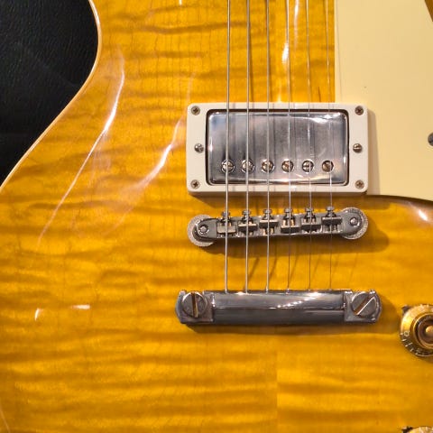 近年リファインされたより当時に近いヘッドトップの“Gibson”&“Les Paul”ロゴ、指板のディッシュインレイ素材の色味、サーキット内のポットやバンブルビーコンデンサーもビンテージライクな仕様が採用。アンポッテド仕様のカスタム・バッカー搭載、オールニカワ接着やトゥルーヒストリックパーツ採用等の基本仕様も、勿論継承されております。オリジナルサウンドに迫る立ち上がりのスピード感、反応の良さ、ファットで粘りの効いた素直に良いと感じさせてくれるグッドサウンドをご堪能いただけます。