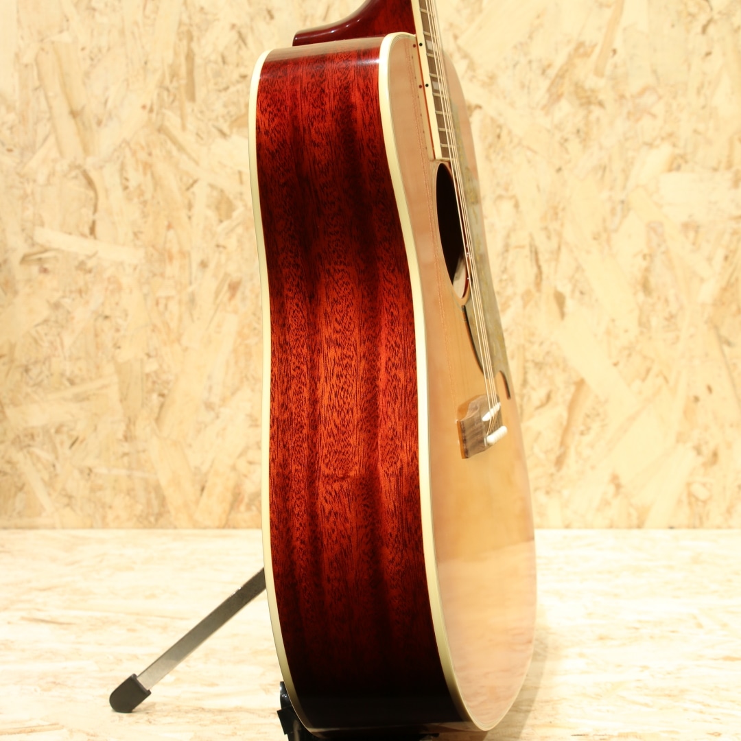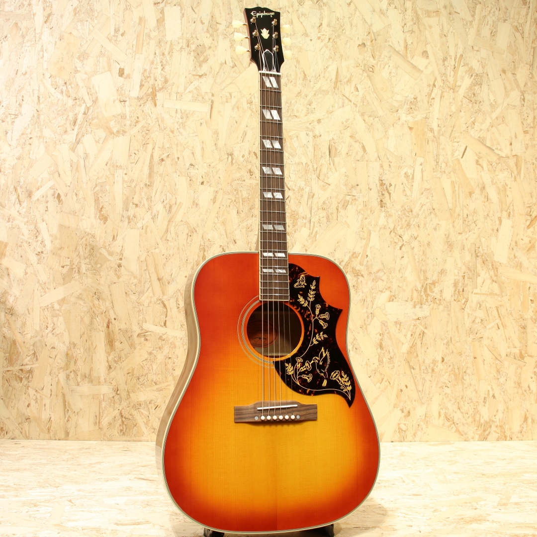 EpiphoneとGibson Custom Shopのコラボレーションによって製作される"Epiphone Inspired by Gibson Custom"コレクション。本器は1960年に発表され、ギブソン・カタログ初のスクエアショルダー・アコースティックギター・モデルとなったHummingbird誕生初年度を再現した一本”1960 Hummingbird Reissue HCS”。サーマリーエイジド処理が施されたスプルーストップ、マホガニーサイド&バック、サーマリーエイジド処理が施されたワンピースマホガニーネック、インディアンローズウッド指板&ブリッジ、スプリットパラレルグラムインレイ、スキャロップドXブレイシング、ヴィンテージグロスフィニッシュ、L.R.Baggs Element Bronze VTCピックアップ搭載。グリーンキーストーンボタンを備えた金メッキのEpiphone Deluxeチューナーが搭載。ハミングバードらしい明るく快活な歯切れの良いサウンドは健在。まとまりの良さやブライトなサウンド故にコードストロークが特に気持ち良く響いてくれます。ピックアップにはL.R Baggs Element Bronze VTCピックアップ搭載。コントローラーはVol,Toneの2つで迷うことのない構成です。シンプルな操作感に太くナチュラルなトーン。音の芯を捉えたサウンドは扱いやすく、ライブ、配信、レコーディングや宅録とこなせる幅の広い優秀なシステムなど、どの用途においても活躍の見込める音色です。ギブソン・カスタムにインスパイアされた、世界で最も有名なフラットトップギターの1つを再現したモデル。ワンランク上のギター、サブギター、ライブで使えるエレアコ、これらをお探しの方には一度お試し頂きたいギター。新たなステージに立ったエピフォン、是非ご体感下さいませ。
