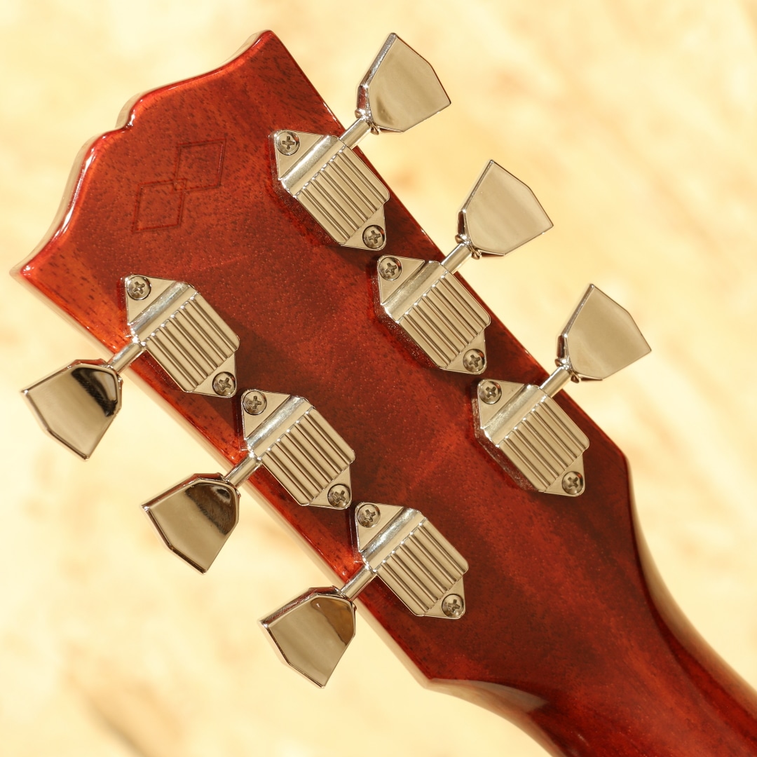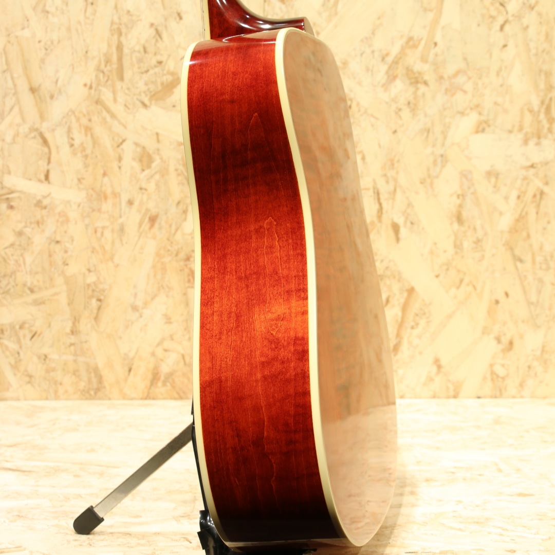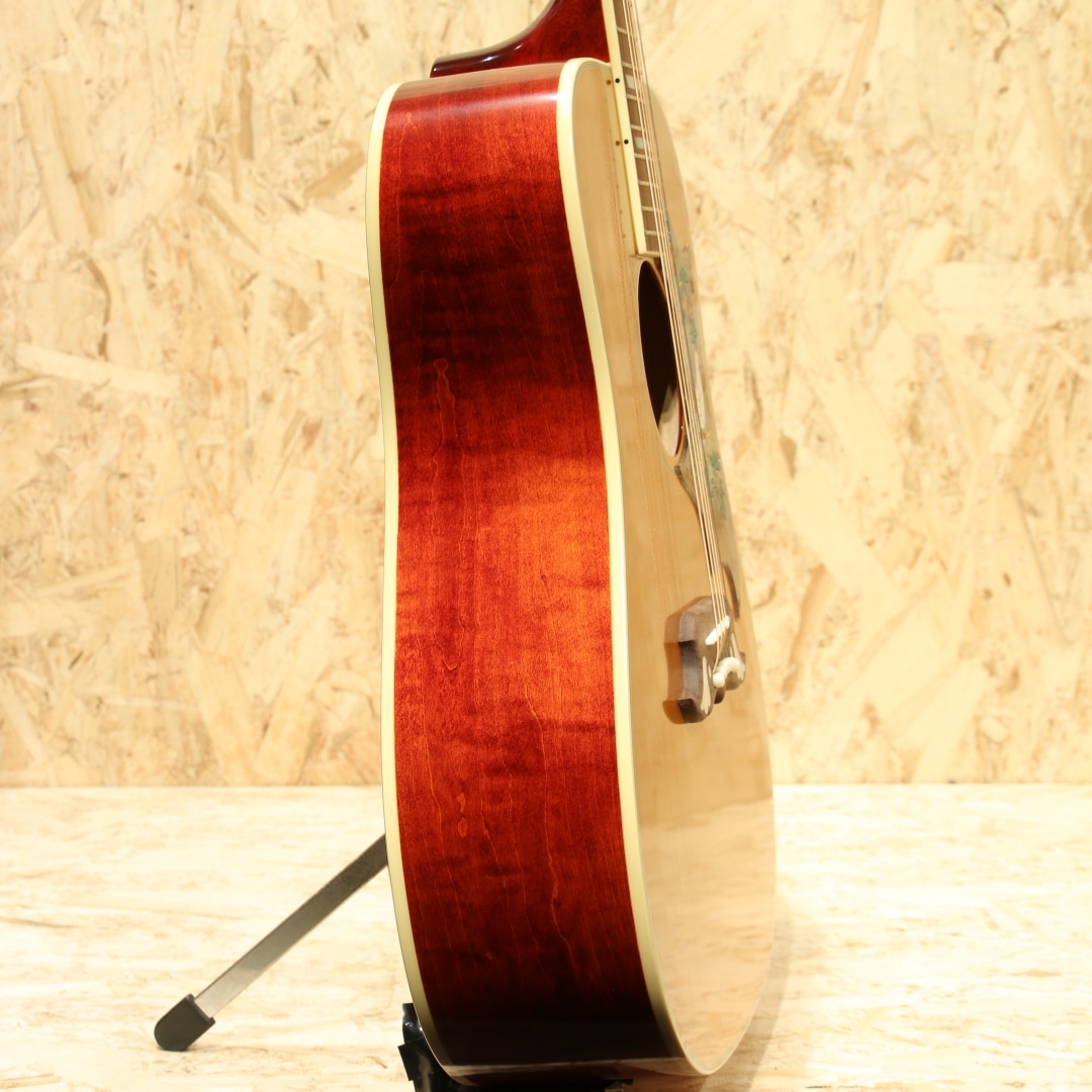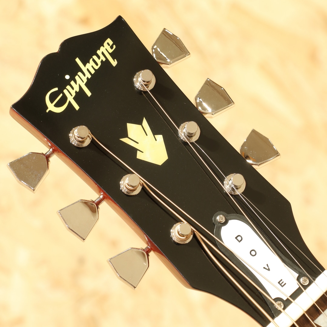 EpiphoneとGibson Custom Shopのコラボレーションによって製作されるEpiphone Inspired by Gibson Customコレクション。本器はGibson Doveのナチュラルカラー初年度を再現した一本”1963 Dove Reissue NAT”。サーマリーエイジド処理が施されたスプルーストップ、フィギュアド・メイプルサイド&バック、サーマリーエイジド処理が施されたワンピースマホガニーネック、ローズウッド指板&ブリッジ、スプリットパラレルグラムインレイ、スキャロップドXブレイシング、VOSフィニッシュ、クルーソンのワッフルバックペグ、L.R Baggs Element Bronze VTCピックアップ搭載。ロングスケールのダヴならではのパワフルさとハリ感たっぷりのサウンド、メイプルらしいはっきりとした輪郭と充分に響き残るサスティーンが心地よいです。ピックアップにはL.R Baggs Element Bronze VTCピックアップ搭載。コントローラーはVol,Toneの2つで迷うことのない構成です。シンプルな操作感に太くナチュラルなトーン。音の芯を捉えたサウンドは扱いやすく、ライブ、配信、レコーディングや宅録とこなせる幅の広い優秀なシステムなど、どの用途においても活躍の見込める音色です。ギブソン・カスタムにインスパイアされた、世界で最も有名なフラットトップギターの1つを再現したモデル。ワンランク上のギター、サブギター、ライブで使えるエレアコ、これらをお探しの方には一度お試し頂きたいギター。新たなステージに立ったエピフォンを是非ご体感下さいませ。