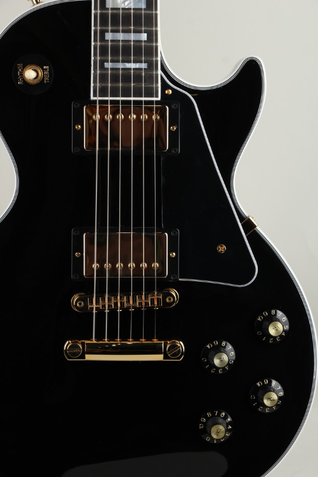 レスポール氏本人によるリクエストで、タキシードに似合うことをコンセプトにそれまでのレスポール・モデルの高級バージョンとして1953年に初めてリリースされました。今日に至るまでレスポール・スタンダード同様にレスポール・カスタムにもいくつかのマイナーチェンジが施されており、3-ピースメイプルトップ / マホガニーボディ、ボリュート付きメイプルネックなど、70年代にフォーカスした製品となっております。