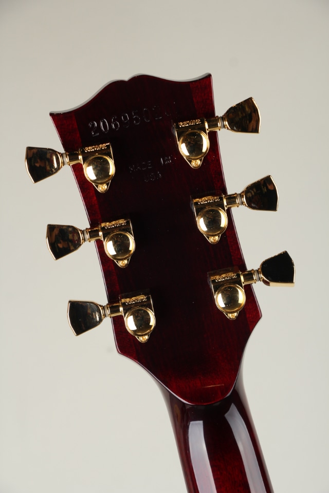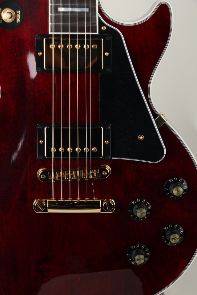 ピックアップには、1966年から1979年までの間に製造されていた通称"T-Top"を彷彿とさせるネームが与えられた"Calibrated T-Type"が搭載されており、ゴールドパーツで統一されたペグやブリッジなどのハードウェア、マザーオブパールブロックインレイ、ヘッドとボディに装飾されたバインディングに加えて、メイプルトップのマホガニーボディ、メイプルネックのエボニー指板といったレスポール・カスタムを象徴する伝統的なスペックとなっております。
