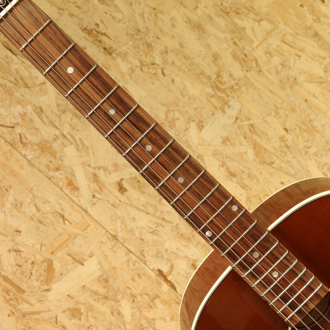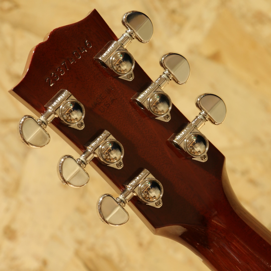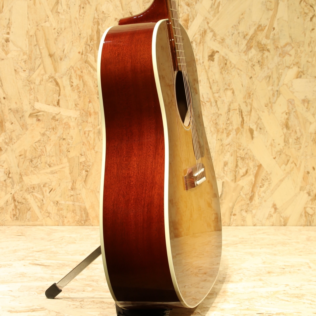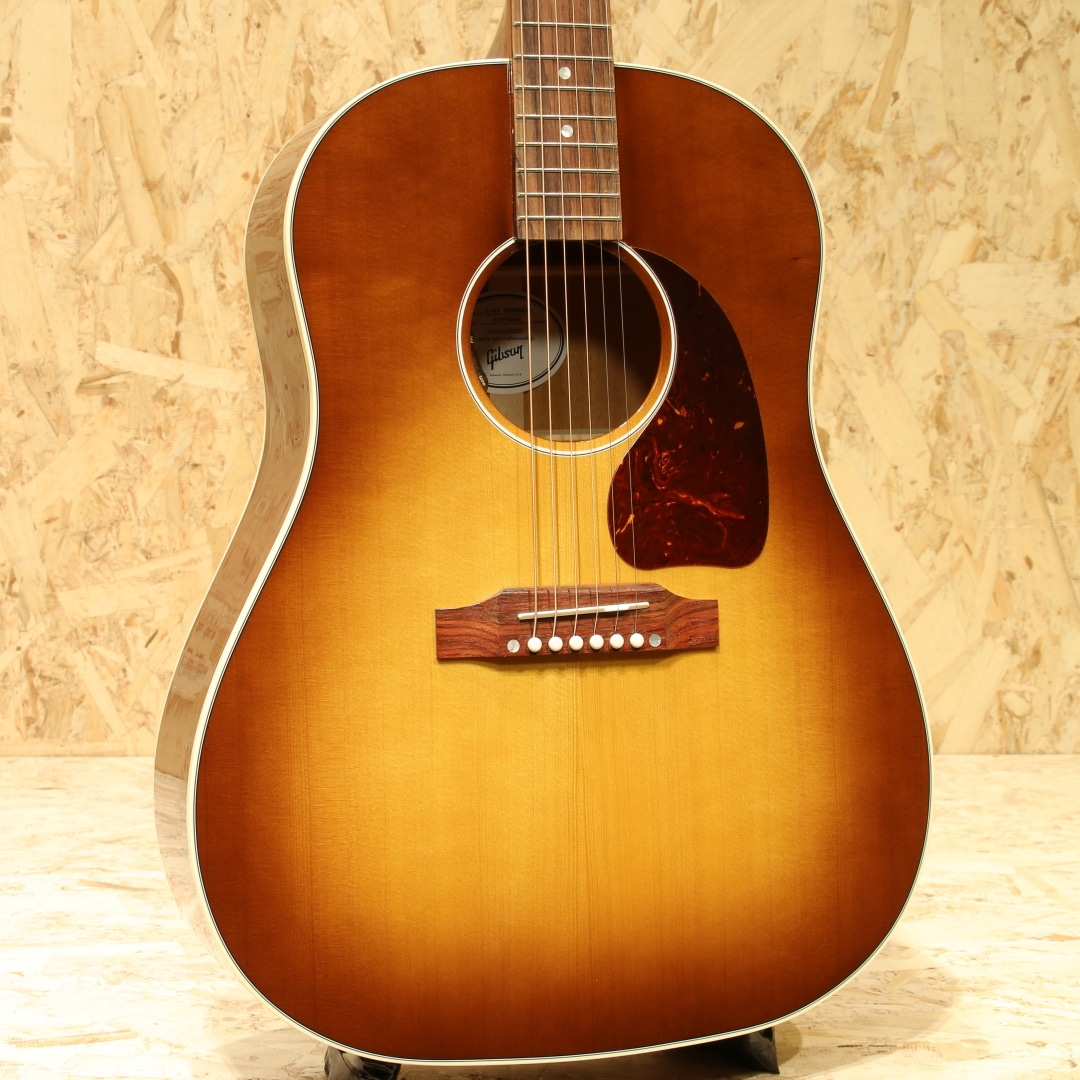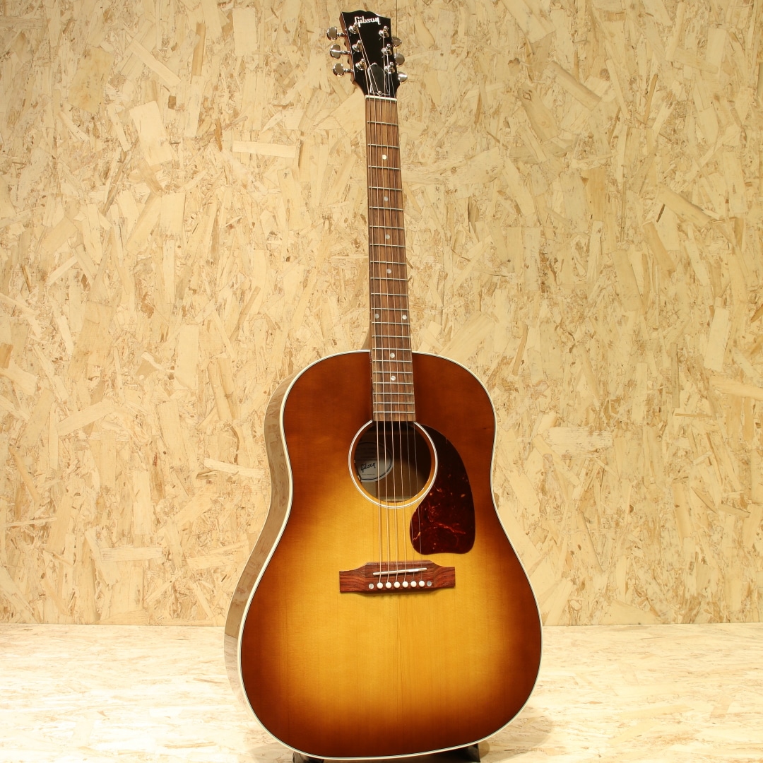 世界中のミュージシャンが愛用するギブソンフラットトップの銘器、"J-45"。発売当時からの伝統的なスタイルを踏襲しながら、時代ごとのニーズに合わせた仕様変更を繰り返し製造を続けています。本器は”グレイテストヒッツ”と銘打たれたGIBSON社が企画したラインナップ外のハニーバーストにて仕上げられた特別生産モデルです!シトカスプルーストップ、マホガニーサイド&バック、マホガニーネック、ローズウッド指板&ブリッジ、グローバーペグ、MOP指板ドット、べっ甲柄スモールガード、スキャロップド・Xブレイシング、L.R.Baggs Element VTCピックアップ標準装備。スムーズな運指をフォローする、やや薄めに仕上げられたスリムテーパーネックシェイプや丸みを帯びた指板サイド処理。ネック周りのストレスなく演奏を楽しむことが出来ます。バランスの取れた音色にダイナミックレンジの広いサウンドメイク。演奏者のフィーリングをダイレクトに表現してくれます。搭載のエレメントVTCピックアップは最新の1ボリューム/1トーン仕様。シンプルなコントローラーは操作に迷う事も少なく、ナチュラルでパワフルなサウンドを出力できます。ワーキングホースの2つ名の通り、ダイナミックなストロークからフィンガープレイまで幅広く応えてくれるオールラウンドな1本。1942年の発売から80年ほどのあいだ数々のマイナーチェンジがなされましたが、基本的なスタイルは不変です。ブライトで気っ風の良いレスポンス、ドライでどこか泥臭さを感じさせる倍音、外観と違わぬ荒削りなサウンド。発表以来、数々の名演を支えてきた"J-45"、ウェスタンな雰囲気をまとわすハニーバースト、レギュラーには無いからフィニッシュですが、お値段据え置き、プレゼントプライスでのご案内です。!オリジナルハードケースが付属します。