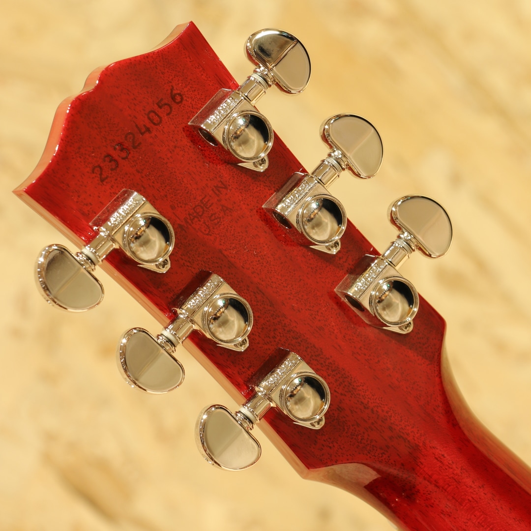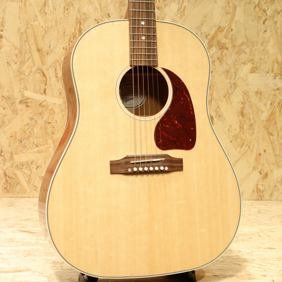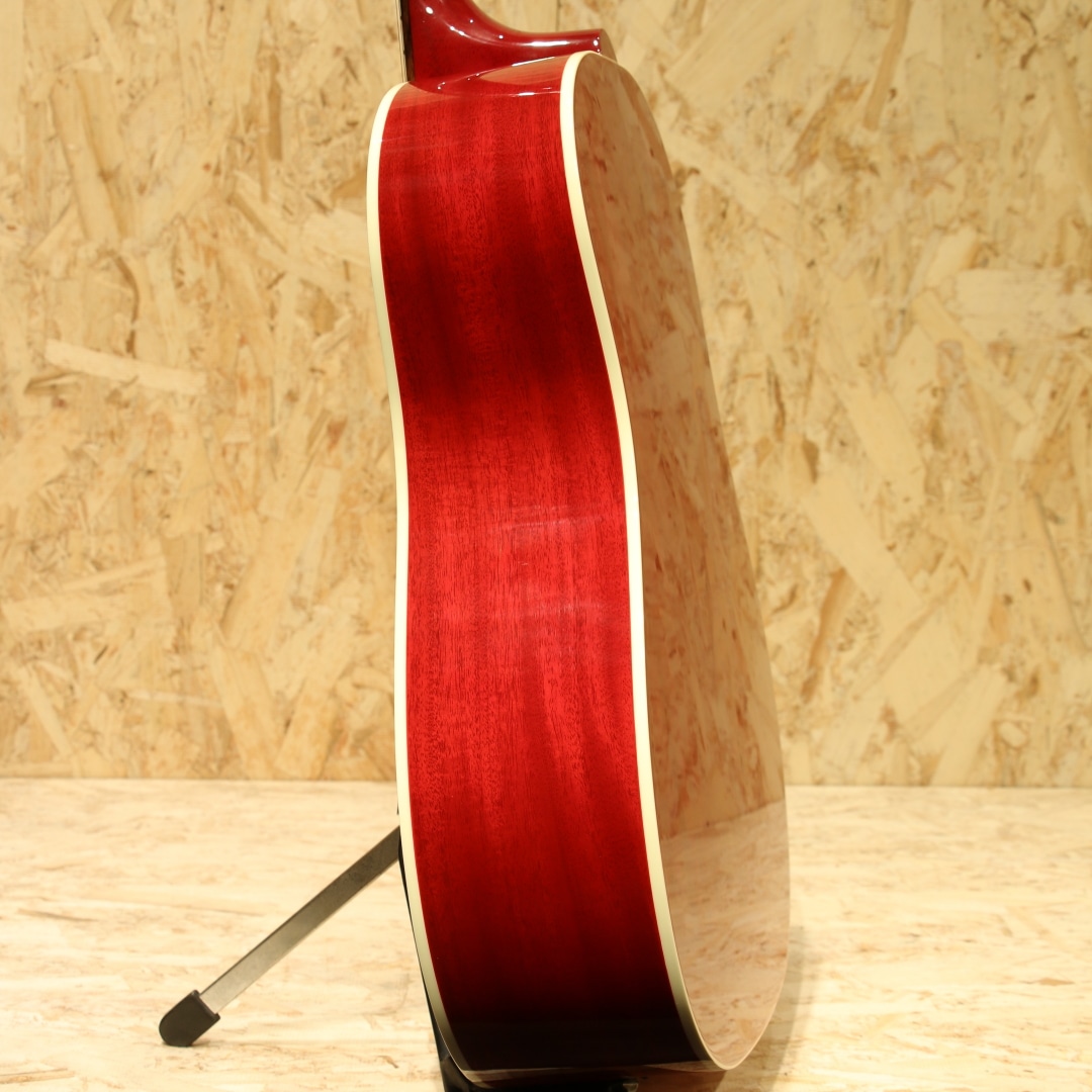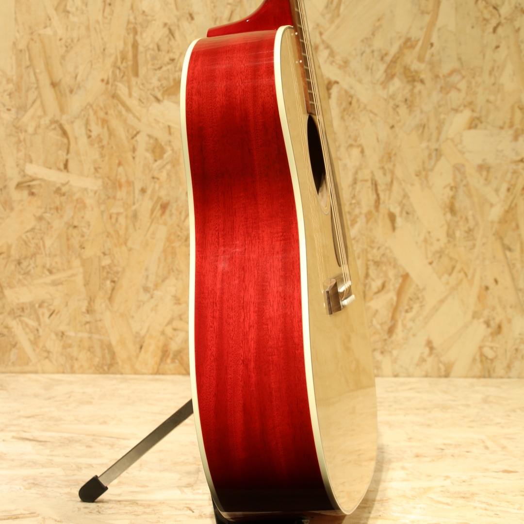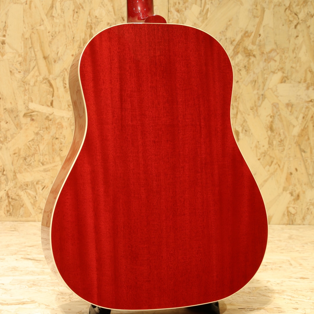 世界中のミュージシャンが愛用するギブソンフラットトップの銘器、"J-45"。発売当時からの伝統的なスタイルを踏襲しながら、時代ごとのニーズに合わせた仕様変更を繰り返し製造を続けています。本器は”グレイテストヒッツ”と銘打たれたGIBSON社が企画した特別生産モデル、スタンダード仕様はそのままにナチュラルトップ、サイド&バックとネック裏を鮮やかなチェリーレッドカラーにて仕上げられた1本!シトカスプルーストップ、マホガニーサイド&バック、マホガニーネック、ローズウッド指板&ブリッジ、グローバーペグ、MOP指板ドット、べっ甲柄スモールガード、スキャロップド・Xブレイシング、L.R.Baggs Element VTCピックアップ標準装備。スムーズな運指をフォローする、やや薄めに仕上げられたスリムテーパーネックシェイプや丸みを帯びた指板サイド処理。ネック周りのストレスなく演奏を楽しむことが出来ます。バランスの取れた音色にダイナミックレンジの広いサウンドメイク。演奏者のフィーリングをダイレクトに表現してくれます。搭載のエレメントVTCピックアップは最新の1ボリューム/1トーン仕様。シンプルなコントローラーは操作に迷う事も少なく、ナチュラルでパワフルなサウンドを出力できます。ワーキングホースの2つ名の通り、ダイナミックなストロークからフィンガープレイまで幅広く応えてくれるオールラウンドな1本。1942年の発売から80年ほどのあいだ数々のマイナーチェンジがなされましたが、基本的なスタイルは不変です。ブライトで気っ風の良いレスポンス、ドライでどこか泥臭さを感じさせる倍音、外観と違わぬ荒削りなサウンド。発表以来、数々の名演を支えてきた"J-45"、レギュラー外のカラーリングですがお値段据え置き、プレゼントプライスでのご案内です!オリジナルハードケースが付属します。
