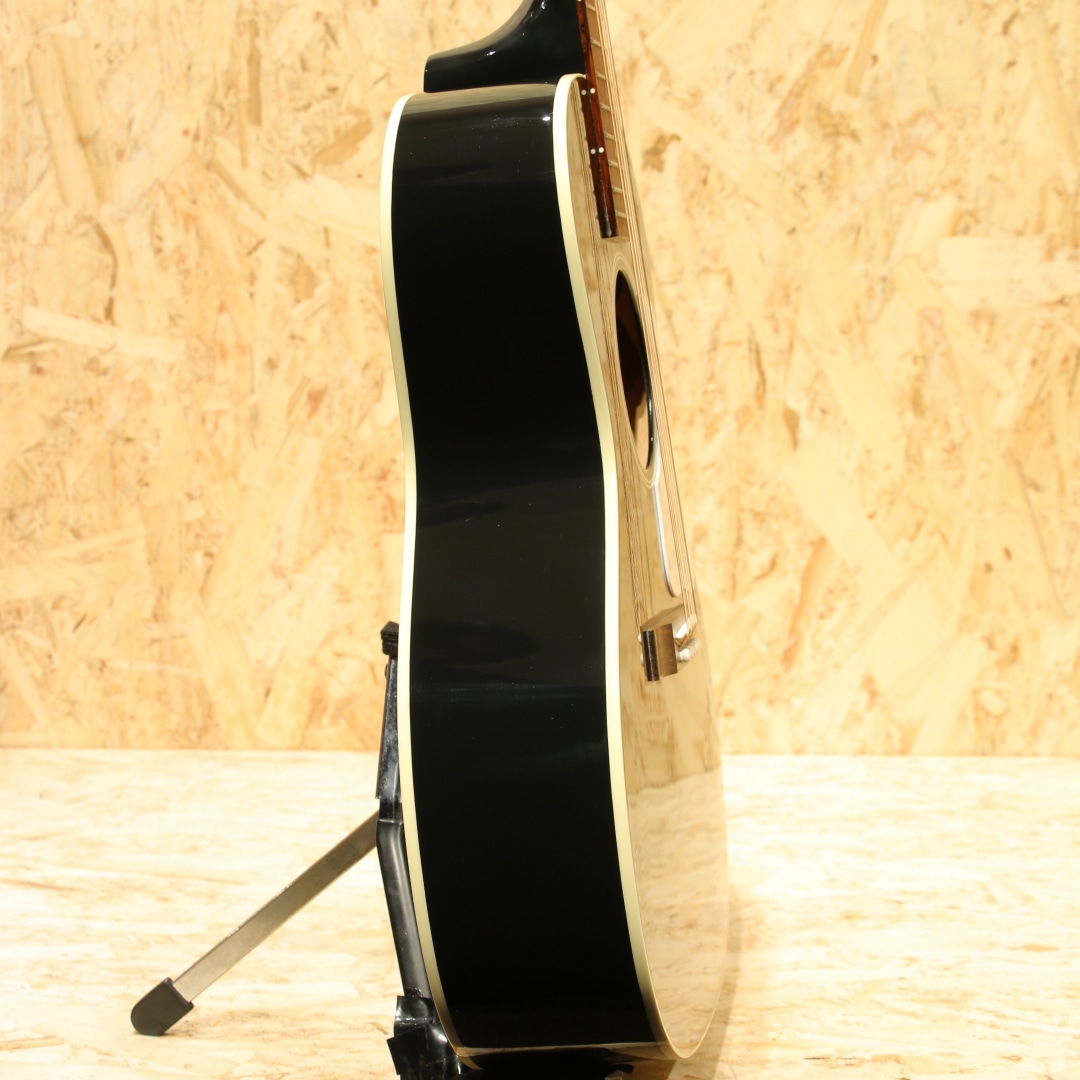 1932年に発表された歴史的銘器"L-00"の新基準のスタンダードモデル"L-00 Standard"。本器は弊社オーダーモデル、同ブランドで絶大な人気を誇るエボニーブラックフィニッシュフィニッシュにホワイトカラーピックガードを採用したの1本、まさにあのJ-45を彷彿とさせるルックスです!シトカスプルーストップ、マホガニーサイド&バック、マホガニーネック、ローズウッド指板&レクタングルブリッジ、グローバーペグ(スモールノブ)、パールヘッドロゴ、スキャロップドXブレイシング、L.R.Baggs社製 Element VTCピックアップ標準装備。J-45に並び人気の高い本モデル。スモールギブソンと称される15インチ弱のコンパクトな薄胴ギターですが、フルボディのJ-45に匹敵する迫力あるボリューミーなサウンドを合わせ持ちます。指板サイドにはスムーズな運指をフォローする丸みを帯びた処理が施されています。搭載のPUは1ボリューム1トーン仕様のシンプルな操作でより幅広いユーザに向けて、より幅広いサウンドメイクが可能となります。歯切れ感の強い音で、気っ風がよく、サイズ感以上のボリュームを体感できます。ギブソンの味ともいえるサステイン短めのクリアなトーンが持ち味です。カントリーブルースやラグタイムなどの奏法や、ストロークとアルペジオを交えた弾き語りにも最適です。現ラインナップにはないスタンダードシリーズのブラックボディ、ステージなどでも映える、ルックス抜群のオーダー品です。