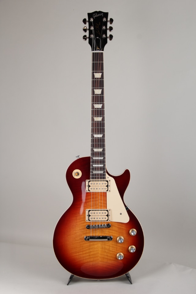 現行モデルとしてラインナップされているLes Paul Standard 50s / Les Paul Standard 60s をベースに、ピックアップカバーを装着しないオープンタイプに加え、両側ともにホワイトカラーのボビンで構成される通称ダブルホワイトのバーストバッカーピックアップを搭載。使用されている塗料は現行モデルと同じくニトロセルロースラッカーですが、現行モデルは50年代当時に製作されたときと同じ完全な新品仕上げとなっておりますが、当モデルはヴィンテージのような経年による風合いを再現するため現行モデルとは違いクリア塗装に着色が施されたフィニッシュが採用されております。メイプルトップのマホガニーボディ / マホガニーネックのローズウッド指板といった伝統的なウッドマテリアルを採用、ピックアップにはアルニコ2マグネット採用のBurstbucker 1 / Burstbucker 2 を搭載しております。ネックシェイプは50年代を意識した丸みがありしっかりとした握りごたえのある50s Vintage シェイプを採用。軽量化を目的とした肉抜き加工であるウエイトリリーフは施されていない完全なソリッドボディとなっております。