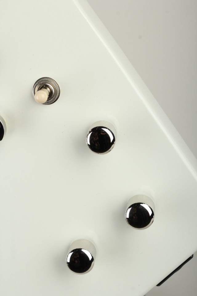 ノンピックガード仕様のエスカッションマウントピックアップ、2ボリュームのマスタートーンのコントロールに隣接して取り付けられたトグルスイッチなど、この年代ならではの特徴的なルックスとなっております。