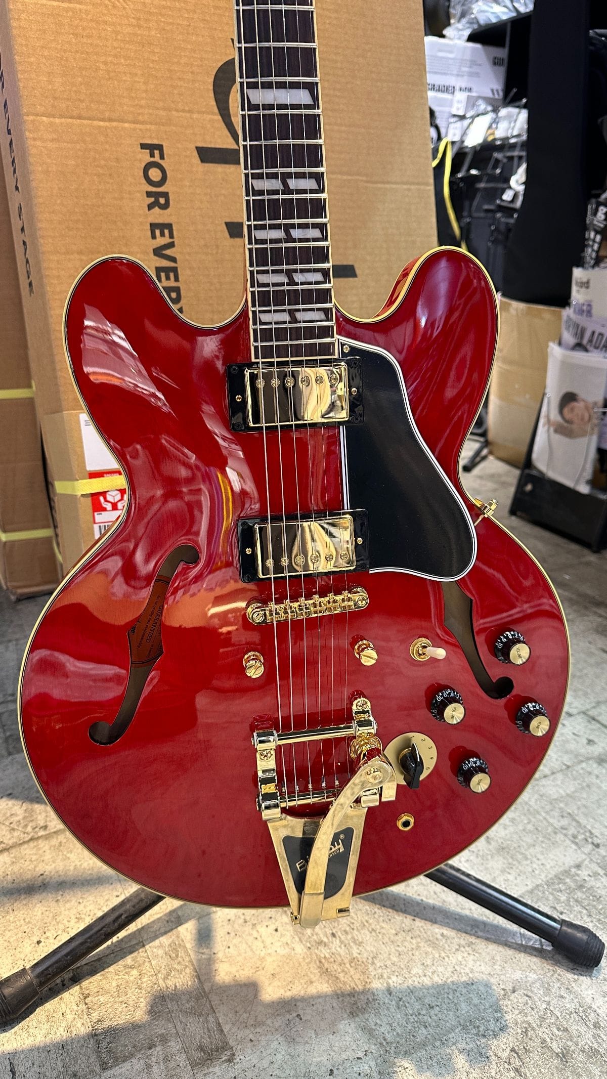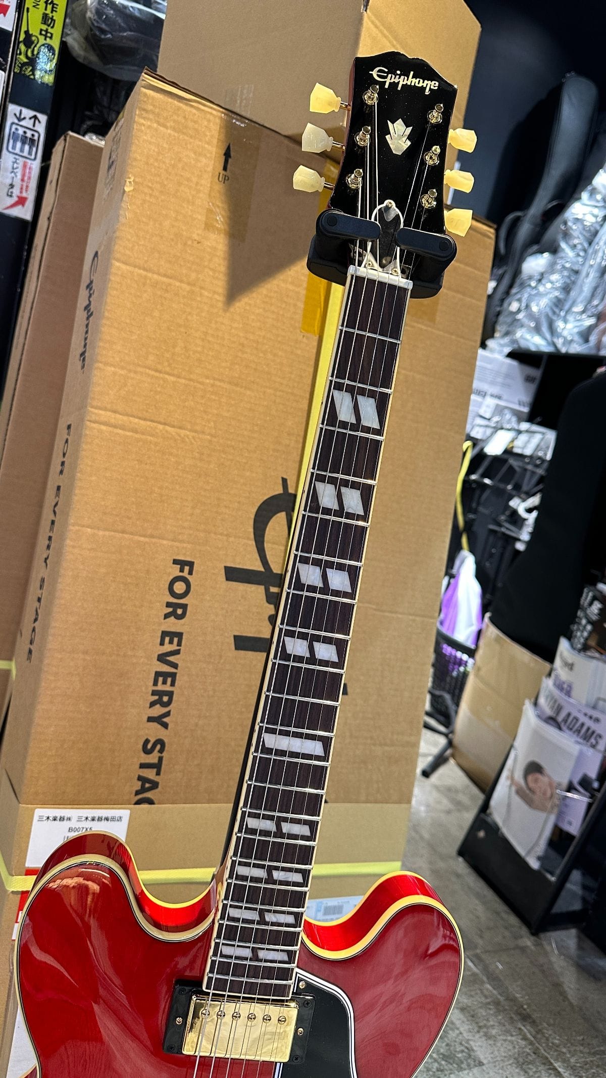 ハードウェアはゴールドで統一され、Epiphone LockTone Tune-O-MaticブリッジとBigsby B70ヴィブラート・テイルピースを装備。劇中のモデルと同じく、オリジナルのストップバー用スタッドも忠実に再現されています。ピックアップにはEpiphoneが誇るAlnico Classic PROを2基搭載し、各ピックアップに独立したボリュームとトーンを備え、モノラル仕様のヴァリトーン・スイッチにより多彩なトーンバリエーションを実現しています。