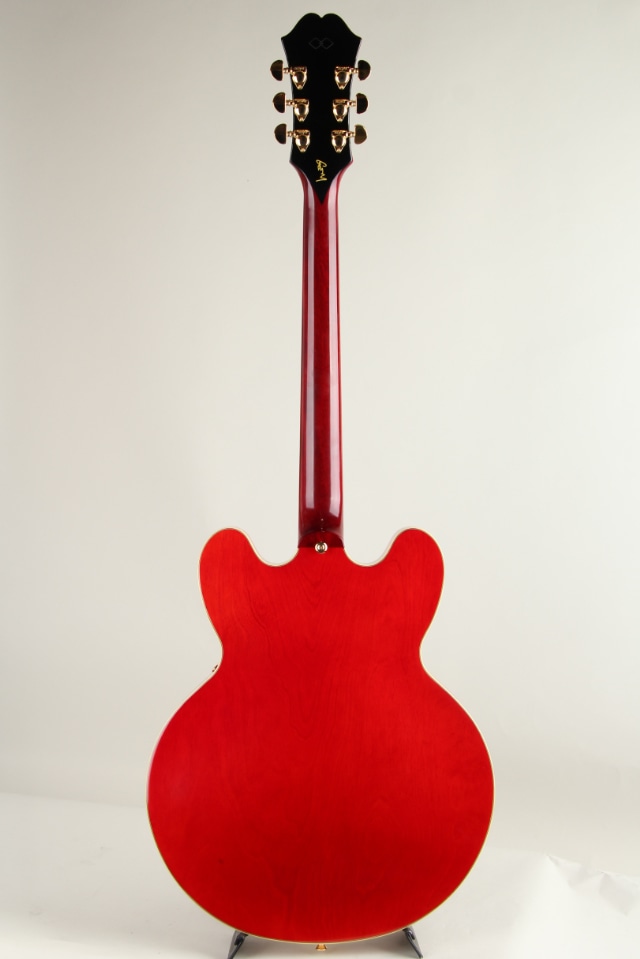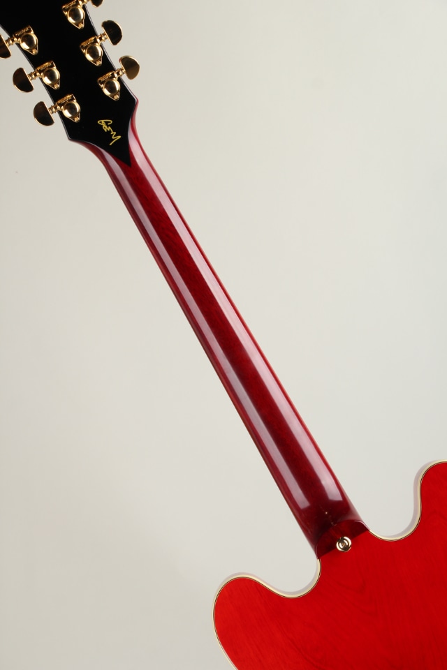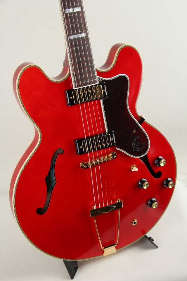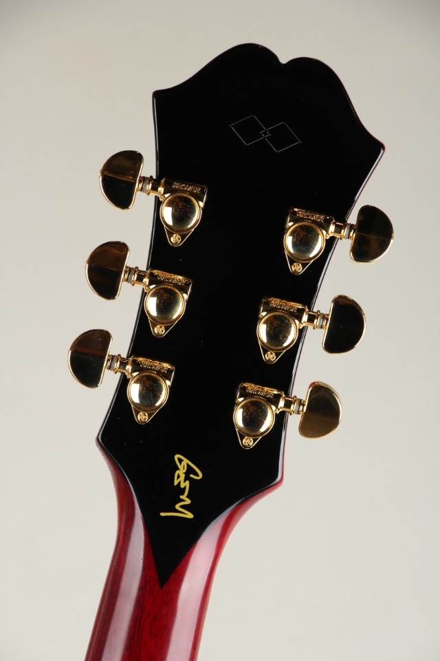 深みのあるヴィンテージグロス仕上げにゴールドのハードウェアを随所に配したこのギターには、ミルクボトルボタン付きのGrover Rotomaticチューナーと、安定したチューニングを実現するGraph Techナットが搭載されています。ABR-1ブリッジとCasinoスタイルの隆起したダイヤモンドトラペーズテールピースが、このギターのセットアップを完成させます。