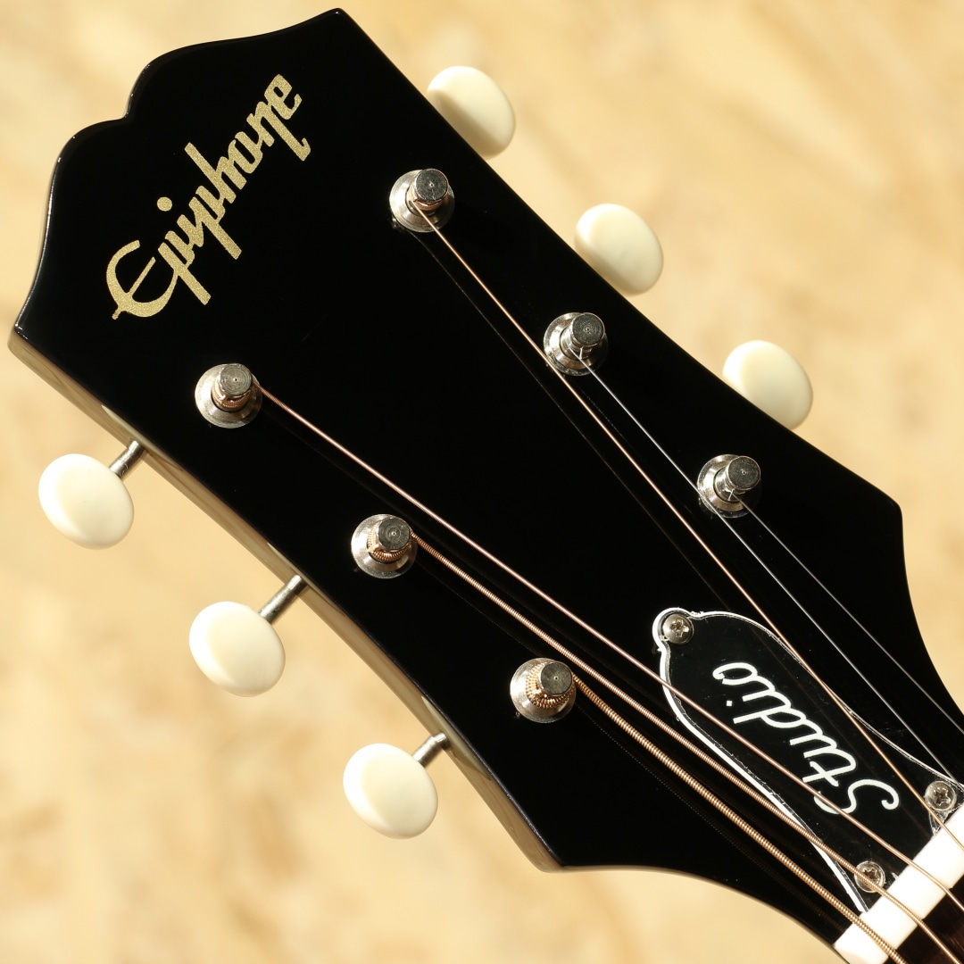 1873年から続くEPIPHONE。非常に長い歴史を持ち、屈指の老舗ブランドの1つとして今でも製造を続けているブランドです。ギブソン直系のブランドとして伝統的なスタイルからモダンなデザインのモデルまで多様なラインナップを揃え、そのコストパフォーマンスの高さ、ギブソン譲りのルックス等から幅広い世代に人気を博しています。本器はGIBSONが1932年に発売した小型モデル"L-00"と同サイズのクラシックなギブソンパーラーアコースティックをベースにした”Blues King Studio”。スプルース単板トップ、マホガニーサイド&バック、マホガニーネック、ローズウッド指板&レクタングルブリッジ、グローバーペグ、べっ甲柄ピックガード、シングルリングロゼッタ、Xブレイシング、ビンテージサンバーストカラー、1ボリューム1トーンのFishman社Presysピックアップシステム内蔵。歯切れの良いパワフルな音色でボリュームもあり、非常にコストパフォーマンスの高い作りの本器。標準でピックアップが載っていますので、そのままステージでも積極的に使えます。何と言ってもこの価格でこのデザイン。さらに老舗ピックアップメーカーのシステムも搭載されたギター。小柄で抱えやすく、しかもピックアップ搭載でステージでの活躍にも期待できます。入門用にも、気軽に持てるサブギターにも最適な品質の1本です。オリジナルソフトケースが付属いたします。