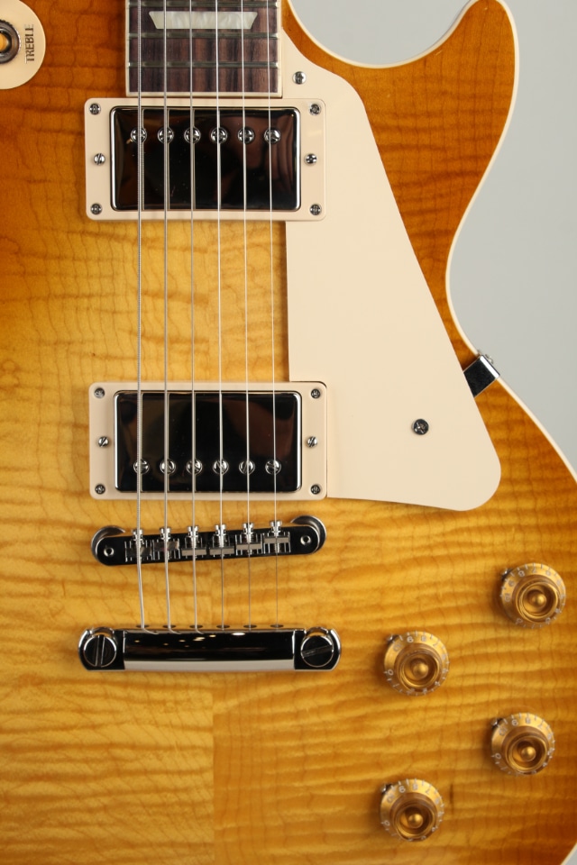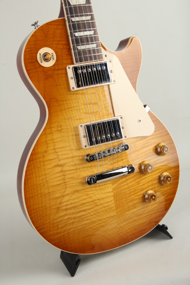 一定期間のみの受注で生産される限定モデルである本機は、レギュラーラインナップモデルのLes Paul Standard 50sをベースに、Gibson Custom Shopのレスポールモデルなどに採用される"AAA Custom Shop Figured Maple"をトップ材に使用しております。杢目のグレードのみならず、Custom Shop製品用に選定されるフィギュア―ドメイプルが使用されており、Custom Shop製品ならではの"あの"ルックスをUSAレギュラーラインナップで実現したスペシャルな一本となっております。