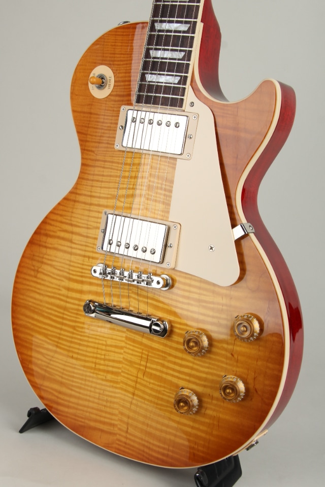 一定期間のみの受注で生産される限定モデルである本機は、レギュラーラインナップモデルのLes Paul Standard 50sをベースに、Gibson Custom Shopのレスポールモデルなどに採用される"AAA Custom Shop Figured Maple"をトップ材に使用しております。杢目のグレードのみならず、Custom Shop製品用に選定されるフィギュア―ドメイプルが使用されており、Custom Shop製品ならではの"あの"ルックスをUSAレギュラーラインナップで実現したスペシャルな一本となっております。