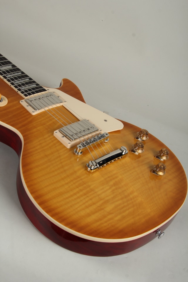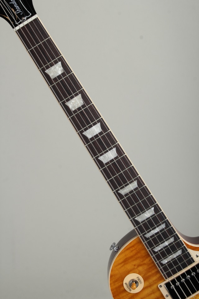 一定期間のみの受注で生産される限定モデルである本機は、レギュラーラインナップモデルのLes Paul Standard 50sをベースに、Gibson Custom Shopのレスポールモデルなどに採用される"AAA Custom Shop Figured Maple"をトップ材に使用しております。杢目のグレードのみならず、Custom Shop製品用に選定されるフィギュア―ドメイプルが使用されており、Custom Shop製品ならではの"あの"ルックスをUSAレギュラーラインナップで実現したスペシャルな一本となっております。