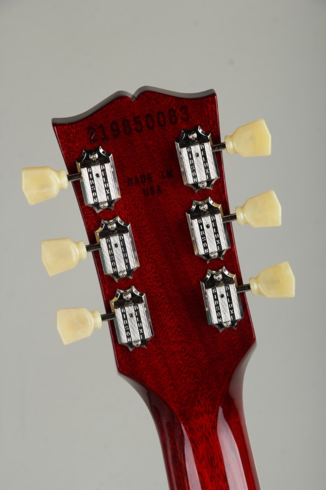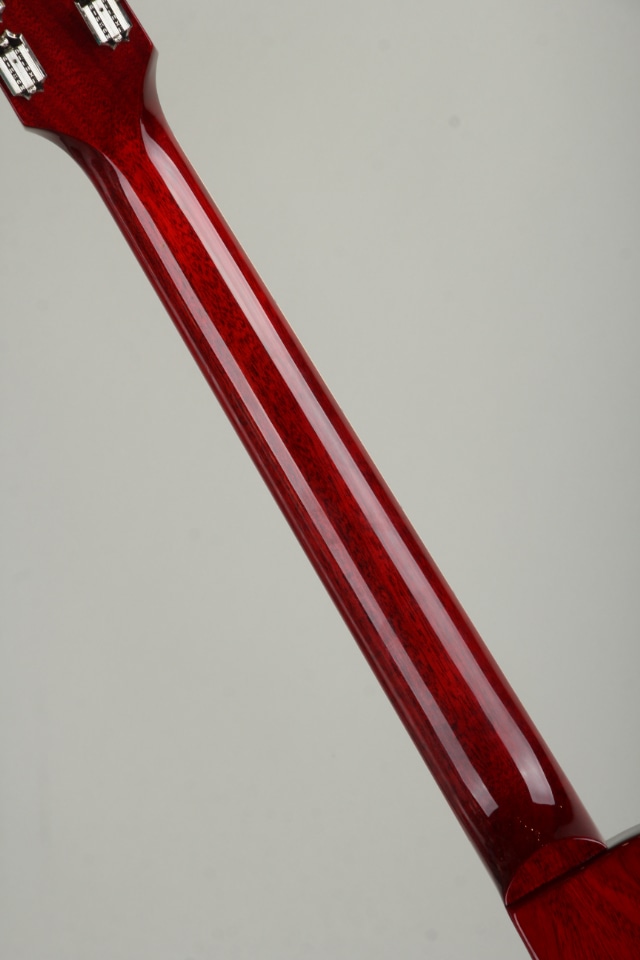 ウッドマテリアルには、メイプルトップのマホガニーボディ、ローズウッド指板といった極めて伝統的な仕様、50sモデルですのでネックシェイプは適度な握りごたえのある"Vintage '50s"となっており、もちろん軽量化を目的としたウエイトリリーフ加工は行われておらず完全なソリッドボディ仕様となっております。