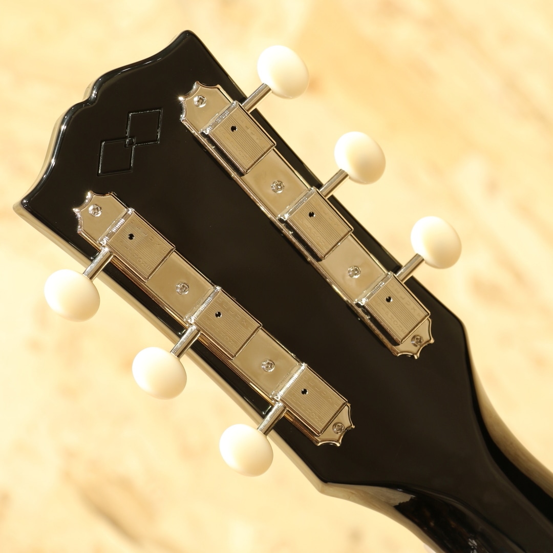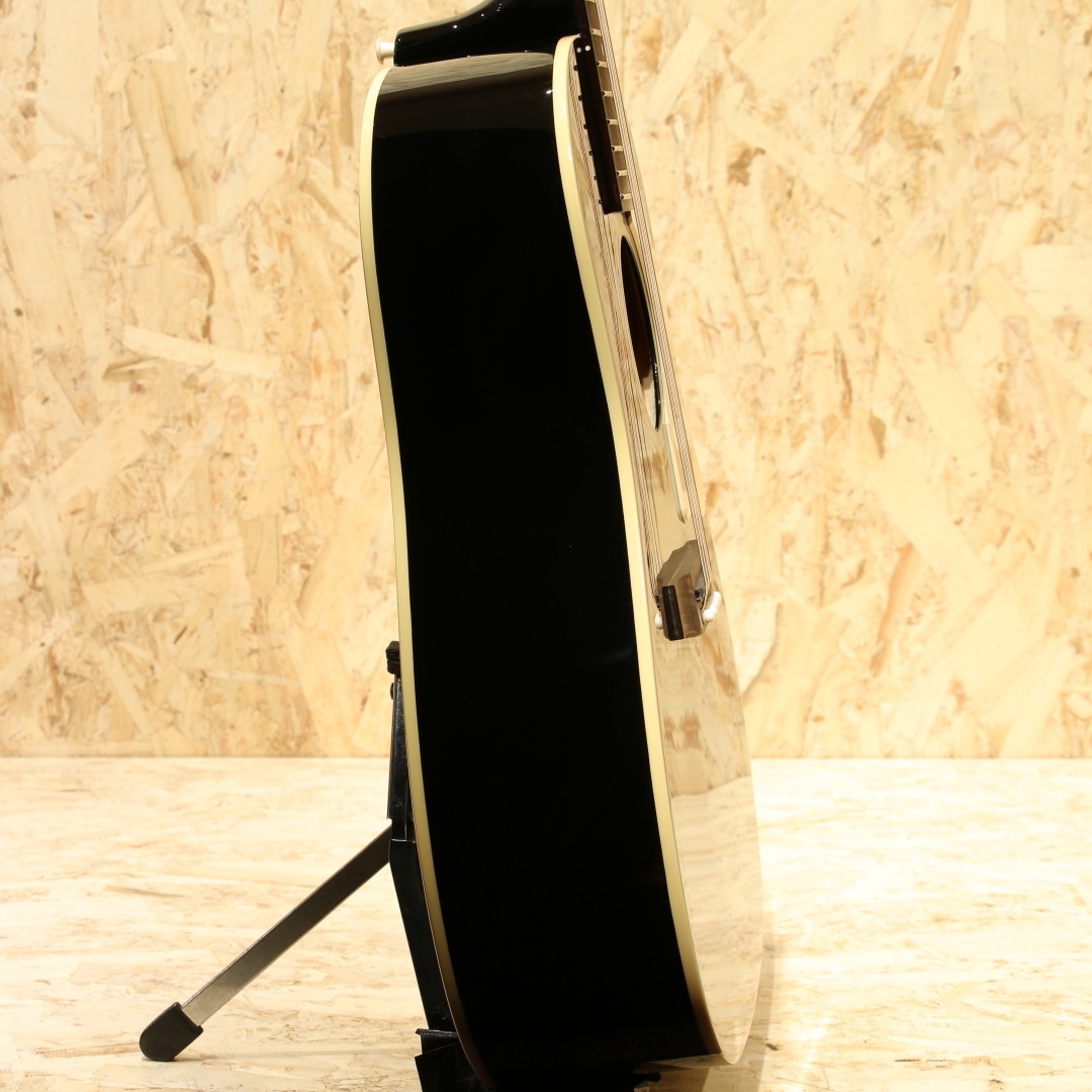 斉藤氏のJ-45のトレードマークとなっている、光沢を帯びたグロス・フィニッシュのエボニー(黒)のボディをはじめ、サウンドホール・リング位置の再現、ギブソンと同じダミーネジまで再現した60年代スタイルのクリーム・ピックガードなど、斉藤氏の拘りが詰まったギブソンJ-45に限りなく近づけたルックスを実現しました。