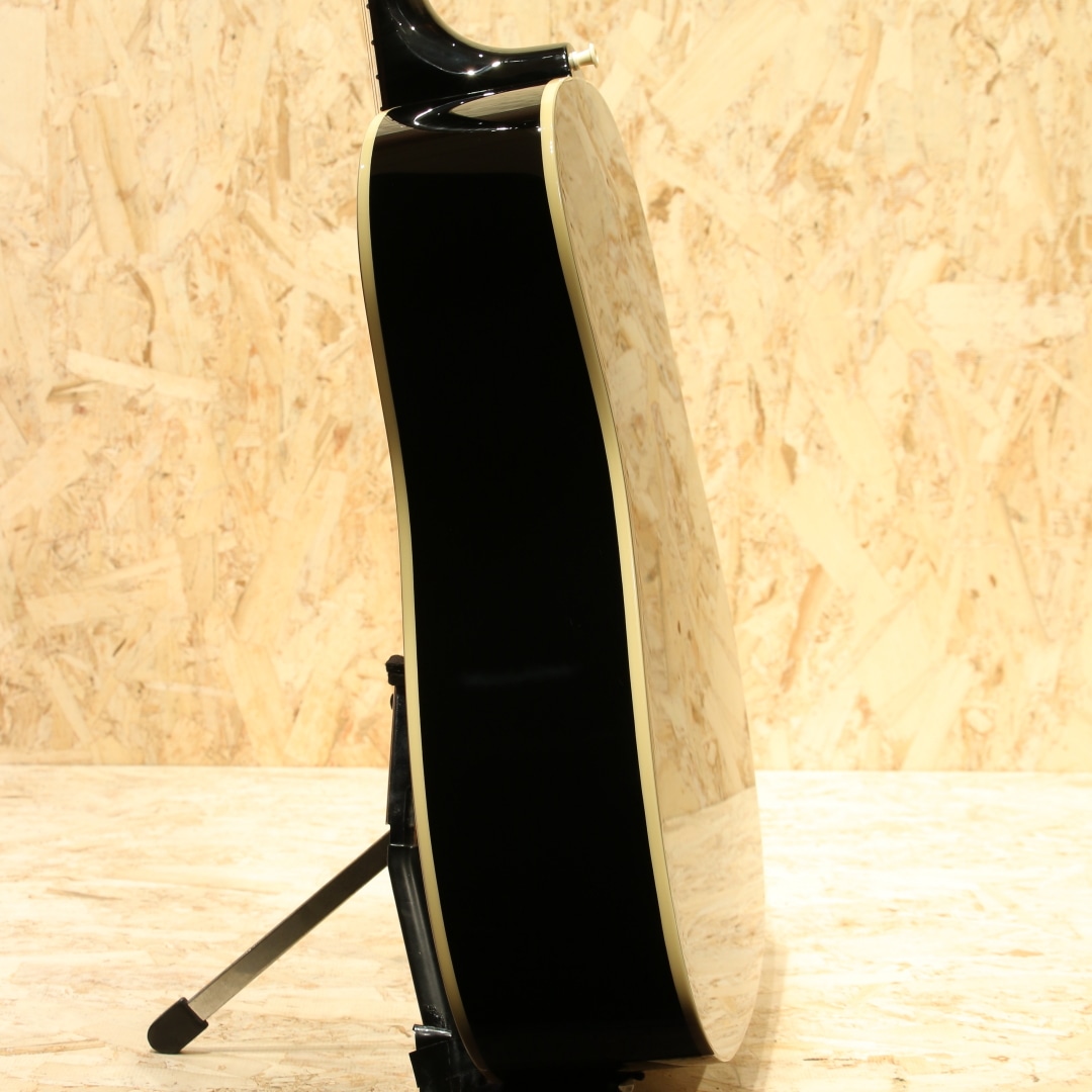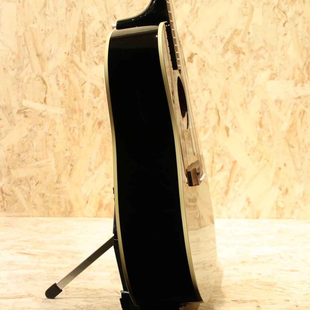 斉藤氏のJ-45のトレードマークとなっている、光沢を帯びたグロス・フィニッシュのエボニー(黒)のボディをはじめ、サウンドホール・リング位置の再現、ギブソンと同じダミーネジまで再現した60年代スタイルのクリーム・ピックガードなど、斉藤氏の拘りが詰まったギブソンJ-45に限りなく近づけたルックスを実現しました。