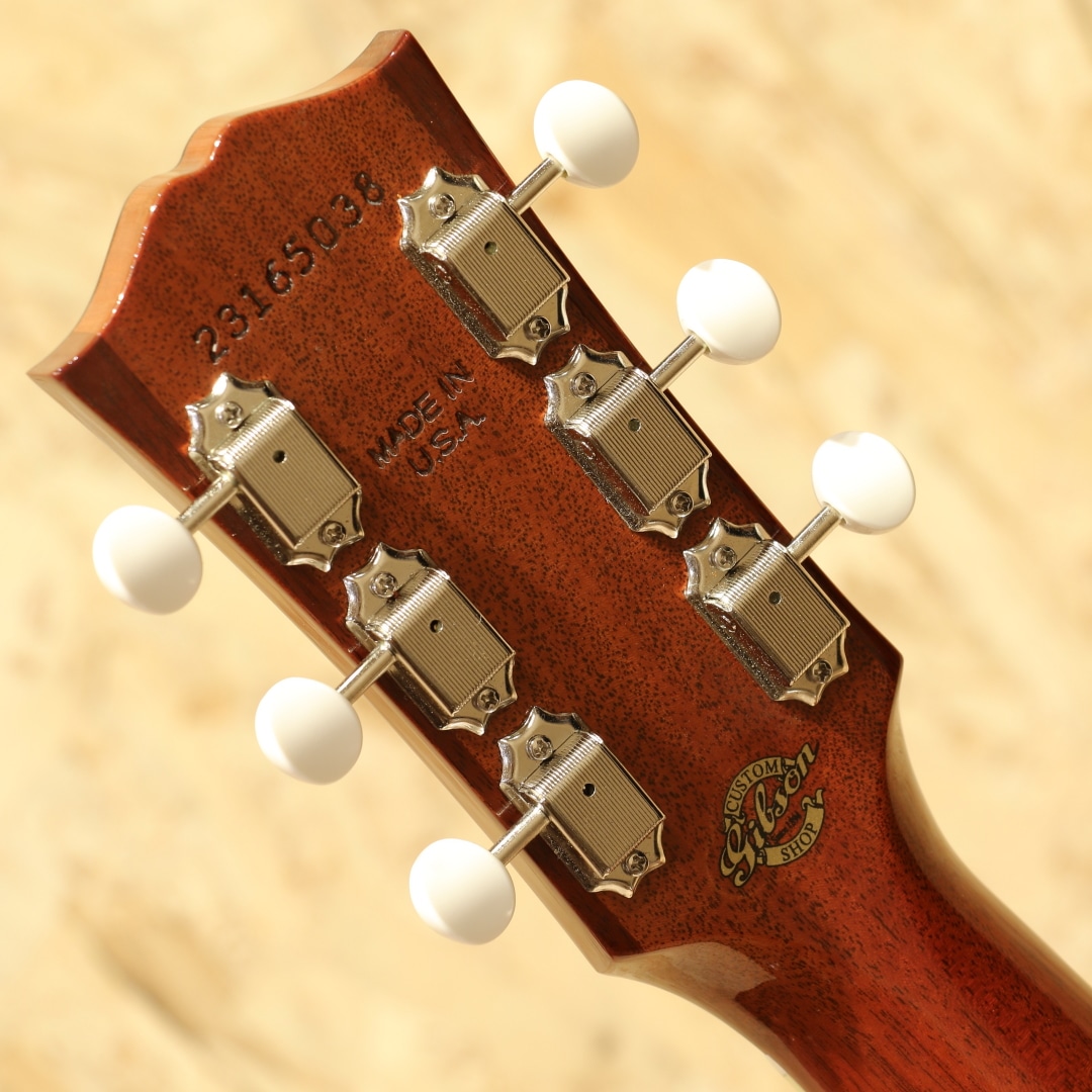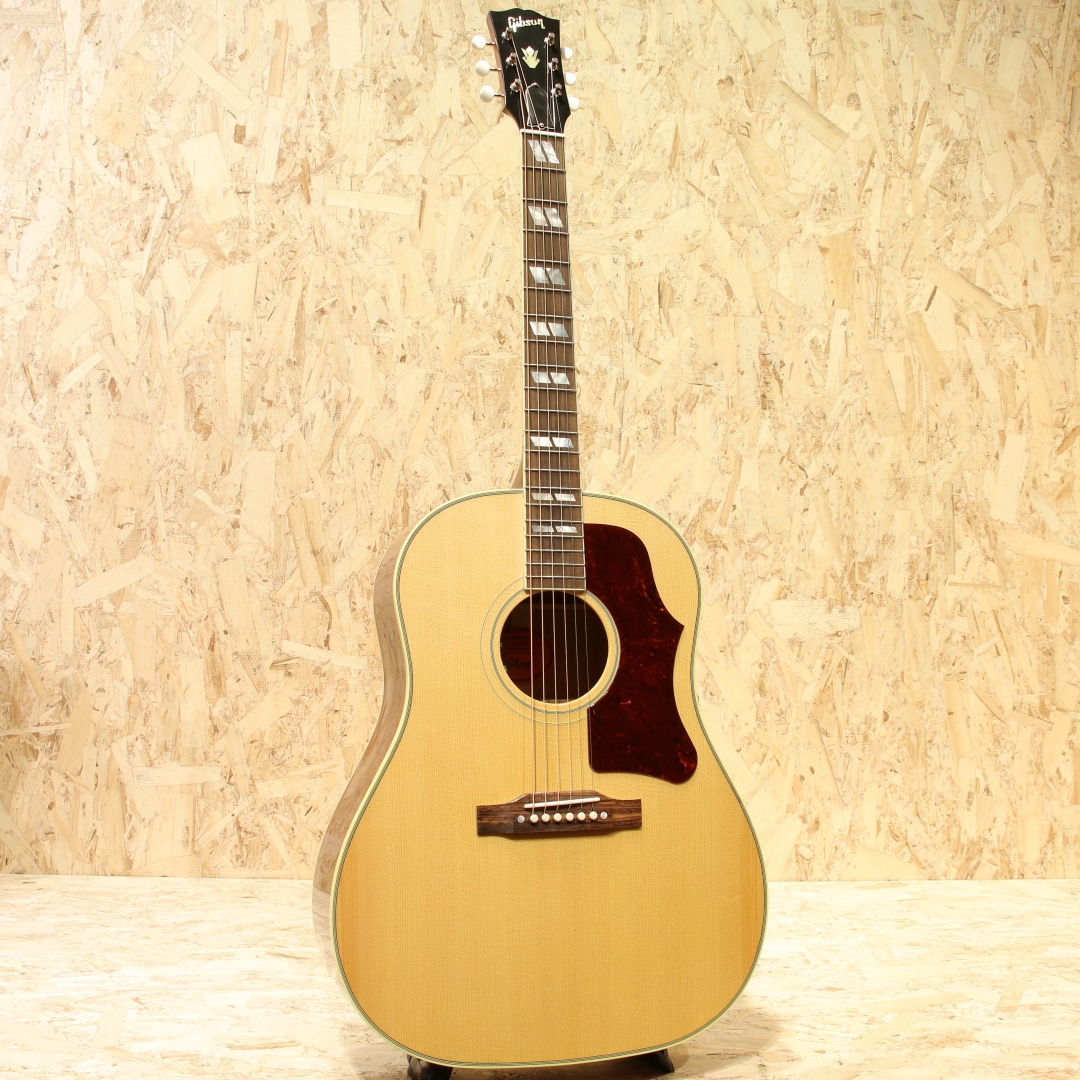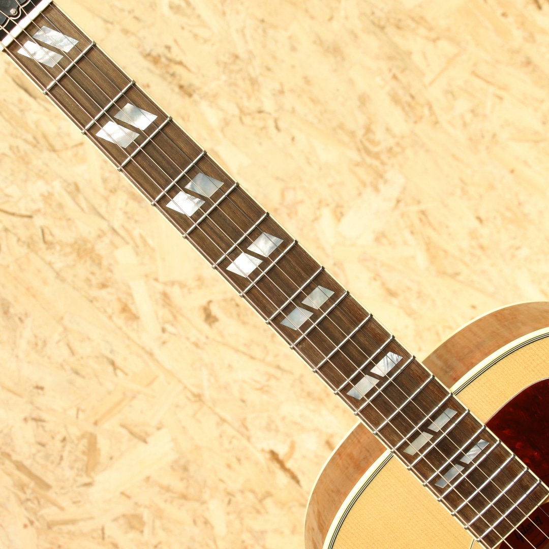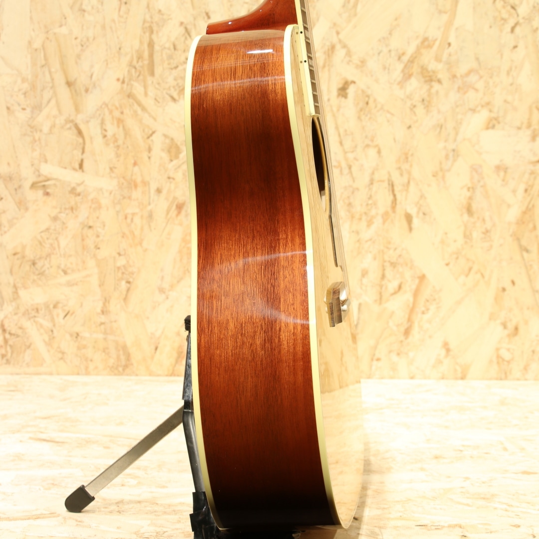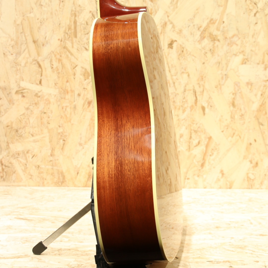 発表当初よりサンバーストフィニッシュに身を包んだサザンジャンボモデルは、1954年にナチュラルフィニッシュがオプションとして加わりました。1956年、ナチュラルカラーモデルは"Country Western"と言うモデル名として正式に生産を開始。1960年にはSJN(サザン・ジャンボ・ナチュラル)となり、1962年にはSJNカントリー・ウェスタンと名称が変更されました。現在では廃版となっておりますが、限定の復刻モデルとして生産されることもしばしば。シェリルクロウなど海外ミュージシャンも使用しており、日本国内でもファンが多く人気の高いモデルです。本器はラウンドショルダー期のスタイルを採用した弊社オーダーモデルの1本。スプルーストップ、マホガニーサイド&バック、ローズウッド指板&ブリッジ、ダブルパラレログラム指板インレイ、べっこう柄ラージピックガード、クルーソンタイプペグ、ヘッドクラウンインレイ、スキャロップドXブレイシング。ノーラインクルーソンタイプペグやラージピックガードなど50年代中期-後期の雰囲気を持ったスタイルに仕上がっています。ラウンドショルダーモデル特有の厚みのある中低域に加え、キレ、エッジのある高域が気持ちよく響き、弾き語りなどでも相性ばっちりです。現行サザンジャンボモデル同様のスリムテーパープロファイルネックで優れた演奏性を獲得、手馴染みの良いネックでガンガン弾き込んでいただけます。L.R.Baggs社製Element VTCピックアップ搭載、ウォームなトーンを出力しながら安定したパワーをアウトプット、プロアマ問わず定評のあるピックアップシステムですので、ステージは勿論、レコーディング等でも即戦力の1本です。現行品では作られていないスタイルの6本限定のショップオーダーモデル、是非この機会にお試しください。オリジナルハードケースが付属します。