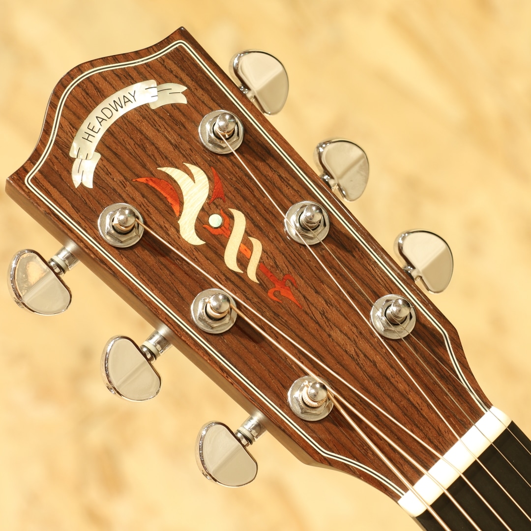 独自の工法と方法論で高品質のアコースティックギターを製作している長野県松本市の老舗ブランド"ヘッドウェイ"。多くのアコースティックギターファン、ミュージシャンたちに支持される日本製ギターを代表するブランドのひとつです。そのラインナップの中でも近年人気を博すのがJapan Tune-up(JT)シリーズ。海外で製造しコストを抑えつつ、最終調整は日本で。演奏性に直結する部分に妥協を許さない、ハイコストパフォーマンスのシリーズ群です。本器はJTシリーズ、本格派仕様のOOOサイズ”HF-5080SE”。シトカスプルース単板トップ、サペリサイド&アーチバック、ナトーネック、ミカルタ指板&ブリッジ、ロトマチックタイプペグ、スキャロップドXブレイシング、Fishman Sonitoneピックアップシステム搭載。ヘッドウェイの拘りである「アリ溝ジョイント」「ネックの後仕込み」、これらは非常に高精度な加工が求められる為以前まで国産である上位機種でのみ採用していました。ですがJTシリーズではこの構造を採用しており、高精度での作業が行える工場で製作が行われています。更にネックヒールにも立って弾けるように「ストラップピン」とアンプに繋げるようにするギター用マイクである「ピックアップ」を標準で内蔵、搭載しています。ボディの装飾にはヘリンボーン(ニシンの骨)を備え、オールドのギター風のルックスへ。派手さではなく、さりげないワンポイントのオシャレさを持っているナチュラルビューティな1本です。そしてこのサイズは程よいサイズ感。抱える際に圧迫感を感じず、くびれが深いがゆえにギターの位置が上過ぎない、など人気を博す定番のサイズです。操作性が高いため細やかなフレーズを弾く演奏スタイルにも最適。ネック自体も薄めのグリップ感でソロギターにも適応できそうな演奏性を獲得しています。サペリ材を使用していることから明るく爽やかな音色が持ち味。低音が不足していることはなく、バランスの整った響きを生み出してくれます。歌モノからソロギターと万遍なくこなせるオールマイティ。演奏をサポートしてくれる1本です。Fishman製Sonitoneピックアップを搭載。アンプへの接続が可能で、サウンドホールのすぐ横につまみが2つあるコントローラーが装着されています。それぞれ音量を調整するVol、高音を調整するTone、Toneは上げると元気で明るい響きで下げるとやや甘い丸い音色がします。人前での演奏、録音での使用、配信等幅広く使用できるギター用マイクを搭載したギターです。拘りと高精度の加工を武器に人気を誇るヘッドウェイ。ハイコスパのJTシリーズのクオリティも高くこちらも人気の高いシリーズです。コストパフォーマンスに優れ、扱いやすい1本。是非お手元でお楽しみ下さいませ。