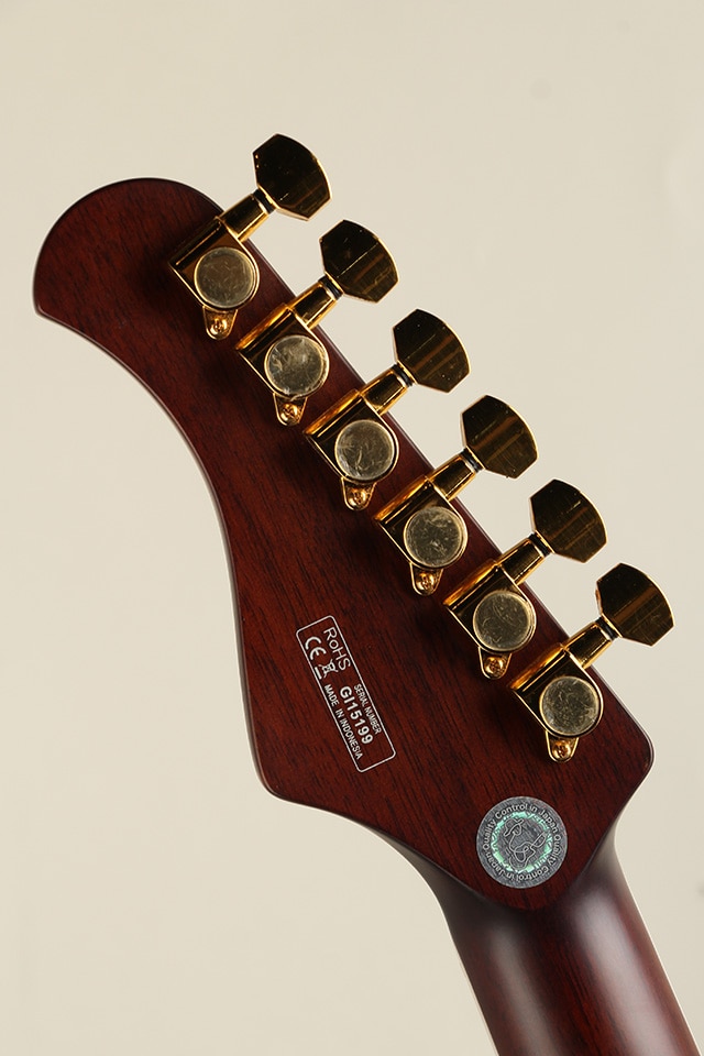 “CTM”モデルでは、ピックアップカバーからマウントビスまでゴールドで統一されたハードウェアを搭載。ボディ外周にはマルチバインディングが施され、引き締まった印象を生み出します。