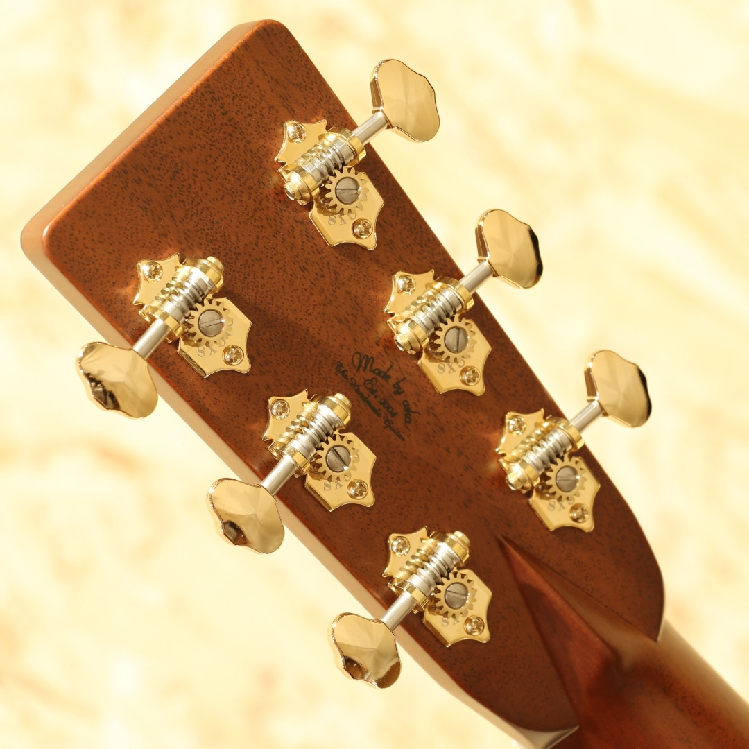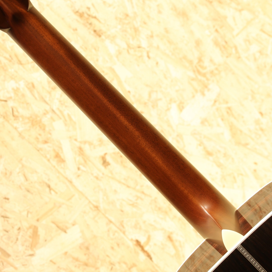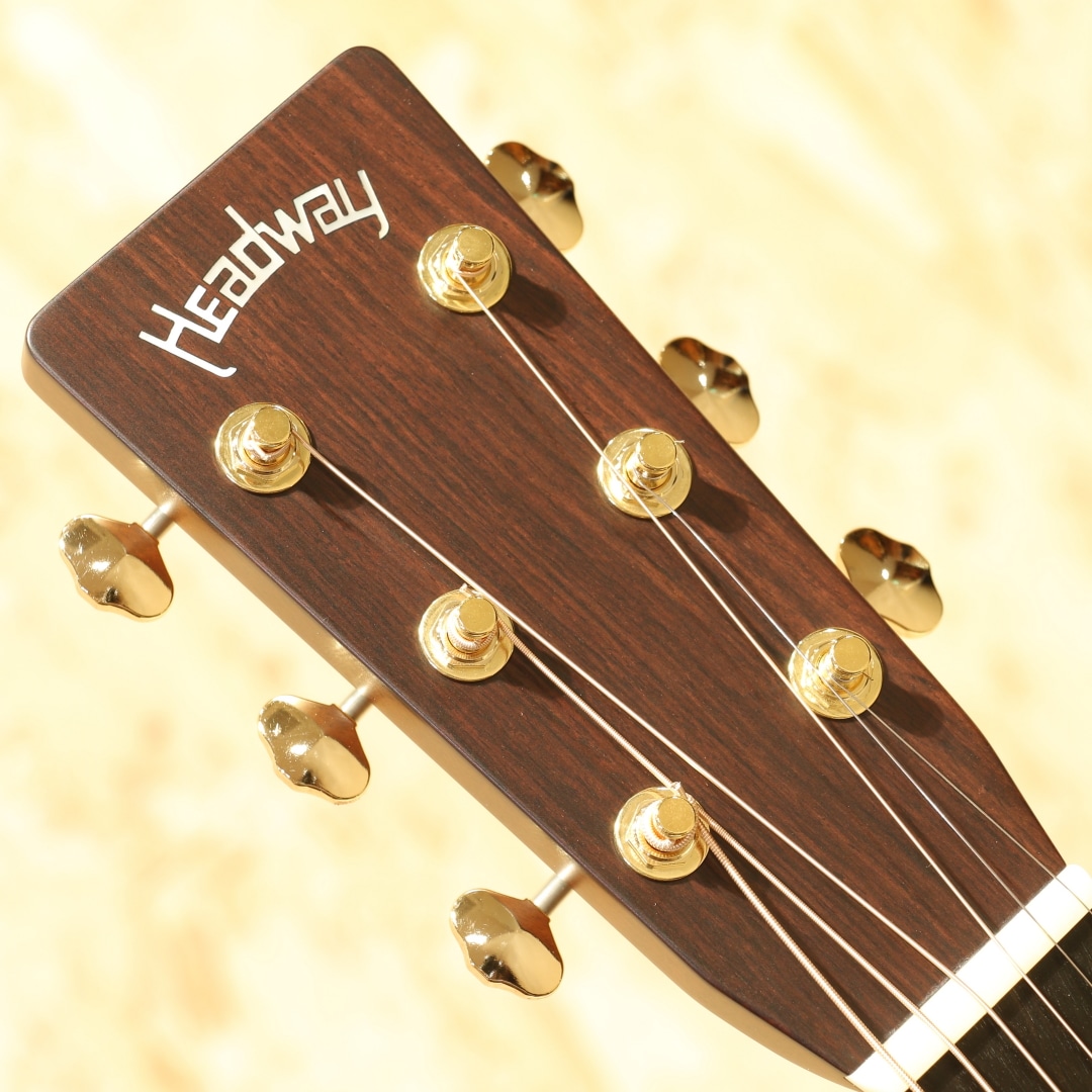 独自の工法と方法論で高品質のアコースティックギターを製作している長野県松本市の老舗ブランド"ヘッドウェイ"。多くのアコースティックギターファン、ミュージシャンたちに支持される日本製ギターを代表するブランドのひとつです。本器はATBチームにてHFサイズで製作を行われたRegacyモデル”HF-415 LEGACY/ATB”。セレクトシトカスプルーストップ、インディアンローズウッドサイド&バック、アフリカンマホガニーネック、エボニー指板&ブリッジ、ゴトーSG301ゴールドペグ、パールダイアモンドスクエア指板ポジションインレイ、べっ甲柄ピックガード、アイボロイドバインディング、ヘリンボーントリム、べっ甲柄バインディング、LG-ARSブレイシング。Headwayの創業当時から製造を担っていた百瀬氏。長く使える丈夫さを第一とし、長年弾き込んでいけるギターを目標としていました。惜しくも2024年に逝去されましたがその理念と信念はこれまでブレず、愛弟子たちへも継承されています。その愛弟子たち飛鳥チームの技術によって百瀬氏の思想を体現させたRegacy(継承)モデル。2016年頃より開発を進めていたARSブレイシングは百瀬氏によって試作を重ねて実用化。ブリッジ付近の強度を高めつつプレーン弦の響きも改善、サウンドのバランス感が良いことから晩年の百瀬氏は好んで採用していました。そしてそのARSブレイシングを改良し百瀬氏が晩年「理想形に最も近い」と評していたオリジナルブレイシング”LeGacy-ARS”。ブレイシングの形状も百瀬氏の仕様を踏襲したM'sスキャロップ仕様。スキャロップは浅めで強度をアップ、ウッディな響きを得つつ長年の使用に耐える剛性を両立させています。ネックは百瀬氏の好んだしっかりとした太さのVネック形状”MVネック”。「ネックは太い方が耐久性があり、何より温かみのあるウッディーな出音がいい」と百瀬氏が生前口にしていたことから、本人が使用していた治具を使いあのグリップ感を忠実に再現しています。これら全て長年の使用に耐えるための強度を考慮した設計、育てることの出来るギターという基準で製作されており信念や理念通りにブレず走り続けたことが窺えます。耐久性以外ではナット幅44mmも百瀬氏が好んだ仕様です。師匠である百瀬氏をフィーチャーした作品である以上妥協は許さず、百瀬氏が拘りを持って作業を行っていた木材の選定も愛弟子が継承してセレクトされています。これらの百瀬氏が残した技術や精神も”遺産”という意味を込めて”Legacy”とされています。これまでのATBよりもウッディさを感じ、バランス感のある響き。しっかりとした握り応えのあるネックには頼りがいを感じさせます。創業時から創り上げてきたものを継承、踏襲しつつ次世代たちが作り上げる1本。ただ再現するだけでなく、本人が使用していた道具や治具を継承した職人達によって手掛けられるギターです。これまでのATB作の中でも想いが込められているであろうレガシーモデル、是非ご体感下さい。