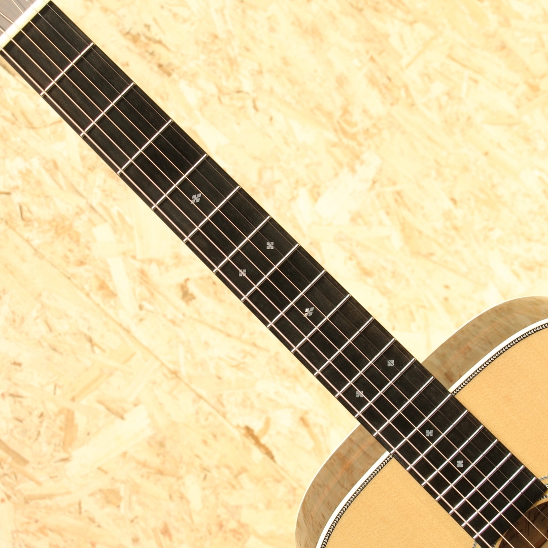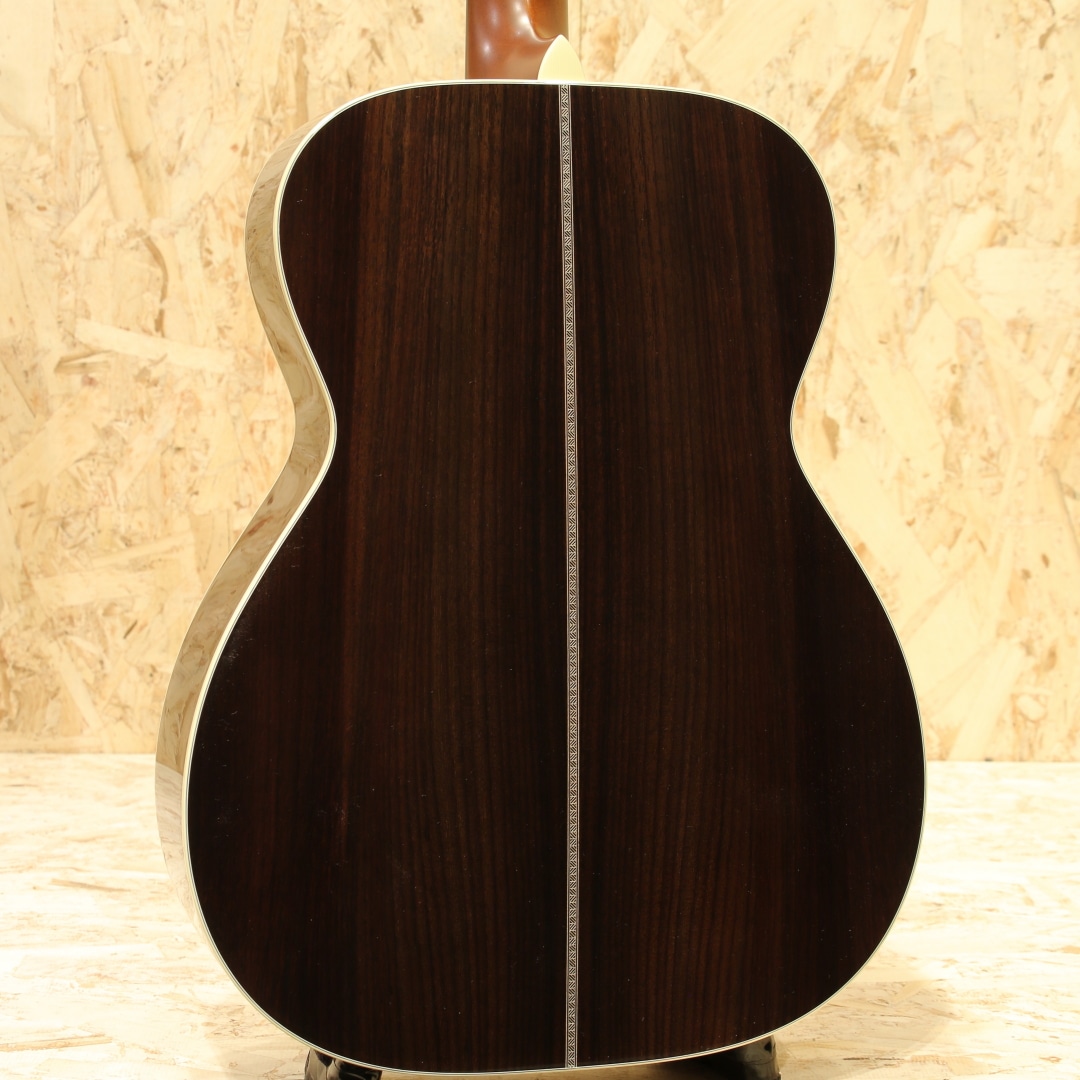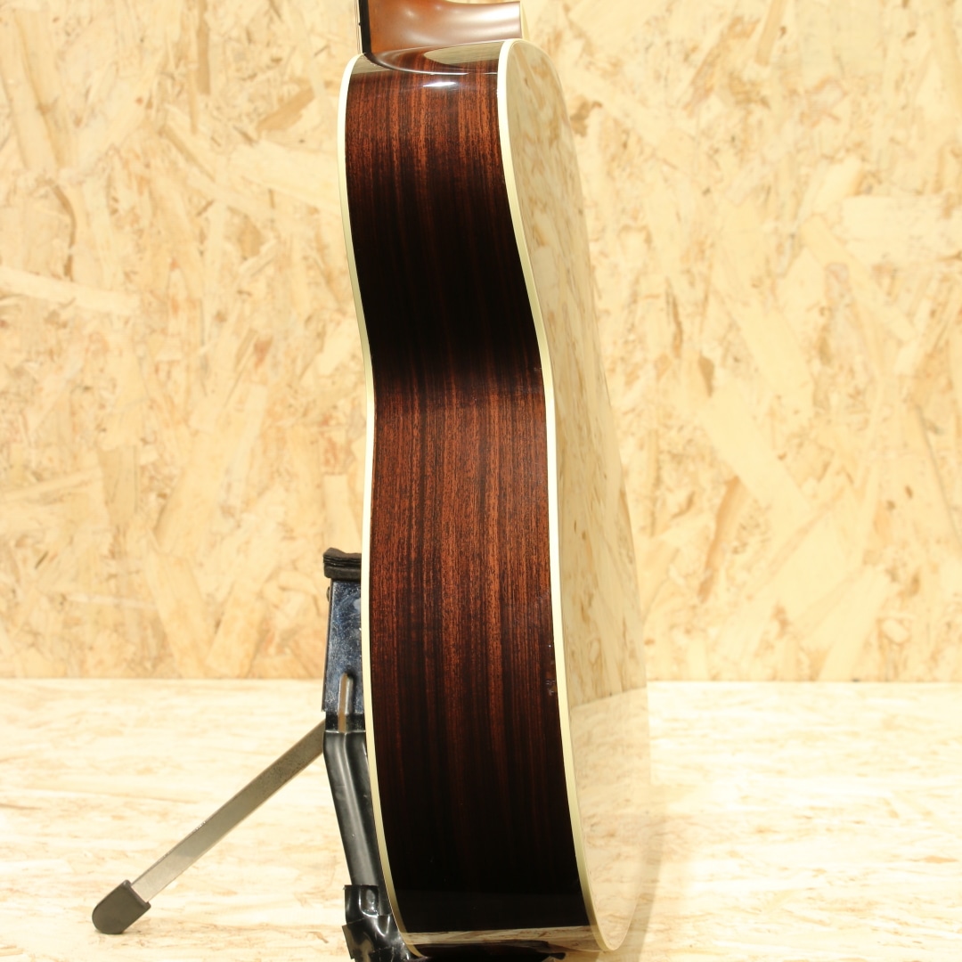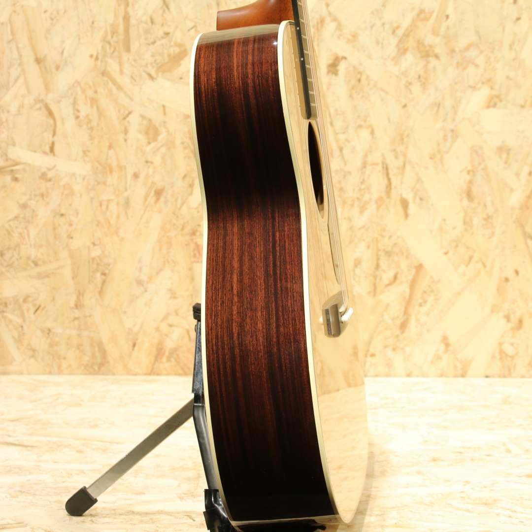 独自の工法と方法論で高品質のアコースティックギターを製作している長野県松本市の老舗ブランド"ヘッドウェイ"。多くのアコースティックギターファン、ミュージシャンたちに支持される日本製ギターを代表するブランドのひとつです。本器はATBチームにてHFサイズで製作を行われたRegacyモデル”HF-415 LEGACY/ATB”。セレクトシトカスプルーストップ、インディアンローズウッドサイド&バック、アフリカンマホガニーネック、エボニー指板&ブリッジ、ゴトーSG301ゴールドペグ、パールダイアモンドスクエア指板ポジションインレイ、べっ甲柄ピックガード、アイボロイドバインディング、ヘリンボーントリム、べっ甲柄バインディング、LG-ARSブレイシング。Headwayの創業当時から製造を担っていた百瀬氏。長く使える丈夫さを第一とし、長年弾き込んでいけるギターを目標としていました。惜しくも2024年に逝去されましたがその理念と信念はこれまでブレず、愛弟子たちへも継承されています。その愛弟子たち飛鳥チームの技術によって百瀬氏の思想を体現させたRegacy(継承)モデル。2016年頃より開発を進めていたARSブレイシングは百瀬氏によって試作を重ねて実用化。ブリッジ付近の強度を高めつつプレーン弦の響きも改善、サウンドのバランス感が良いことから晩年の百瀬氏は好んで採用していました。そしてそのARSブレイシングを改良し百瀬氏が晩年「理想形に最も近い」と評していたオリジナルブレイシング”LeGacy-ARS”。ブレイシングの形状も百瀬氏の仕様を踏襲したM'sスキャロップ仕様。スキャロップは浅めで強度をアップ、ウッディな響きを得つつ長年の使用に耐える剛性を両立させています。ネックは百瀬氏の好んだしっかりとした太さのVネック形状”MVネック”。「ネックは太い方が耐久性があり、何より温かみのあるウッディーな出音がいい」と百瀬氏が生前口にしていたことから、本人が使用していた治具を使いあのグリップ感を忠実に再現しています。これら全て長年の使用に耐えるための強度を考慮した設計、育てることの出来るギターという基準で製作されており信念や理念通りにブレず走り続けたことが窺えます。耐久性以外ではナット幅44mmも百瀬氏が好んだ仕様です。師匠である百瀬氏をフィーチャーした作品である以上妥協は許さず、百瀬氏が拘りを持って作業を行っていた木材の選定も愛弟子が継承してセレクトされています。これらの百瀬氏が残した技術や精神も”遺産”という意味を込めて”Legacy”とされています。これまでのATBよりもウッディさを感じ、バランス感のある響き。しっかりとした握り応えのあるネックには頼りがいを感じさせます。創業時から創り上げてきたものを継承、踏襲しつつ次世代たちが作り上げる1本。ただ再現するだけでなく、本人が使用していた道具や治具を継承した職人達によって手掛けられるギターです。これまでのATB作の中でも想いが込められているであろうレガシーモデル、是非ご体感下さい。