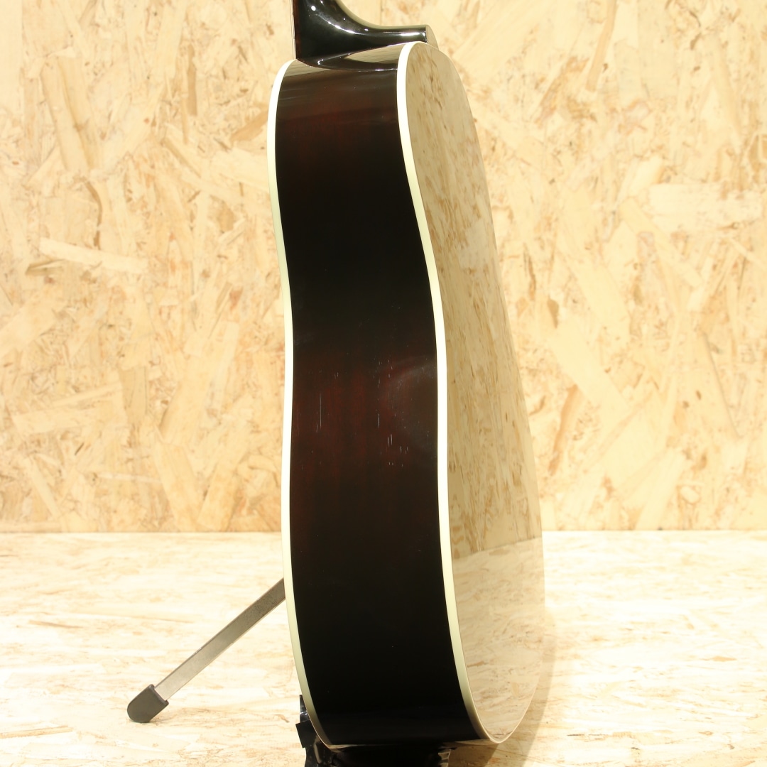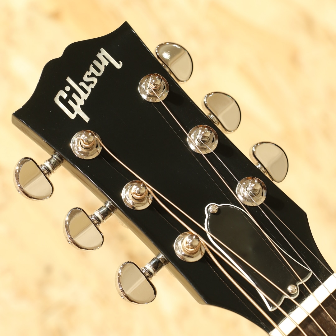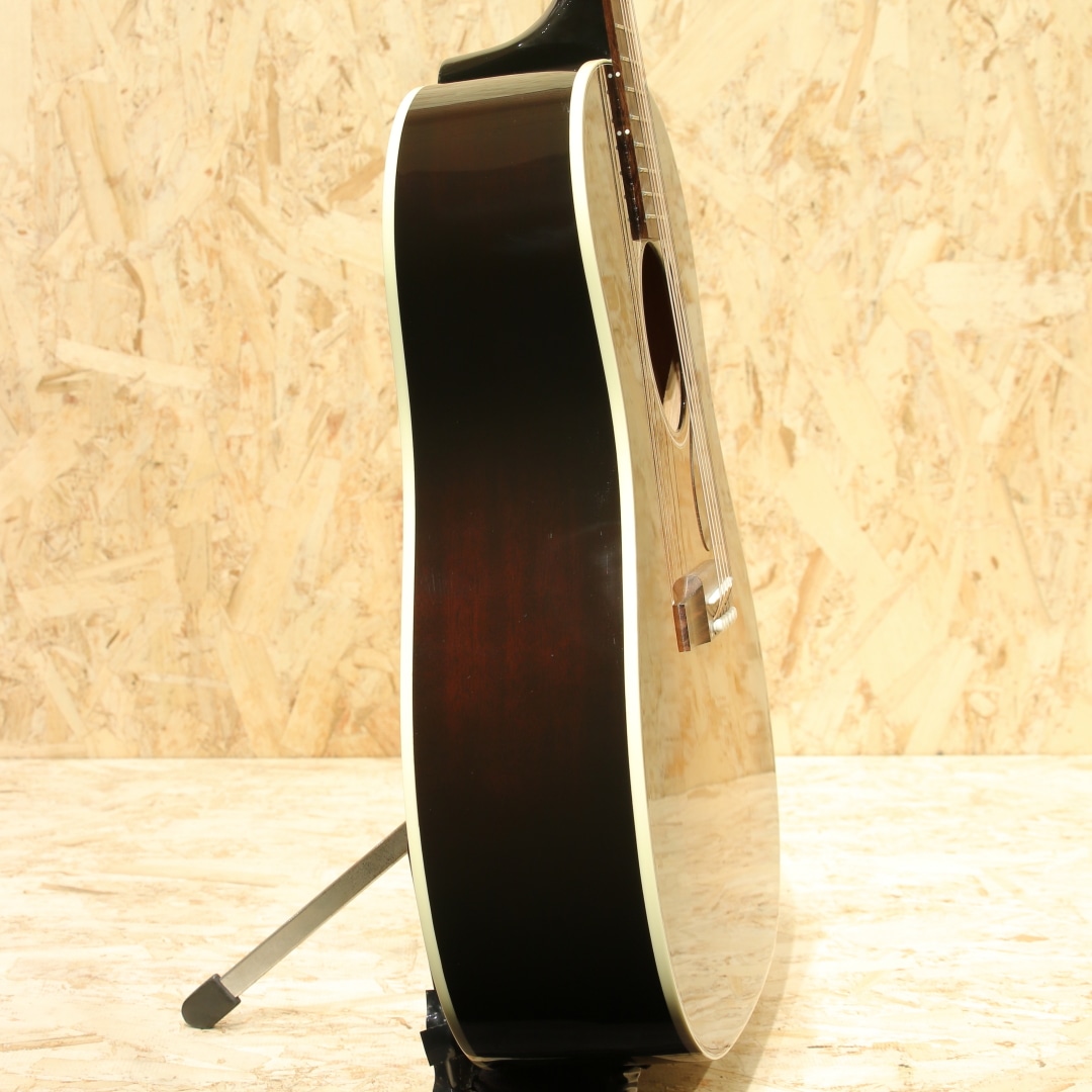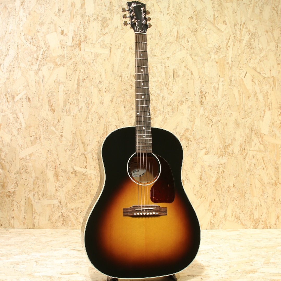 世界中のミュージシャンが愛用するギブソンフラットトップの銘器、"J-45"。発売当時からの伝統的なスタイルを踏襲しながら、時代ごとのニーズに合わせた仕様変更を繰り返し製造を続けています。本器は最新スタンダードモデルのヴィンテージサンバーストカラーの1本。シトカスプルーストップ、マホガニーサイド&バック、マホガニーネック、ローズウッド指板&ブリッジ、グローバーペグ、MOP指板ドット、べっ甲柄スモールガード、スキャロップド・Xブレイシング、ビンテージサンバーストフィニッシュ、L.R.Baggs Element VTCピックアップ標準装備。スムーズな運指をフォローする、やや薄めに仕上げられたスリムテーパーネックシェイプや丸みを帯びた指板サイド処理。ネック周りのストレスなく演奏を楽しむことが出来ます。バランスの取れた音色にダイナミックレンジの広いサウンドメイク。演奏者のフィーリングをダイレクトに表現してくれます。搭載のエレメントVTCピックアップは最新の1ボリューム/1トーン仕様。シンプルなコントローラーは操作に迷う事も少なく、ナチュラルでパワフルなサウンドを出力できます。ワーキングホースの2つ名の通り、ダイナミックなストロークからフィンガープレイまで幅広く応えてくれるオールラウンドな1本。1942年の発売から80年ほどのあいだ数々のマイナーチェンジがなされましたが、基本的なスタイルは不変です。ブライトで気っ風の良いレスポンス、ドライでどこか泥臭さを感じさせる倍音、外観と違わぬ荒削りなサウンド。発表以来、数々の名演を支えてきた"J-45"、移りゆく時代の中でも変わらぬ憧れが今なお此処にあります。 オリジナルハードケースが付属します。
