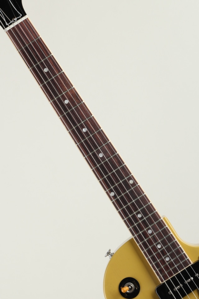 フラットトップのマホガニーボディ、セットネックで接合された適度な握りごたえのあるVintage 50sプロファイルのマホガニーネックにローズウッド指板といった伝統的なウッドマテリアルを使用。こちらも伝統的なギブソンのシングルコイルピックアップであるソープバーのP90ピックアップを2基搭載。ハードウェア類にはホワイトボタンのヴィンテージデラックス、ラップアラウンドブリッジが搭載されております。