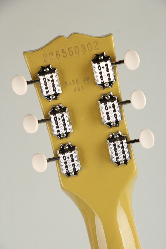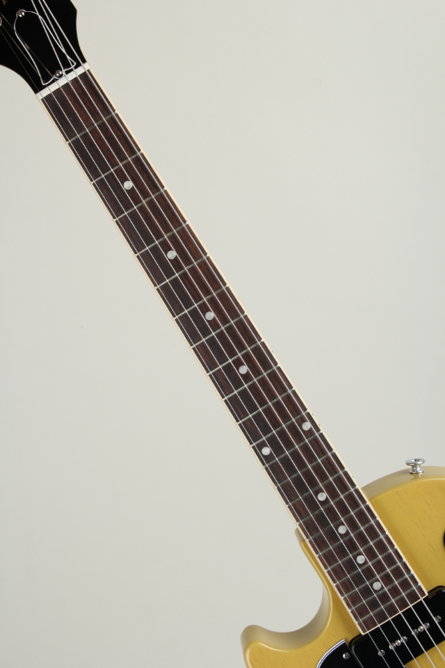 フラットトップのマホガニーボディ、セットネックで接合された適度な握りごたえのあるVintage 50sプロファイルのマホガニーネックにローズウッド指板といった伝統的なウッドマテリアルを使用。こちらも伝統的なギブソンのシングルコイルピックアップであるソープバーのP90ピックアップを2基搭載。ハードウェア類にはホワイトボタンのヴィンテージデラックス、ラップアラウンドブリッジが搭載されております。