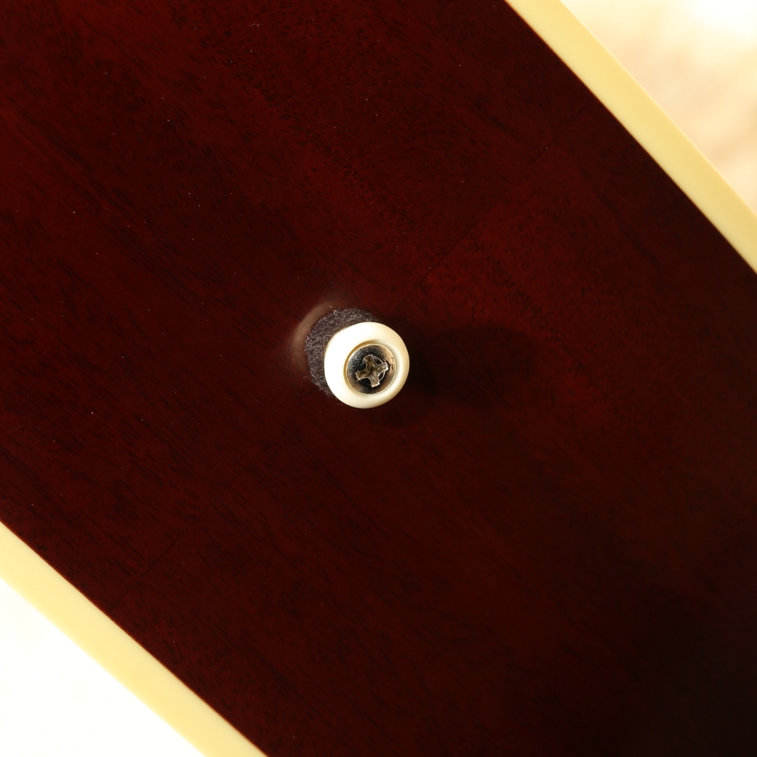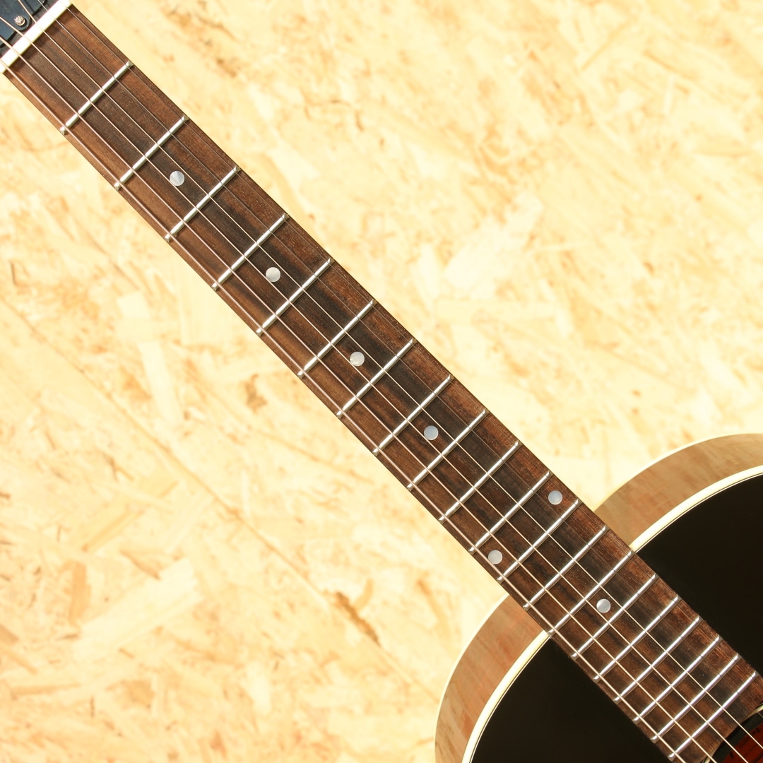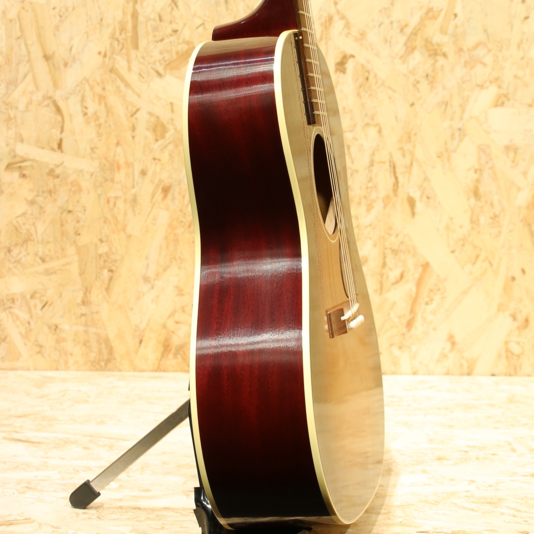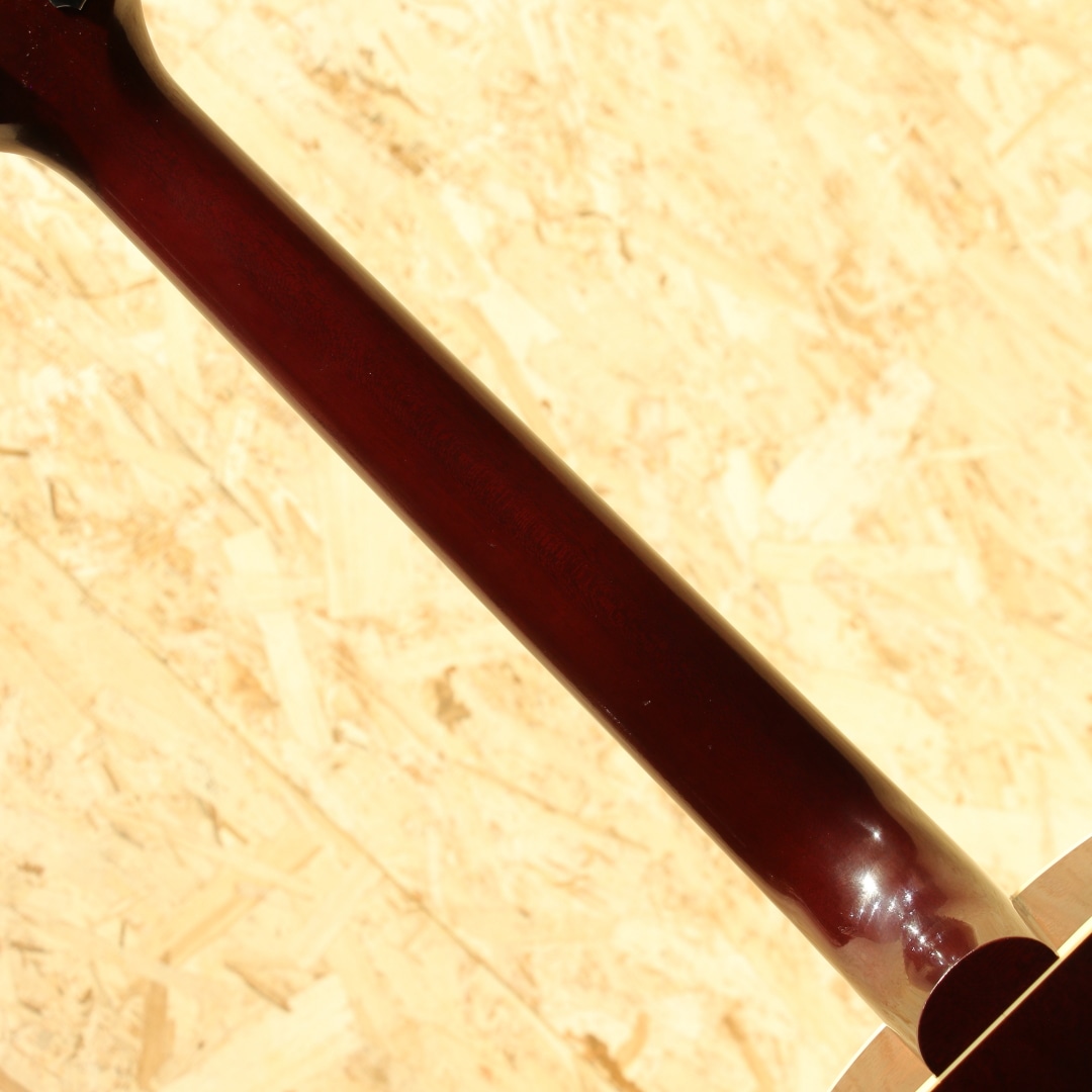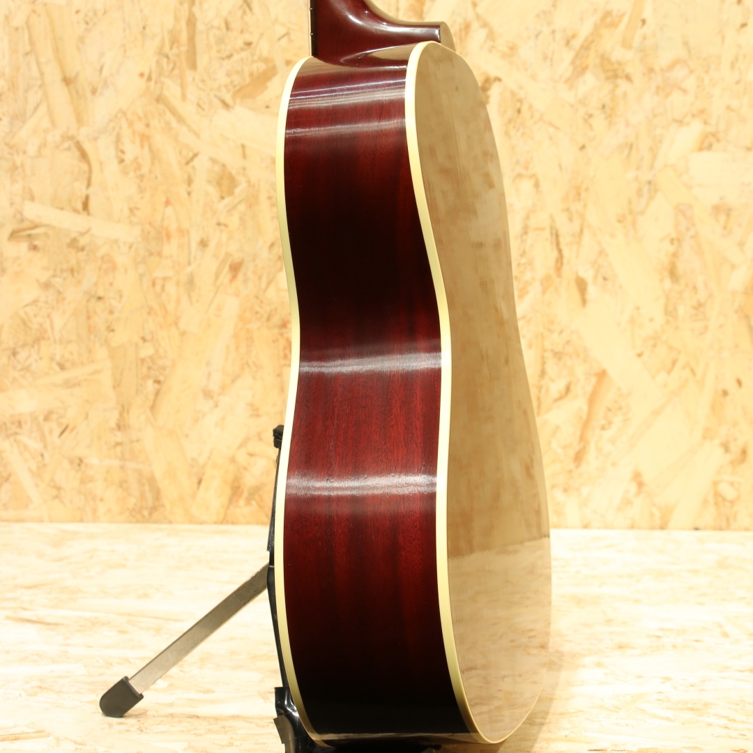 フラットトップにおける永遠の憧れ、ワーキングホースGibson"J-45"。J-45が1942年に生まれたのはあまりにも有名ですが、実はJ-45と同様のスペックを持ったJ-45のダウンサイズモデルのLG-2も同年に製造され始めた事は知る人ぞ知る所です。本器は名立たるトラディショナルな名器の黄金期からインスパイアされたギブソンを代表するスモールボディモデル”1942 Banner LG-2”。サーマリーエイジドアディロンダックレッドプルーストップ、マホガニーサイド&バック、マホガニーネック、ローズウッド指板、ローズウッドレクタングルブリッジ&ロングサドル、3連オープンプレートペグ、スクリプト&バンナーロゴ、MOP指板ドット、シングルリングロゼッタ、べっ甲柄スモールピックガード、ハンドスキャロップドXブレイシング。発売当初”ベースボールバット”と言われていた極太ネックですが、43mmナット幅に調整されています。ニカワ接着による組み上げ、半艶のVOSをベースに導管が浮き出るほどのシンラッカーフィニッシュ、当時を彷彿とさせるビンテージ感溢れる拘りの仕様。ドライで抜け・歯切れが良く、新品なのにもたつく感触を感じさせないサウンドはカスタムショップ製として一線を画すものです。また表板に"サーマリー・エイジド"処理を施したアディロンダックレッドスプルースを採用しており、そのサウンドはより軽やかにドライに広がりあるレンジ感をもたらしてくれます。新品でありながらその弾き込まれたかの様なサウンド。1942年に登場して以来今もなお世界で愛されて止まないフラットトップにおける人気モデル。是非お手元でお確かめください。オリジナルハードケースが付属いたします。