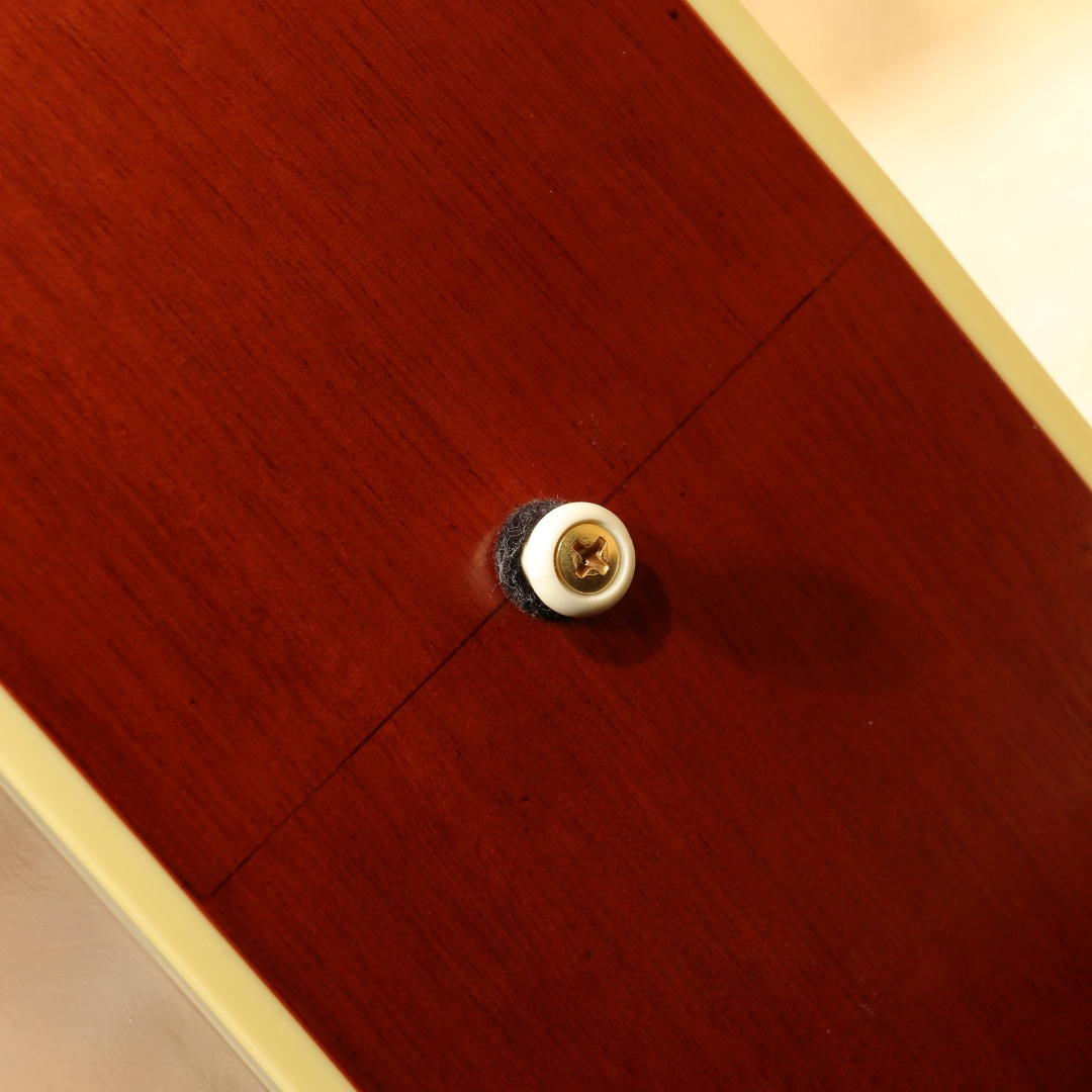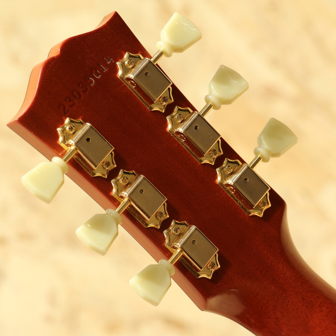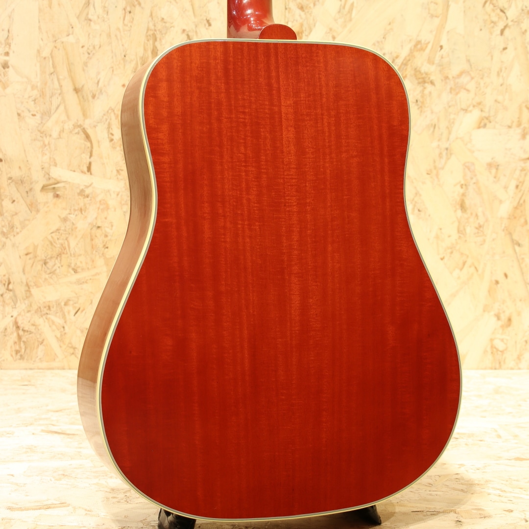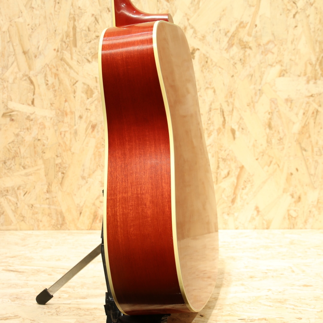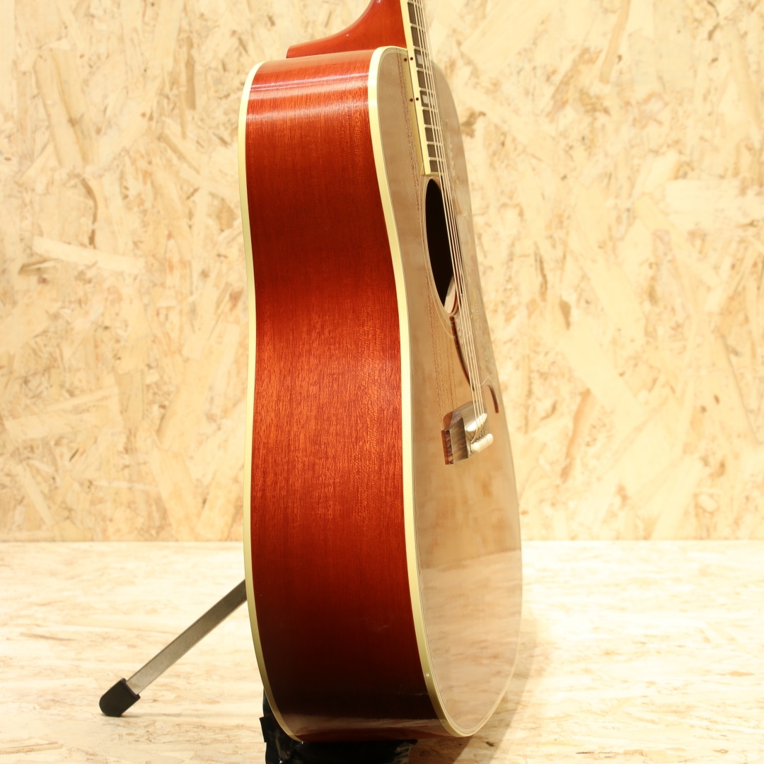 1960年の発売以来、ギブソンスクウェアショルダーボディの定番モデルとして人気を博しているハミングバード。ボディカラー、ピックガード装飾などの個性溢れる外観とオールラウンドなサウンドキャラクターを兼ね備えています。本器は登場初期1960年を基にアレンジを施したモデル”1960 Hummingbird”。サーマリーエイジドシトカスプルーストップ、マホガニーサイド&バック、マホガニーネック、ローズウッド指板、ローズウッドノーマルスロットブリッジ、ゴトーキーストーンペグ、ダブルパラレログラム指板インレイ、ダブルリングロゼッタ、分厚い掘り込みべっ甲柄ピックガード、スキャロップドXブレイシング。60年代の極初期に存在した色味の濃いチェリーサンバーストをイメージ、そのカラーが経年によって色褪せたような色合いのヘリテイジチェリーサンバーストによって実際に長い時間を経たような貫禄を獲得。エイジングされた木の顔色や艶の少ない導管が感じられるほどの極薄シンラッカーフィニッシュ、手作業で曇り感を加えたVOS仕上げによりヴィンテージに迫る質感を再現。塗装が薄いことで木が暴れるような爆発力のあるサウンド、非常にオープンな音色を生み出すことが出来ます。表板にはエイジング加工"サーマリー・エイジド"処理を施したシトカスプルースを使用。豊かなレンジを持ち軽やかでドライなサウンド、音の立ち上がりや反応の速さにも優れています。弾き込んだかのような角の取れたトーンには新品であることを忘れてしまう程です。ハミングバードならではの倍音の絡んだ上品なサウンドがより際立ちます。バリバリのロックンロールをかき鳴らすも良し、ハミングに合わせて優しく爪弾くのも良し。ヴィンテージファンにも納得しておススメ出来るギター、スタンダードモデルからのアップグレードとしてもオススメできる1本。現行GIBSONの技術の粋を集めたカスタムショップ製、是非ご体感下さいませ。オリジナルヴィンテージケースを彷彿させる黄色地の内装にロゴプレートがマウントされた特別なオリジナルハードケース付属。