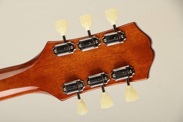 50年代に登場したオリジナルのES-335を可能な限り再現しており、メイプル材で構成されたボディ / マホガニーネックといった伝統的なウッドマテリアルに加え、チューン・O・マチックブリッジ、テールピース、センターブロック構造のホロウボディなど、ES-335を構成するうえで欠かせないスペックとなっております。ギブソン製品を象徴する外観面での装飾としてボディとネックのバインディング、インレイなども余すことなく再現いたしております。