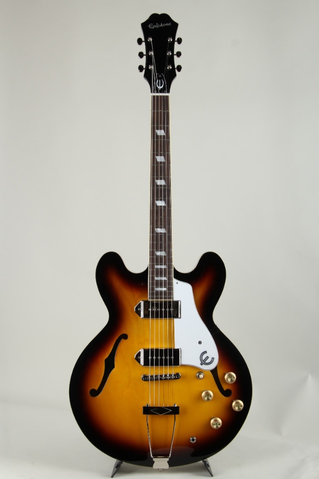 1961年にリリースされて以来、エピフォン・カジノはロックンロールの定番モデルとして根強い人気を誇っております。 セミアコサイズながらフルホロウ構造のボディを採用した生鳴り豊かなサウンド、カジノのサウンドを構成するうえで欠かせないP90シングルコイル・ピックアップ搭載するなど、エピフォン・カジノとして伝統的なスペックで仕上げられております。発売当初の仕様と同じ16フレットジョイントとなっている点もカジノファンには嬉しいこだわりのスペックとなっております。ヴィンテージ・サンバーストとナチュラルの2色展開となっており、どちらもエピフォン・カジノとして印象深いエピソードを持つカラーラインナップとなっております。