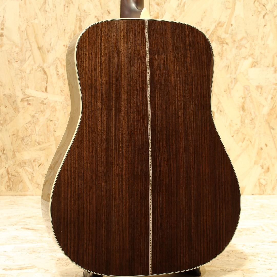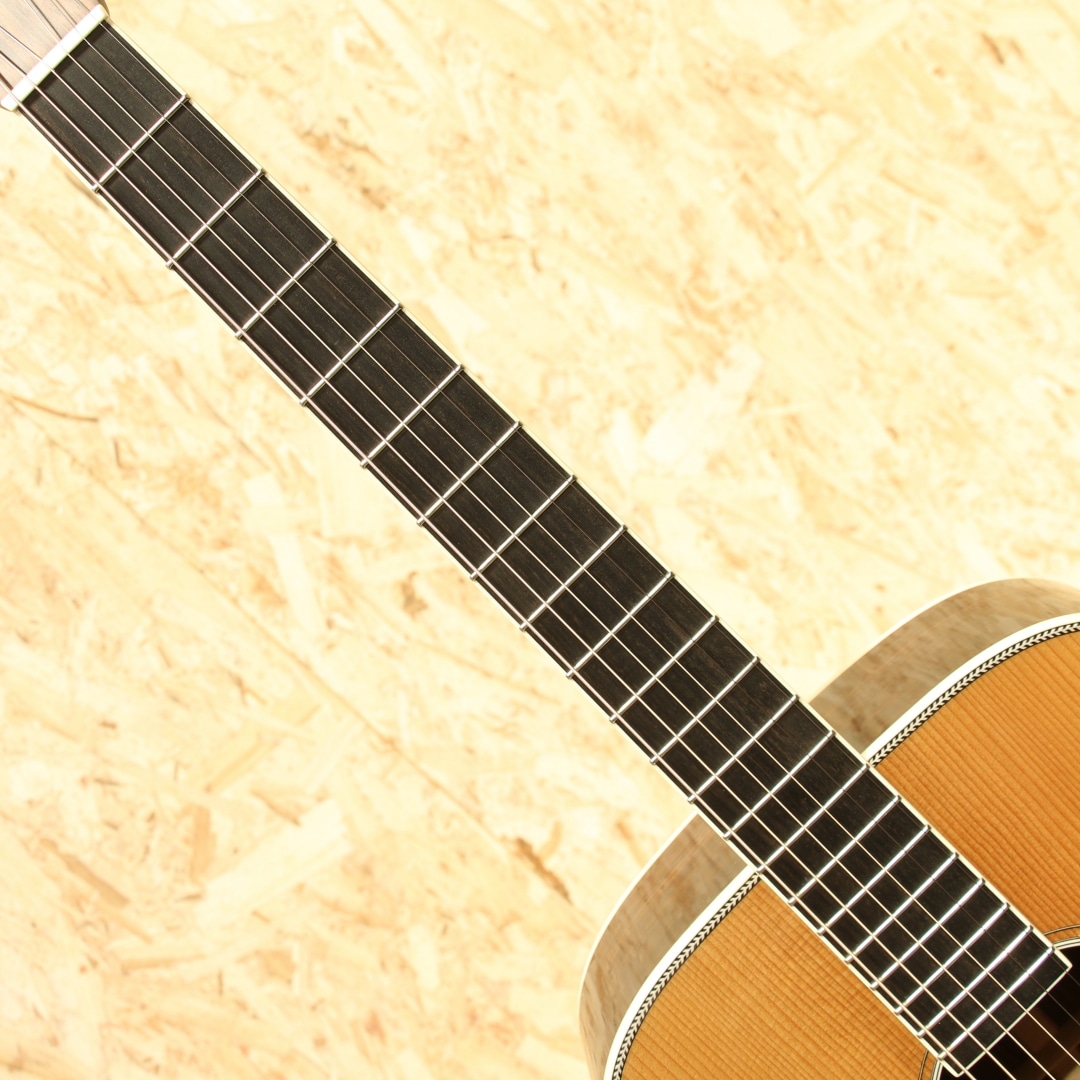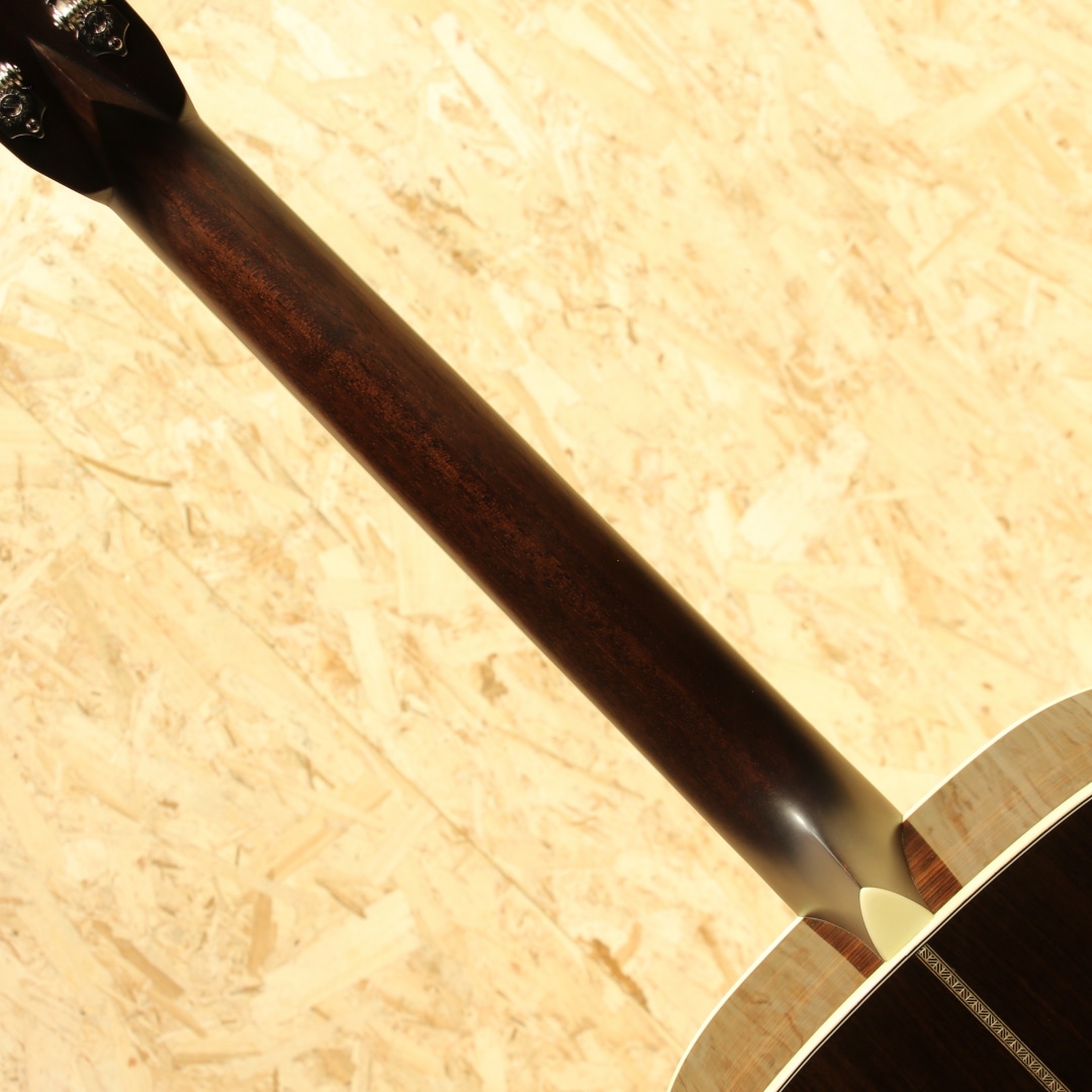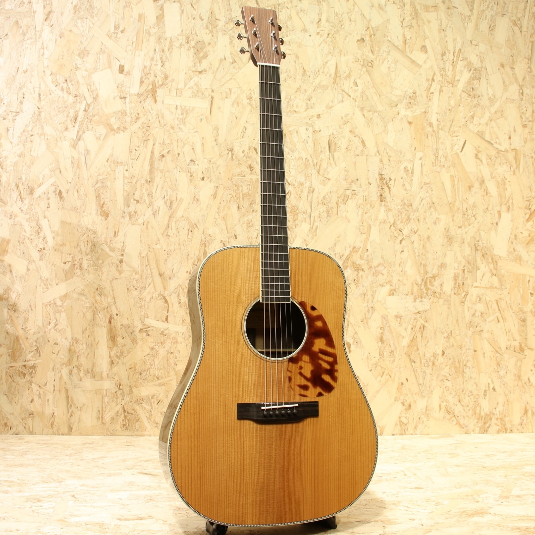 単板削り出しのアーチトップギターに定評のあるEastman。マンドリンやウクレレにヴァイオリンなど様々な楽器を製造してきた経験、その過程で得た高い木工技術は世界から高い評価を受けています。ハンドメイドに拘り製作を行うポリシーを貫いて現在でも製作を行っています。本器は”E20D-TC-LSH”。アコーステッィクギター界の巨匠の1人、トニーライスがクラレンスホワイトから受け継ぎ使用した1935年製D-28スタイルを踏襲した拘りのモデル。熱を加えることで木材を変化させるサーモキュア処理を施されたアディロンダックスプルースをトップ材に使用。ローズウッドサイド&バック、マホガニーネック、エボニー指板&ブリッジ、ゴトー製オープンバッククロームペグ、アバロンダイアモンドスクエア指板インレイ、ヘリンボーントリム、ジグザクバックストリップ、べっ甲柄ピックガード、ハンドカーブドスキャロップドXブレイシング。ヘリンボーンにべっ甲柄ピックガード、オープンバックペグからジグザクバックストリップなど戦前モデルを彷彿とさせるルックスを持った本器。特筆すべきは約114mm径のラージサウンドホールですが、ヘッド裏ロゴスタンプやインレイ無しフィンガーボードなど要所に拘りの高さがうかがえる踏襲スペックです。熱処理によって木材の質を変化させ、弾き込まれたようなサウンドを獲得できるトリファイド加工を施した材をトップに採用。経年変化で獲得したような耳馴染の良いふくよかなサウンド。躍動感たっぷりの低音の出方や太い音色はアディロンダックスプルースならではの魅力の1つです。ブレイシングにはスキャロップが施されており、より膨らむような音の出方や爆発力が強化されています。ローズウッドの重厚さとラージサウンドホールにより、広いレンジ感でラウドに響くサウンドへと仕上げられています。金額以上に価値のある造りとサウンドから米国でも人気の高いブランドです。ワンランク上のギターをお探しの方や弾き慣れた方のサブギターとしても充分オススメできる品質のギター。是非ご体感ください。