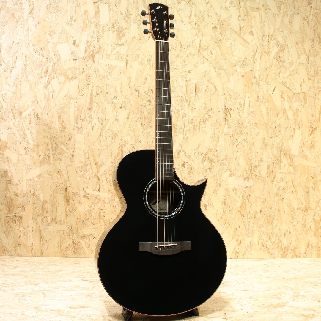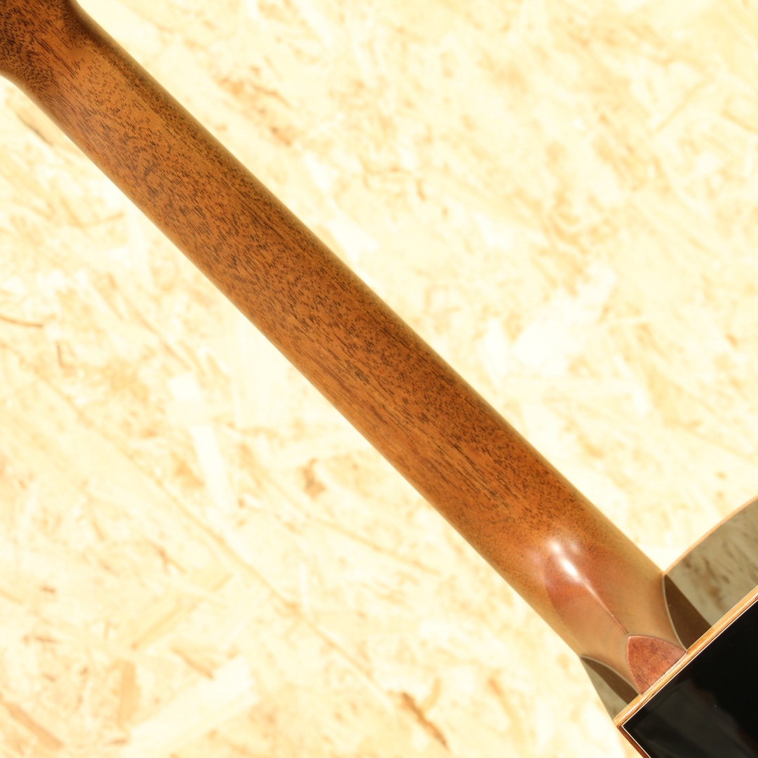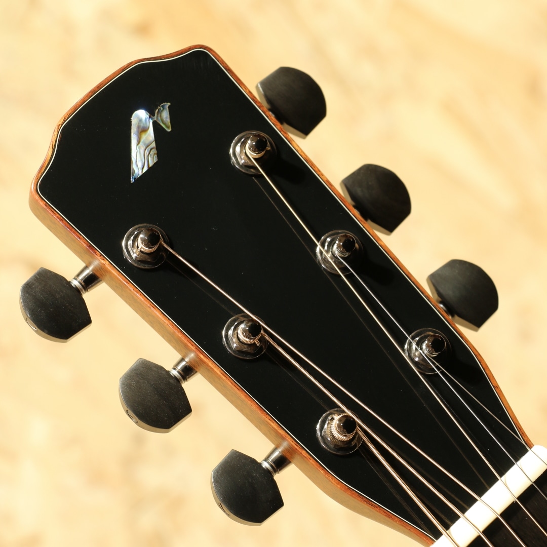 以前はフォークブームの一翼を担っていた国産ブランド”Morris”。2000年代初頭頃より大量生産から半手工品へというキャッチフレーズを掲げ、シフトチェンジ。現在ではフィンガーピッキング用ギターの顔と言えるファクトリーブランドとして長野県松本で良質なギターを生産しています。本器はHAND MADE PREMIUMラインにて製作された、ショップ・オリジナル・カスタムモデル” SJ-101 Custom "。現ラインナップでは製作されていないセミジャンボシェイプを復活させたオーダーモデルです。イングルマンスプルーストップ、インディアンローズウッドサイド&バック、マホガニーネック、エボニー指板&スルーブリッジ、ゴトー製ウッドノブクロームペグ、アバロンロゼッタ、ドットオフセットMOP指板インレイ、ウッドバインディング、スキャロップドXXブレイシング、フローレンタインカッタウェイ。豊かな音量と素早いレスポンス、高い演奏性を兼ね揃えるSJボディにフィンガースタイルに相性の良いをスキャロップドXXブレイシングパターンを採用。バック構造にはXバックを採用しています。程よいテンション感でハリのある太く奥行きのある低音にブライトで粒立ちの良い艷やかな高音。セミジャンボサイズが生み出す立体感のあるサウンド、撥弦時の箱の内から鳴る押し出しの強いトーンも魅力の1つです。タッチレスポンスの反応も良く、弾き手の細かいニュアンスを余すことなく表現してくれます。6弦側に配置されたオフセットドット指板インレイは演奏時の視認性も高く、指板上を行き交うポジション移動もストレスなく演奏いただけます。恍惚とする美しい仕上げられたブラックフィニッシュにウッドバインディングとアバロンロゼッタが非常にマッチした本モデル。ぜひお手元でこのルックス、サウンドをご体感ください。後付可能なホワイトピックガードとオリジナルハードケースが付属します。