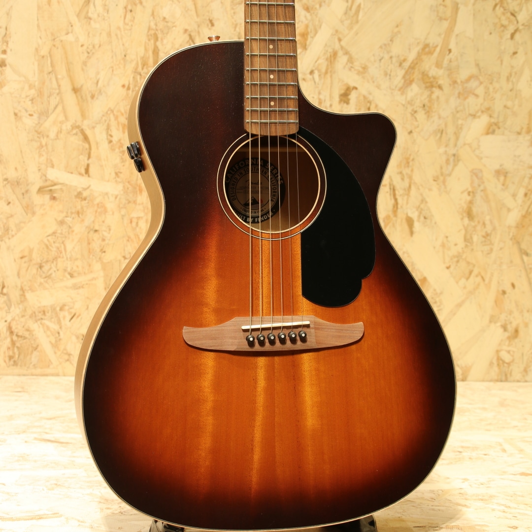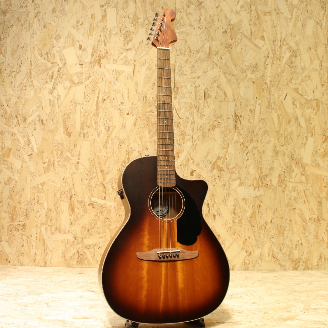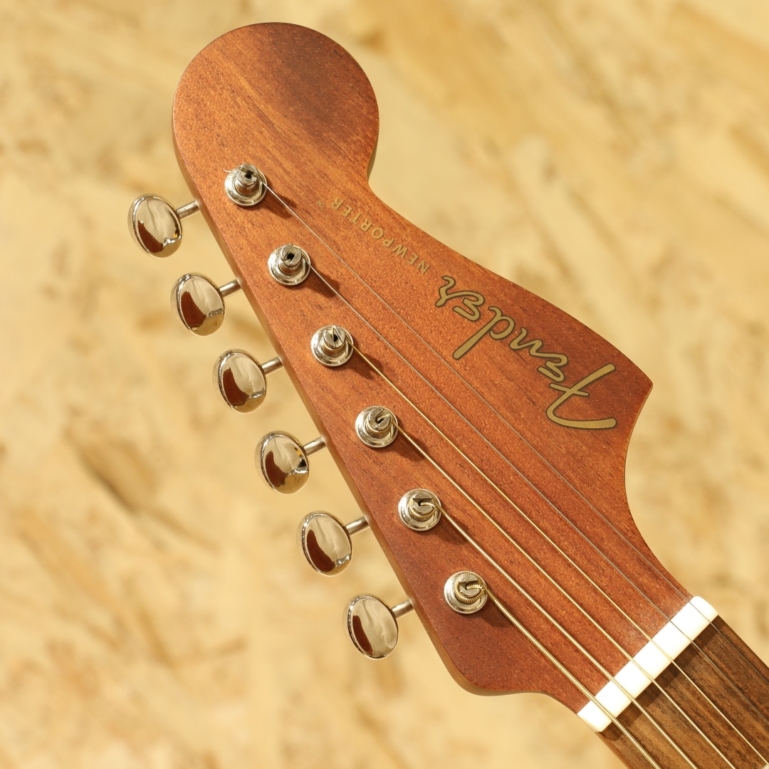 既存のスタイルに捉われず革新的な楽器を生み出し続ける”Fender”。エレキギターではその革新性を存分に活かしたラインナップが評価され長年ミュージシャンに愛用されてきました。近年ではAcoustasonicなどのアコースティックとエレキの融合を果たしたギターを生み出すなどの新たなカタチを創造し続けています。本器はやや小ぶりなサイズ感で優秀な演奏性を与えられた”NewPoter Special ”。オクメ単板ボディ、ナトーネック、パーフェロー指板&ブリッジ、メイプルバインディング、スキャロップドXブレイシング、ハニーバーストカラー、Fishman製ピックアップシステム搭載。1960年代後半にNewPoterは存在しており、1971年には廃番となるなど非常に短命だった機種。その後改めて見直され現代において適応したスペックを与えられた上で現在でも製造が行われている人気の機種です。やや小ぶりで抱えやすいサイズ感、エレキギターで馴染みのある薄めのCシェイプネック、これらはエレキギターユーザーの方には非常に嬉しいポイント。フェンダーを象徴するヘッド形状や3Pピックガード等Fender好きにはたまらない仕様を盛り込まれたギターです。Playerシリーズからはピックアップの変更や材質の変更、ギグケースや装飾の変更がされています。ボディバインディングには白い色合いのメイプルを使用し、木材のナチュラルな風合いを織り込まれたルックスに。ボディ材のブラウンカラーとの対比でオーガニックな印象を受けます。バランスの整ったサウンド、明るく歯切れの良いサウンドが特徴的。オクメトップ特有のスプルーストップより硬質な音色、明るくドライなサウンドを獲得。アコギらしい爽やかさや煌びやかさを奏でることができ、心地よく演奏することが出来ます。指で弾くとやや丸い音、柔らかく優しい音色を出してくれるため普段とは違った一面を見ることが出来る点も面白いところ。自分に合ったサウンドをチョイスして演奏出来ます。ピックアップにはFishman製のFlex Bodyピックアップシステムを搭載。音の芯を捉えるアンダーサドルピエゾとボディの空気感を拾うボディトランスデューサーを内蔵し、それらをミックスしてナチュラルなサウンドをアウトプットすることが出来ます。現代的にはライブだけでなく配信や宅録までこなせる辺り選択肢を多く出来る優秀な1本です。まだどんな事をするか決めていない入門の方、エレキギターのサブでアコギをお探しの方、またはステージ用のエレアコをお探しの方など多くの方にオススメできる1本です。バリエーションの多さから選択肢の多い、好みにフィットしやすいギターです。是非お手元で演奏をお楽しみ下さいませ。