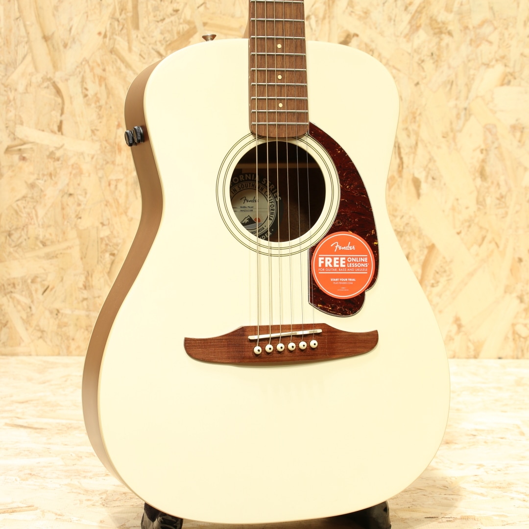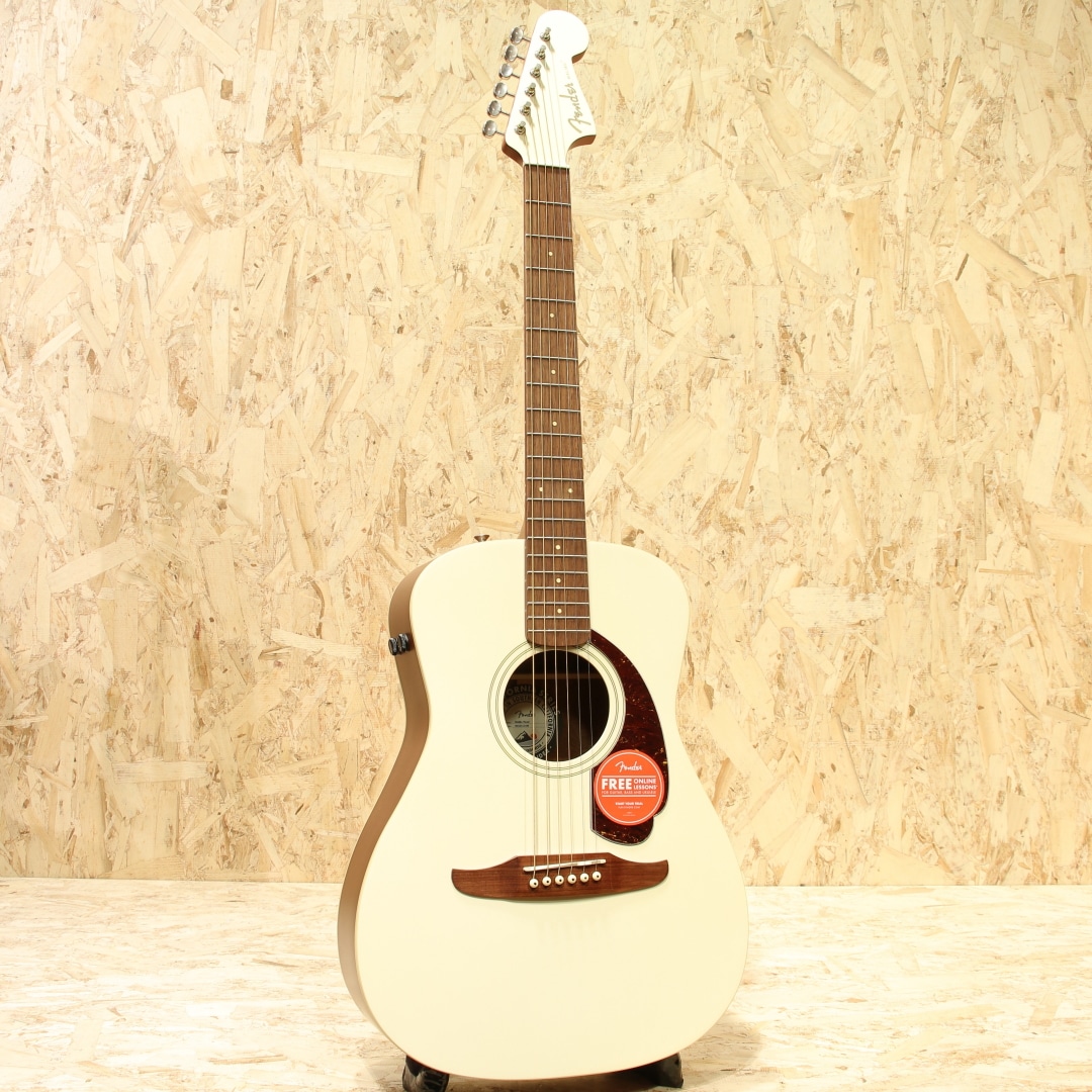 既存のスタイルに捉われず革新的な楽器を生み出し続ける”Fender”。エレキギターではその革新性を存分に活かしたラインナップが評価され長年ミュージシャンに愛用されてきました。近年ではAcoustasonicなどのアコースティックとエレキの融合を果たしたギターを生み出すなどの新たなカタチを創造し続けています。本器は小ぶりなサイズ感で優秀な演奏性を与えられた”Malibu Player”。Olympic Whiteカラーリングの1本です。シトカスプルース単板トップ、サペリサイド&バック、ナトーネック、ウォルナット指板&ブリッジ、スキャロップドXブレイシング、Fishman Flexピックアップシステム搭載。1960年代後半にMalibuは存在しており、1971年には廃番となるなど非常に短命だった機種。その後改めて見直され現代において適応したスペックを与えられた上で現在でも製造が行われている人気の機種です。小ぶりで抱えやすいサイズ感、エレキギターで馴染みのある薄めのCシェイプネック、これらはエレキギターユーザーの方には非常に嬉しいポイント。意外とカラーリングの自由度が少ないアコースティックにおいて、エレキギターのようにカラフルなカラーリングをラインナップしている点も好きなギターを選ぶ上で大きなポイントでしょう。フェンダーを象徴するヘッド形状や3Pピックガード等Fender好きにはたまらない仕様を盛り込まれたギターです。サウンドバランスの整ったサウンド、明るく歯切れの良いサウンドが特徴的。アコギらしい爽やかさや煌びやかさを奏でることができ、心地よく演奏することが出来ます。指で弾くとやや丸い音、柔らかく優しい音色を出してくれるため普段とは違った一面を見ることが出来る点も面白いところ。自分に合ったサウンドをチョイスして演奏出来ます。ピックアップはFishman Flexピックアップシステムを搭載。非常にシンプルな構成でボリュームとトーンのみ、トーンノブを押し込むと位相が切り替わるフェイズ機能も搭載されています。最低限必要な機能を搭載し、多くない機能から操作に迷うことも無い親切仕様。芯を捉えたサウンドを簡単に出力することが出来ます。現代的にはライブだけでなく配信や宅録までこなせる辺り選択肢を多く出来る優秀な1本です。まだどんな事をするか決めていない入門の方、エレキギターのサブでアコギをお探しの方、またはステージ用のエレアコをお探しの方など多くの方にオススメできる1本です。カラーリングの多さから選択肢の多い、好みにフィットしやすいギターです。是非お手元で演奏をお楽しみ下さいませ。