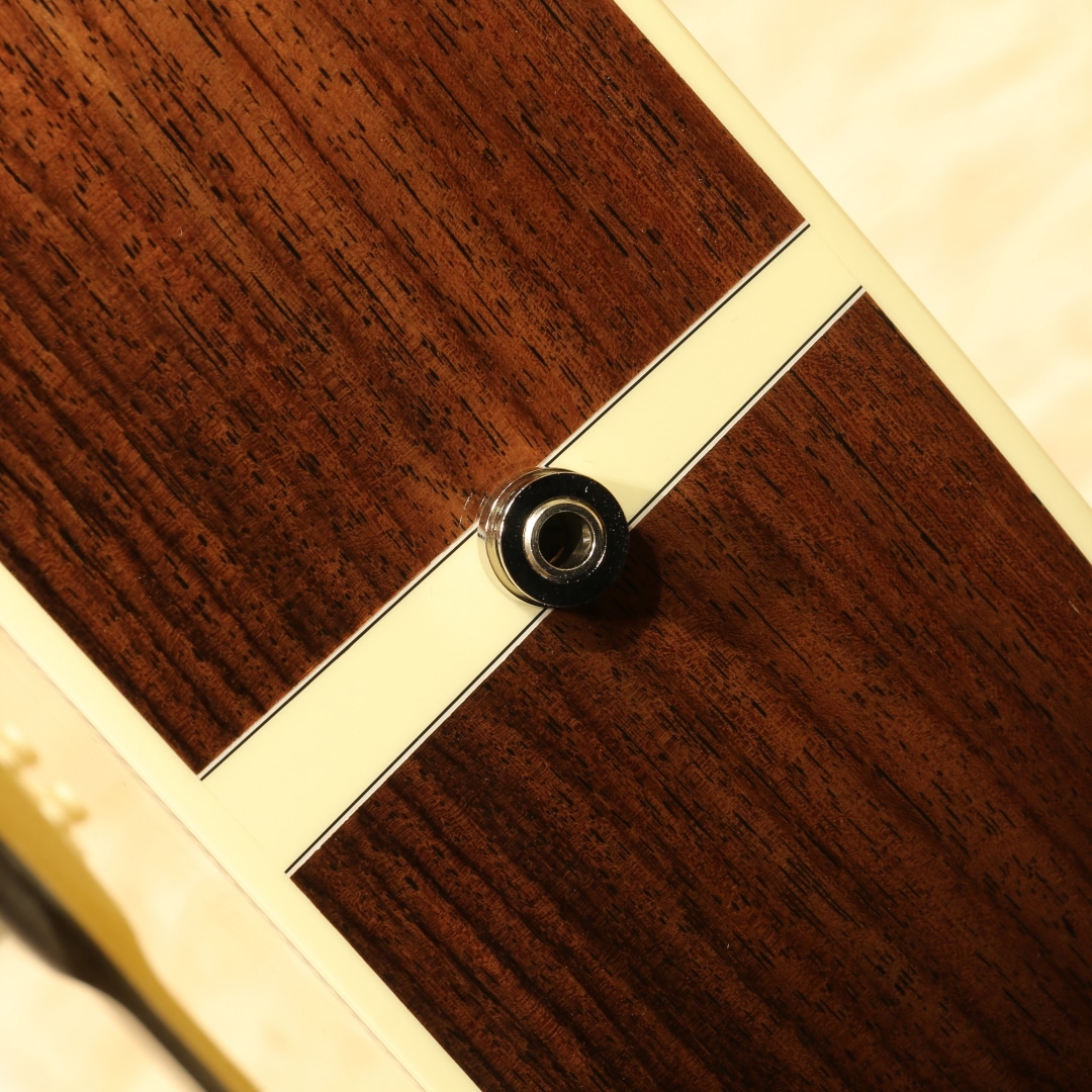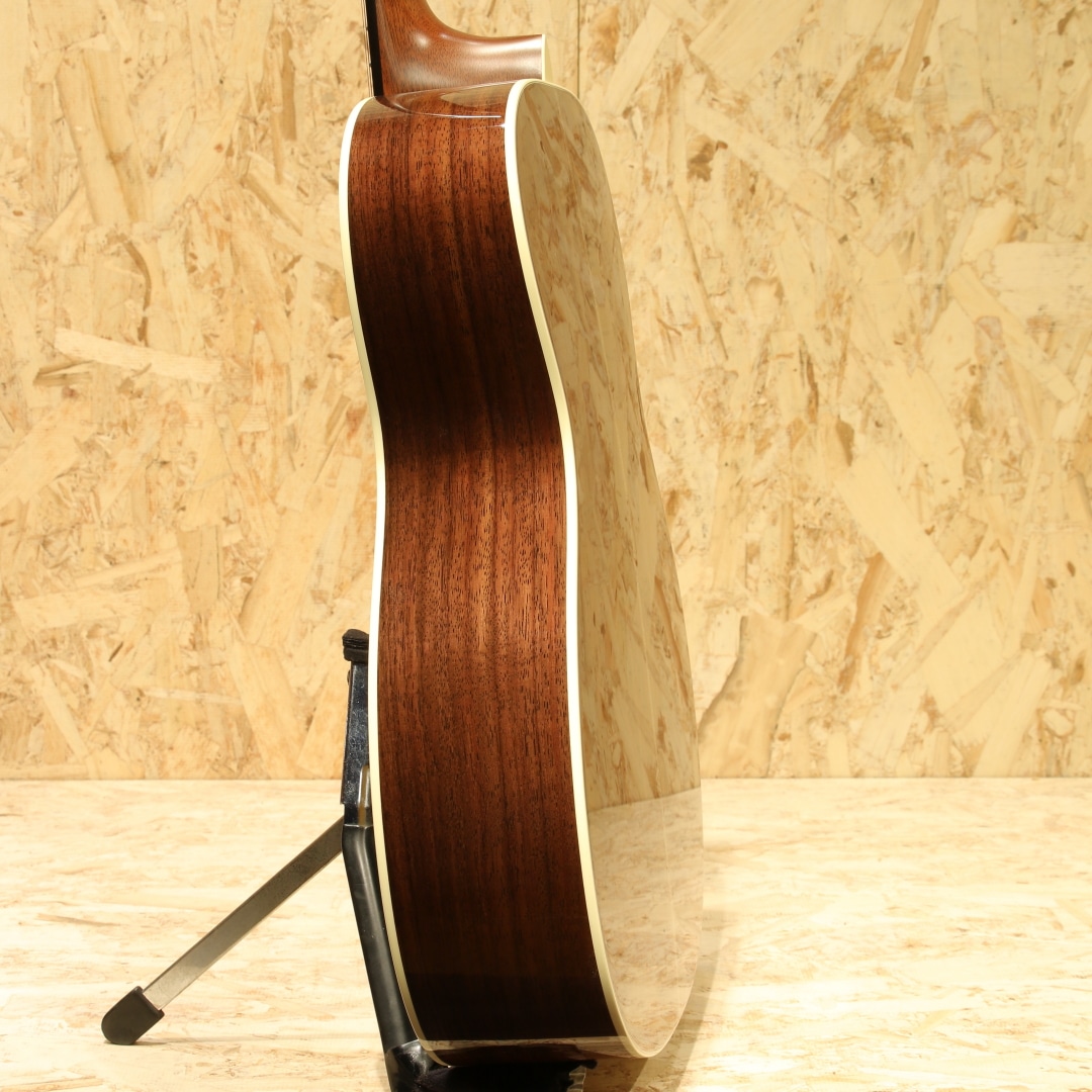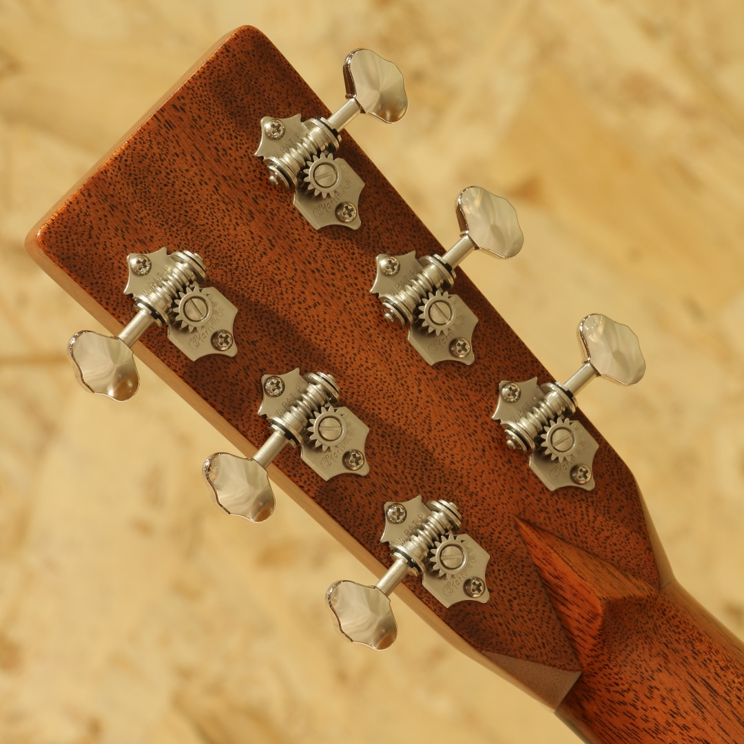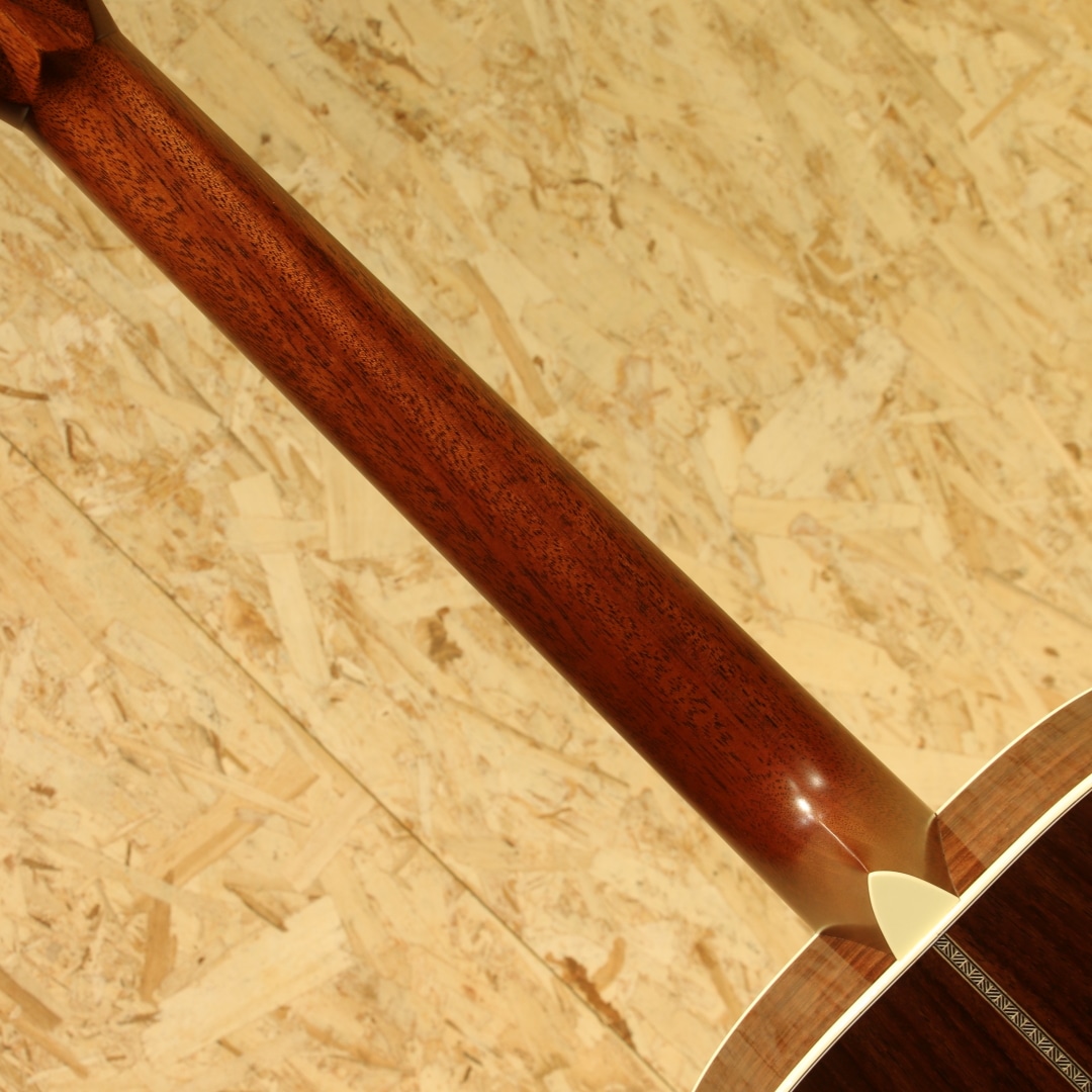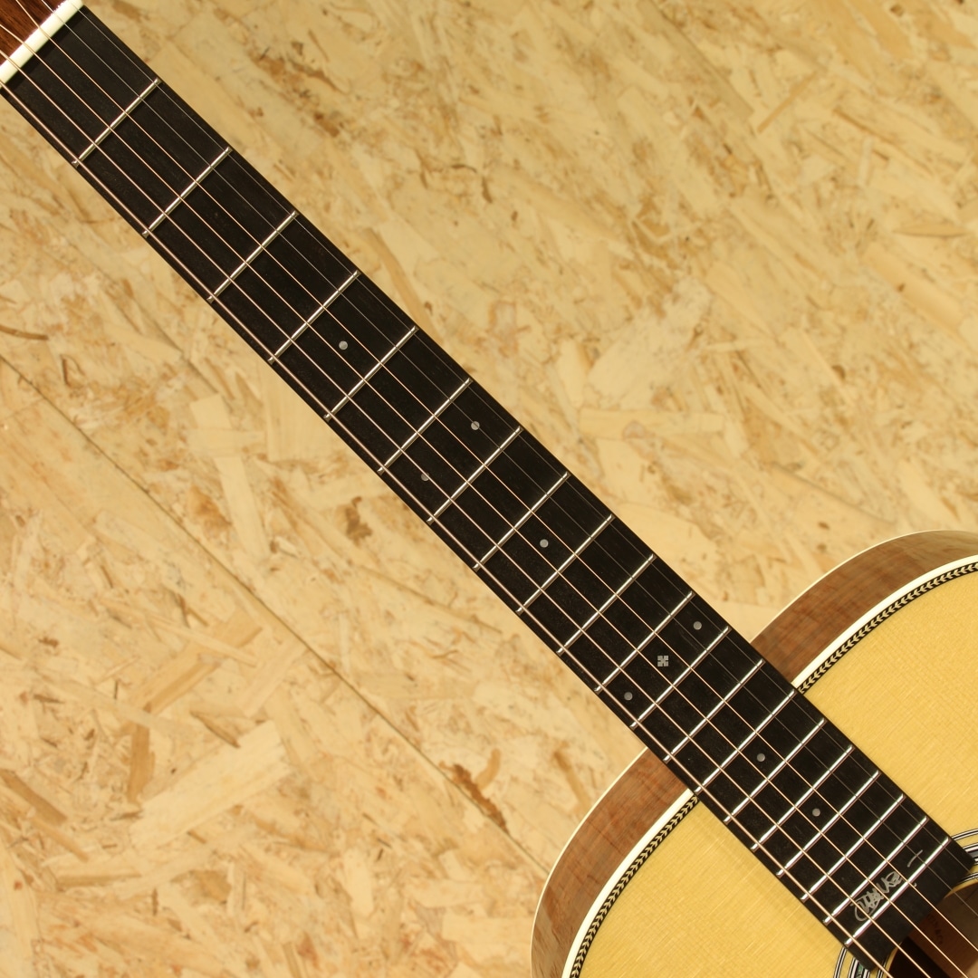 現代の三大ギタリストに選定された”ジョン・メイヤー”。ブルージーなヴォーカルとギター誌が絶賛するギタープレイで幅広い世代の支持を受け、デビュー作をグラミー受賞で飾っている実力派です。本器はそんな”ジョン・メイヤー”のシグネチャー第二段”OMJM”。イングルマンスプルーストップ、イーストインディアンローズウッドサイド&バック、エボニー指板&ブリッジ、オリジナルオープンバックペグ、パール指板インレイ、オリジナルベッコウ柄ピックガード、アバロンロゼッタ、ヘリンボーントリム、アイボロイドバインディング、ジグザグバックストリップ、スキャロップド・ブレイシング、"Martin Gold Plus Natural 1"ピックアップ標準内蔵。ヘリンボーントリムやアイボロイドバインディング、ジグザクバックストリップなどのトラッドなスタイルを踏襲しつつサウンドホールロゼッタをアバロンで上品に。指板インレイもスモールドットとスクエアを組み合わせ、指板エンドにはサインのインレイ。様々なアレンジを施しジョンメイヤーのサウンドのように上品なイメージを纏っています。意外と現在では少ない42.9mmナット幅仕様。グリップもロープロファイルネックの為エレキユーザーが弾いても違和感の少ない、演奏性の高いグリップに仕上がっています。トップ材にはイングルマンスプルースを採用し、柔らかく上品なサウンドを。40番台にも通じる煌びやかなサウンドを響かせます。軽いタッチ感での反応性はイングルマン特有、さほど力を入れずとも音が立ち上がり滑らかな運指やタッチ感をカバーしてくれます。「Daughters」のようにしっとりと弾き語るも良し、「Neon」のようなアグレッシブなタッチ感で演奏するも良し。ジョンメイヤーの曲に限らず様々なジャンルでストロークからフィンガーピッキングまで幅広く使える、現代的な演奏に対応できるモデルです。ピックアップにはFishman Martin Gold Plus Natural 1を搭載。アクティブタイプのアンダーサドルピックアップで音の芯を捉えたサウンドを出力します。パリッとしたサウンドでタッチ感を出しやすいピックアップ、フィーリングを存分に活かせるポテンシャルを持っています。難しい操作も必要なく繋ぐだけでいいというのもありがたい点。生とラインサウンドと両者で活躍の見込める1本です。現代の3大ギタリストに挙げられるプレイヤー、その要望に応えるポテンシャルを持った傑作器です。今後、スタンダードモデルとして000-28EC同様に継続されるギターとなるでしょう。是非お手元でそのポテンシャルをご体感下さいませ。