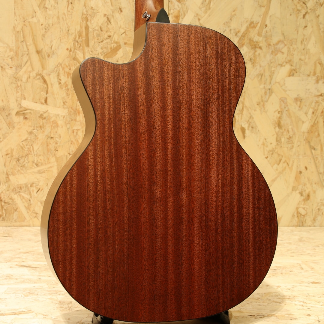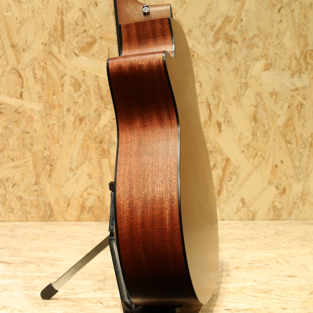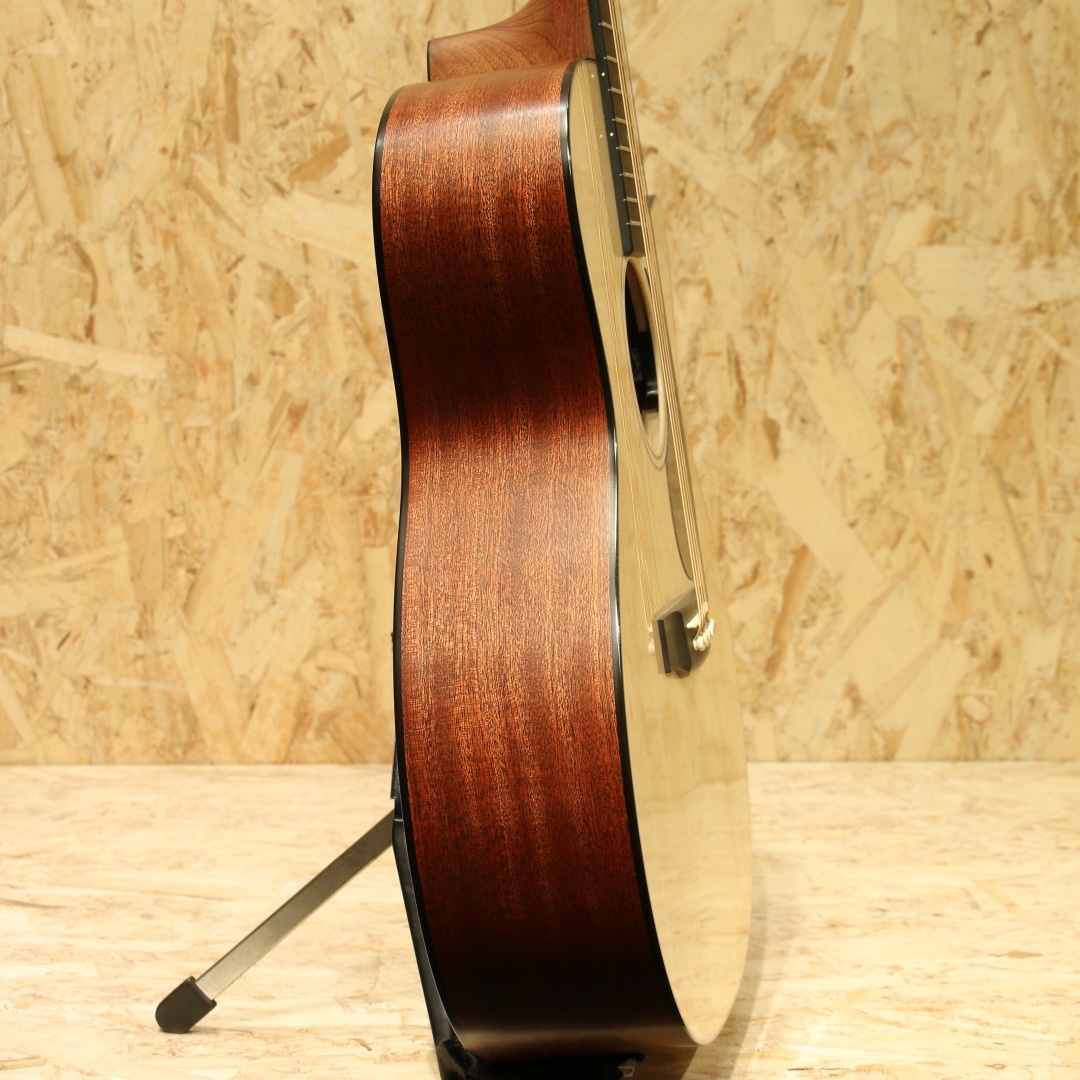 シリーズ独自の構造を取り入れ、低価格ながらオール単板ボディ(一部モデルを除く)とピックアップを備える"Road Series"。000やOMに比べ少し大ぶりで低音域のふくよかな響きを持ち、使い勝手と抱えやすさのバランスの良さが特徴、更にはカッタウェイが施された人気のシェイプGPCモデル。本器はグロストップモデルの”GPC-11E”。スプルーストップ、サペリサイド&バック、セレクトハードウッドネック、リッチライト指板&ブリッジ、ロゴ入りクロームロトマチックペグ、パール指板ドットインレイ、べっこう柄ピックガード、FISHMAN MX-Tピックアップシステム搭載。定番のドレッドノートタイプのボディ幅(396.8mm)よりも若干広いボディ幅(400mm)を持ち、くびれはOOOのようにキュッと締まったボディを持つGP。Dサイズに比べて肩が上がりにくい為、大きさを感じにくくなっているのに低音は出しやすい秀逸なサイズ感です。低音だけでなく全体的なサウンドバランスも整えられ、締まりのあるサウンド感、レンジ感も広くと扱いやすい音色。サペリを使用しているだけに明るくカラッとしたトーン、軽快に爽やかに響いてくれます。音色も太く出しやすいので、コードストロークからリードプレイまで対応しやすいサウンド。ネックの厚みも薄平ネックで指板上を上下しやすいグリップに仕上がっています。搭載のピックアップは本シリーズ共通のFISHMAN社製MX-T。アンダーサドルピエゾシステム、コントローラーはVol,Toneと大変シンプル。更には1弦側サウンドホール縁にバックライト付きチューナーを標準採用。お手元1つでチューニングからサウンドメイクまでお手軽操作で行えます。芯を捉えた明瞭なラインサウンドを出力。コスパに優れたロードシリーズ、必要十分な機能を備えたエレアコ仕様。カッタウェイ仕様で昨今ではフィンガースタイルでも使用されており、演奏ジャンルを選ばずに扱いやすいオールマイティな1本。クッション性に優れた軽量で持ち運びのしやすいソフトギグバックが付属します。