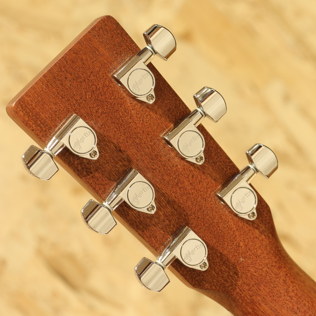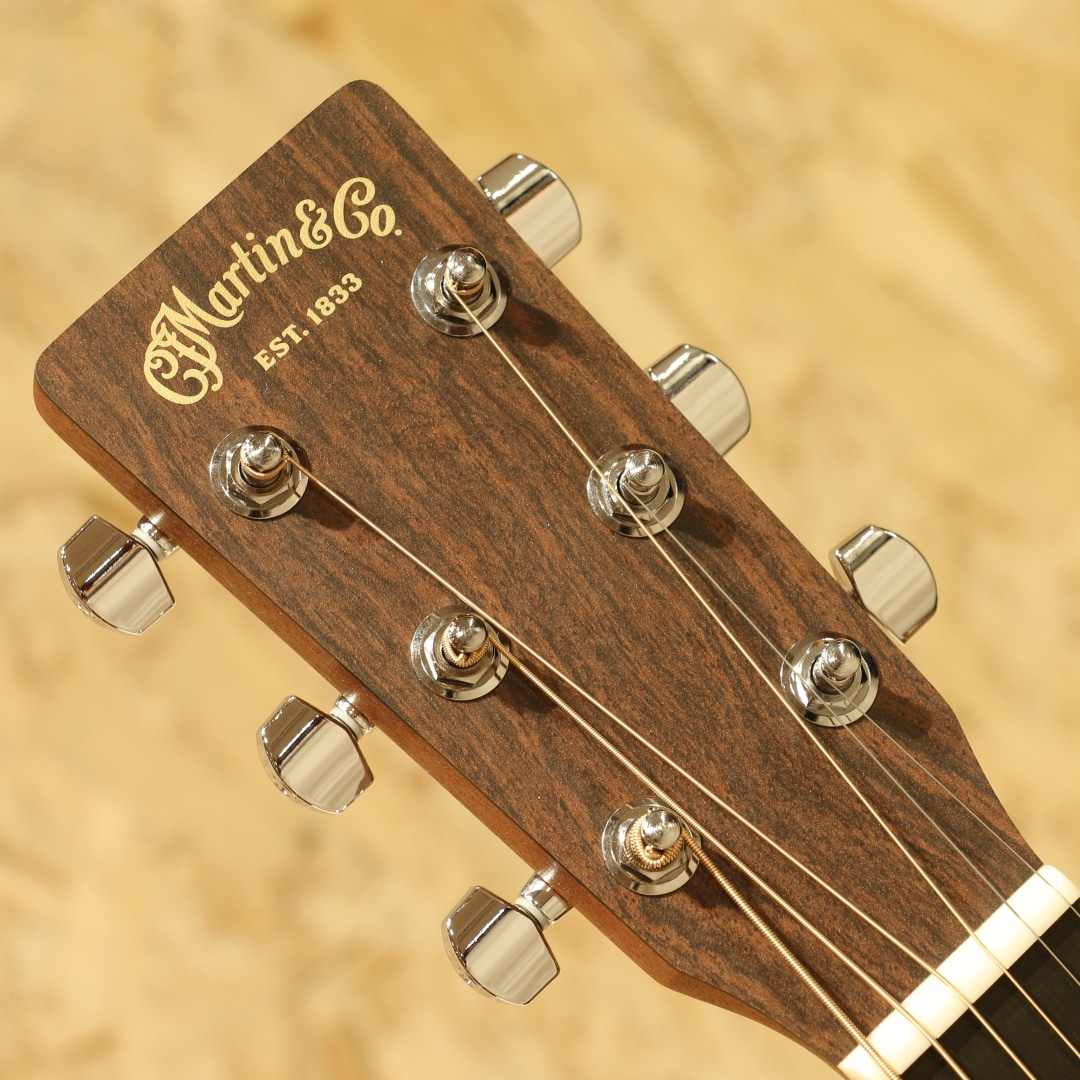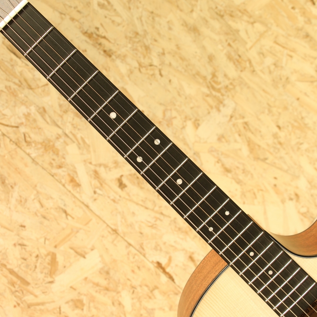 シリーズ独自の構造を取り入れ、低価格ながらオール単板ボディ(一部モデルを除く)とピックアップを備える"Road Series"。000やOMに比べ少し大ぶりで低音域のふくよかな響きを持ち、使い勝手と抱えやすさのバランスの良さが特徴、更にはカッタウェイが施された人気のシェイプGPCモデル。本器はグロストップモデルの”GPC-11E”。スプルーストップ、サペリサイド&バック、セレクトハードウッドネック、リッチライト指板&ブリッジ、ロゴ入りクロームロトマチックペグ、パール指板ドットインレイ、べっこう柄ピックガード、FISHMAN MX-Tピックアップシステム搭載。定番のドレッドノートタイプのボディ幅(396.8mm)よりも若干広いボディ幅(400mm)を持ち、くびれはOOOのようにキュッと締まったボディを持つGP。Dサイズに比べて肩が上がりにくい為、大きさを感じにくくなっているのに低音は出しやすい秀逸なサイズ感です。低音だけでなく全体的なサウンドバランスも整えられ、締まりのあるサウンド感、レンジ感も広くと扱いやすい音色。サペリを使用しているだけに明るくカラッとしたトーン、軽快に爽やかに響いてくれます。音色も太く出しやすいので、コードストロークからリードプレイまで対応しやすいサウンド。ネックの厚みも薄平ネックで指板上を上下しやすいグリップに仕上がっています。搭載のピックアップは本シリーズ共通のFISHMAN社製MX-T。アンダーサドルピエゾシステム、コントローラーはVol,Toneと大変シンプル。更には1弦側サウンドホール縁にバックライト付きチューナーを標準採用。お手元1つでチューニングからサウンドメイクまでお手軽操作で行えます。芯を捉えた明瞭なラインサウンドを出力。コスパに優れたロードシリーズ、必要十分な機能を備えたエレアコ仕様。カッタウェイ仕様で昨今ではフィンガースタイルでも使用されており、演奏ジャンルを選ばずに扱いやすいオールマイティな1本。クッション性に優れた軽量で持ち運びのしやすいソフトギグバックが付属します。