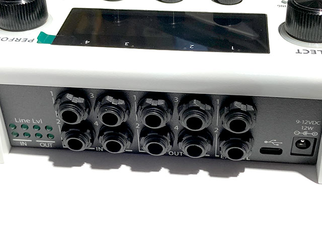 H90はライブパフォーマンスでも威力を発揮します! フロントパネルは、5つのプッシュノブ、7つのLEDボタン、高解像度の有機ELディスプレイで生まれ変わり、より実践的なコントロールとパラメーターフィードバックが可能になりました。2つの大型プッシュノブにより、SELECT、BANK、PERFORMモードの切り替えが簡単に行えます。PERFORMモードでは、6つのプログラマブルフットスイッチを使用できます。タップテンポ、プリセット、インサートバイパス、モメンタリーなどの機能をマッピングしたり、リバーブフリーズ、ピッチフレックス、ディレイリピートなどのオプションを使用したり、3つのHotSwitchで瞬時に複数のパラメーターを変更することができます。