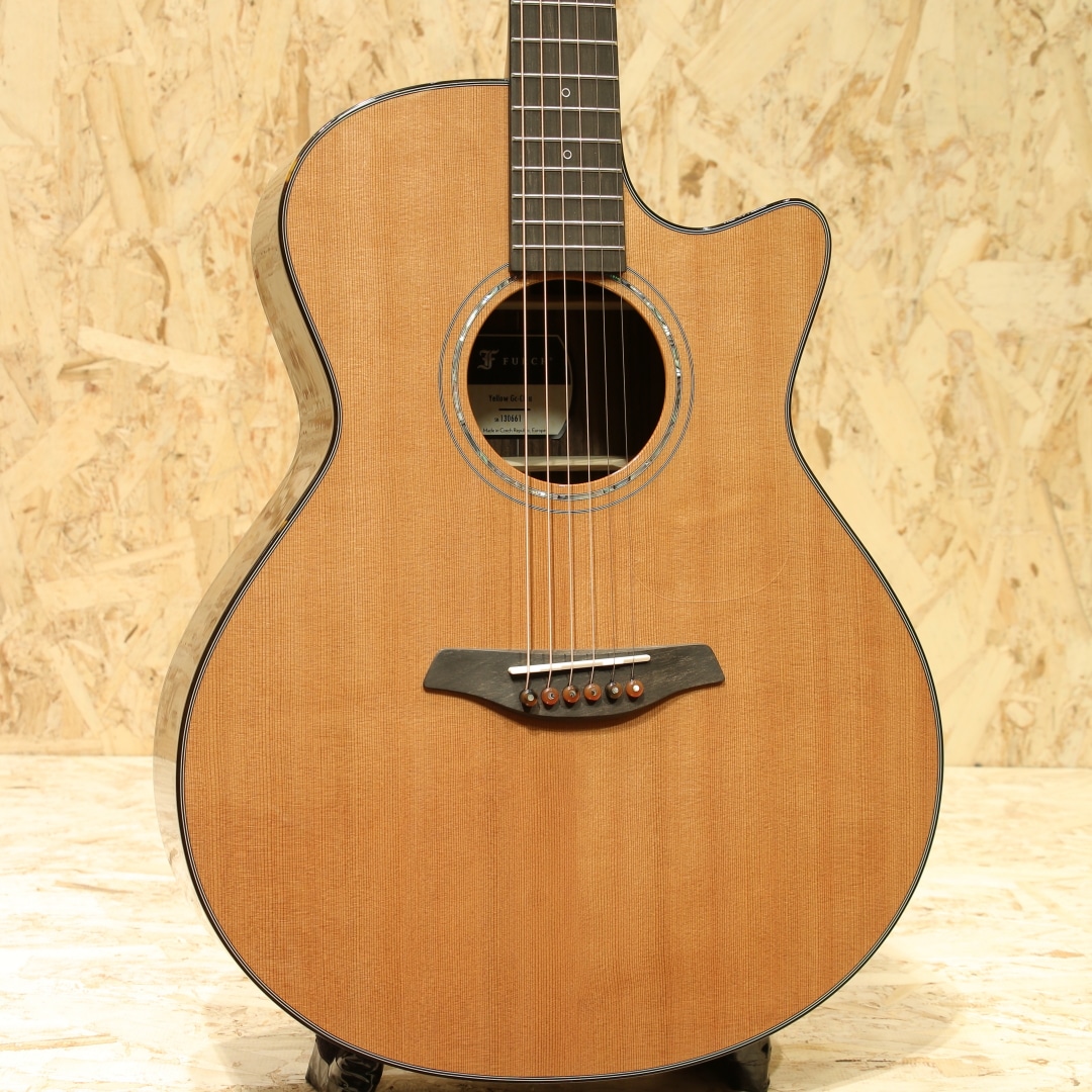 1981年、チェコスロバキア社会主義共和国時代、ブルーグラスプレイヤーであったFrantisek Furch(フランティセク フォルヒ)氏が自らとその仲間の為にギターを製作を開始。その後の試行錯誤により徐々に品質を高め、プロ・アマ問わず地元プレイヤーの高い評価を得るまでになり、93年時点で20名ほどのスタッフを抱えるギターメーカーに成長。その開拓者精神あふれる父親からフォルヒギターズを引き継いだ息子のPetr Furch(ピーター・フォルヒ)は、伝統的な手工技術に近代的な生産技術を合わせ、自ら考案したアイデアでフォルヒギターの品質向上を絶えず考え続け今や多くのプロギタリストにも愛用されるブランドとなっております。Furchはシリーズごとの個性をカラーで表したシリーズラインナップ。本器はトップ材にはAAAグレードの木材を採用し、コストパフォーマンスに優れるイエローシリーズ”Yellow Gc-CR a”。AAAウエスタンレッドシダートップ、AAインディアンローズウッドサイド&バック。マホガニーネック、エボニー指板&ブリッジ、ゴトー製510ペグ、ダブルリングロゼッタ、べっ甲柄バインディング、クリアピックガード、ベネチアンカッタウェイ、スキャロップドXブレイシング。 シンプルながらも大変上品なルックス。低音から高音までのバランスに優れたグランドオーディトリアムサイズボディは音量もあり、レンジの幅も充分。どのポジションでも決してもたつかず安定したトーンで発音されるサウンド。レスポンスとサスティーンの良さ、プレイアビリティの高さからソロギタリスト向けとも言われています。ネックにはCNR (Composite Neck Reinforcement) システムを採用。CNRシステムは、カーボンパイプに挿入されたトラスロッドを、弦振動に影響を与えない特殊軽合金のブラケットで強固に保持し、しっかりとボディに接続することによって弦の張力や湿気によるネックの変形に対するトラスロッドの効力を向上させております。チェコ製ハイクオリティーブランド”フォルヒ”。まだ触れたことのない方は是非一度お試しください。オリジナルハードケースが付属します。
