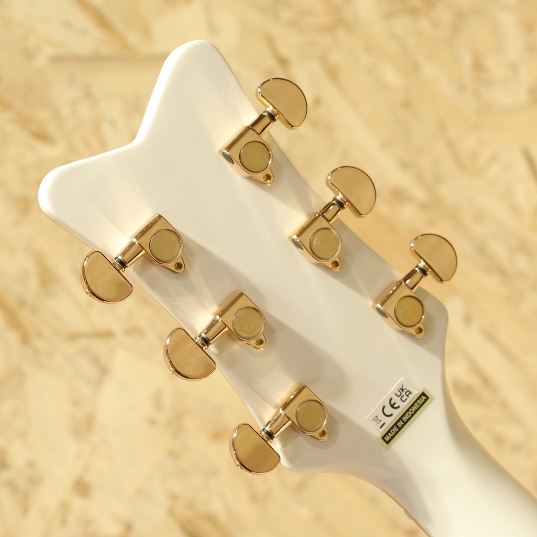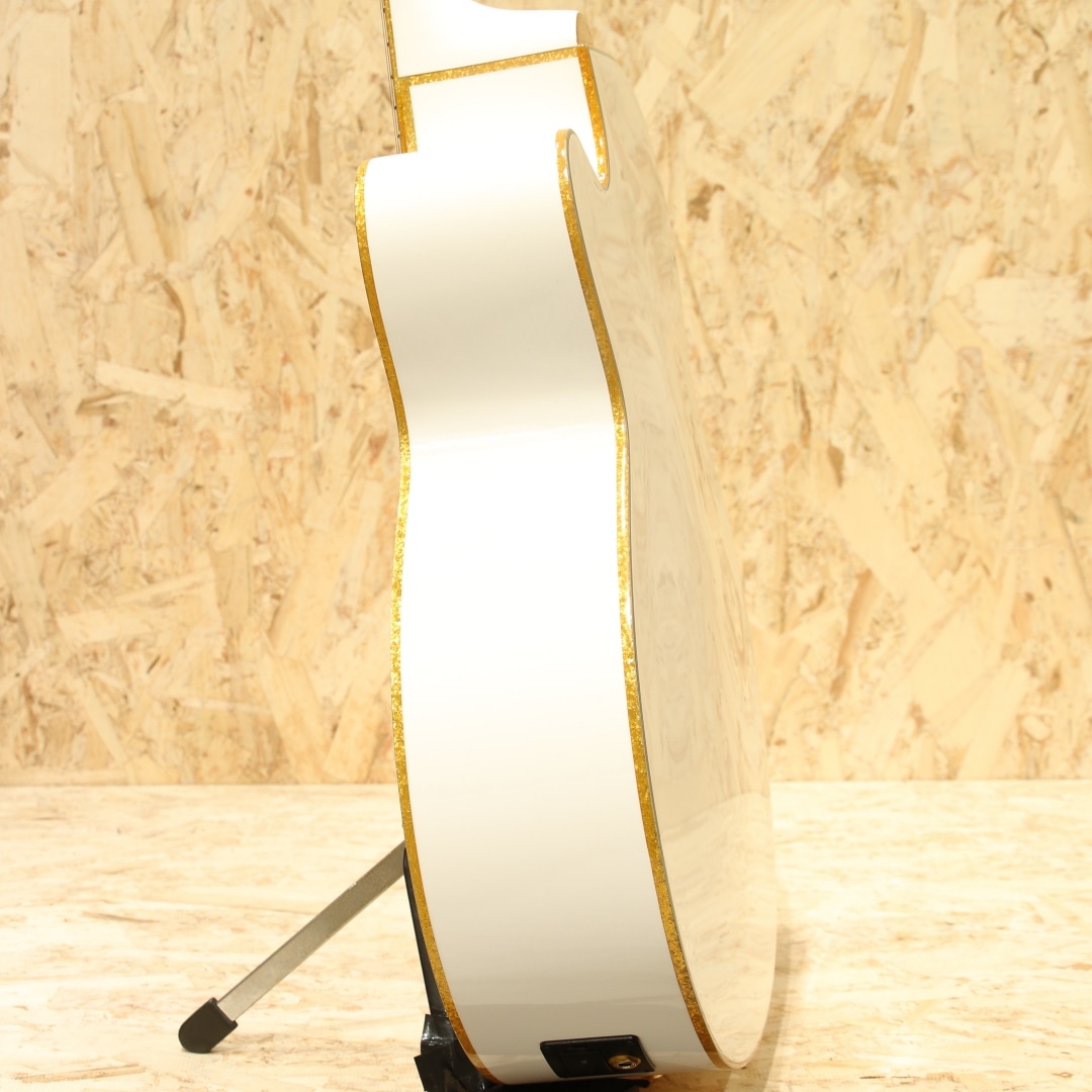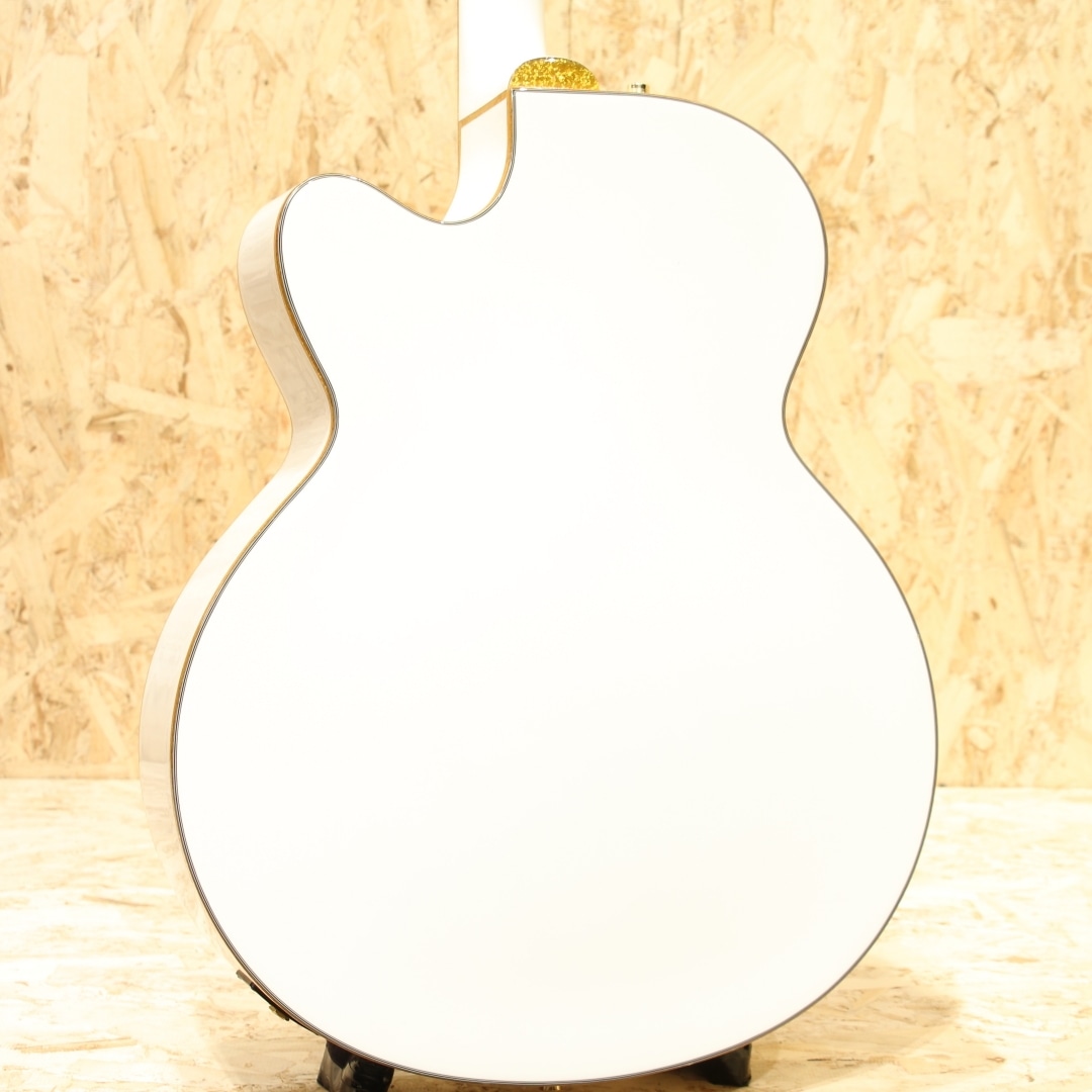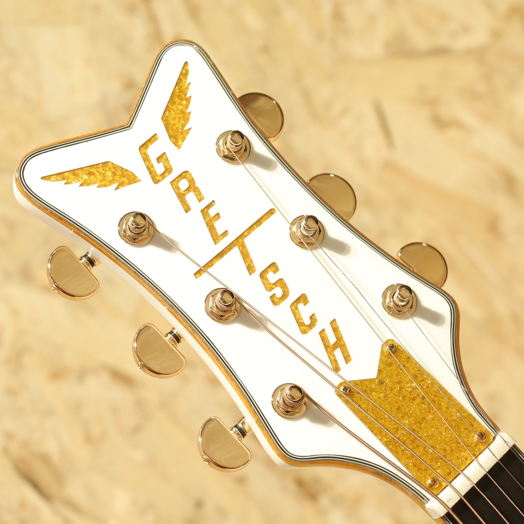 ギターを始めドラムやベース等多岐に渡り楽器を製造している老舗ブランド”Gretsch”。独自のアイデンティティを持ち根強いファンの多いブランドです。本器は美しいホワイトカラーにゴールドパーツの装飾が施された”G5022CWFE Rancher Falcon Jumbo”。スプルース単板トップ、メイプルサイド&バック、マホガニーネック、Neo-Classicのサムネイル・指板インレイ、ローズウッド台座付きコンペンセーテッド・ブリッジ、21フレット仕様のローレル指板、特徴的なランチャータイプの三角型サウンドホール、翼の付いた"Gretsch"スパークルロゴ、V字型ヘッドストック、金メッキされたハードウェア、カッタウェイ搭載、スキャロップドXブレイシング。スパークルな外周ライン、ゴールドのハードウェアにピックガード等グレッチFalconらしさを象徴するルックス。フルボディ特有のジャンボトーンを体感できるモデルです。カッタウェイの搭載によってハイポジションまでの演奏性も確保されています。扱いやすいジャンボボディの1本。Fishman SonicoreアンダーサドルPUと、ボリューム/トーン/フェーズ・コントロールを備えた機能的なIsys+プリアンプシステム、オンボードチューナー、バッテリー寿命インジケーターを搭載し、優れたラインサウンドでライブでの活躍も間違いありません。世界一美しいとも称されるホワイトファルコンを彷彿とさせるステージ映え抜群の1本。オリジナルソフトケースが付属いたします。