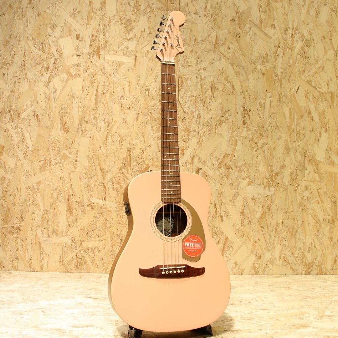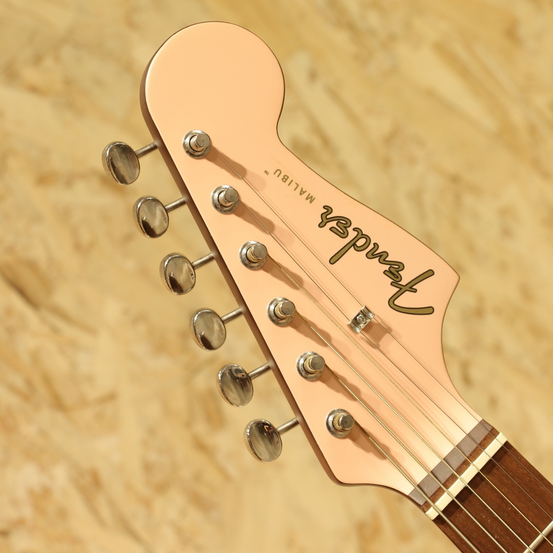 既存のスタイルに捉われず革新的な楽器を生み出し続ける”Fender”。エレキギターではその革新性を存分に活かしたラインナップが評価され長年ミュージシャンに愛用されてきました。近年ではAcoustasonicなどのアコースティックとエレキの融合を果たしたギターを生み出すなどの新たなカタチを創造し続けています。本器は小ぶりなサイズ感で優秀な演奏性を与えられた”Malibu Player”。本器はリミテッドエディション、淡く可愛らしく仕上げられたシェルピンクカラーです。シトカスプルース単板トップ、マホガニーサイド&バック、マホガニ-ネック、ウォルナット指板&ブリッジ、スキャロップドXブレイシング、Fishmanプリアンプシステム搭載。小ぶりで抱えやすいサイズ感、エレキギターで馴染みのある薄めのCシェイプネック、これらはエレキギターユーザーの方には非常に嬉しいポイント。意外とカラーリングの自由度が少ないアコースティックにおいて、エレキギターのようにカラフルなカラーリングをラインナップしている点も本ブランドの魅力の1つです。フェンダーを象徴するヘッド形状や3Pピックガード等Fender好きにはたまらない仕様を盛り込まれたギターです。サウンドバランスの整ったサウンド、明るく歯切れの良いサウンドが特徴的。アコギらしい爽やかさや煌びやかさを奏でることができ、心地よく演奏することが出来ます。指で弾くと柔らかく優しい音色をアウトプット。自分に合ったサウンドをチョイスして演奏出来ます。ピックアップはFishman製アンダーサドルピエゾピックアップシステムを搭載。操作盤はボリュームと2EQ、チューナーのみと非常にシンプルな構成。直感的な音作りが可能でサウンドメイクが苦手な方でも使いこなしていただけます。輪郭のはっきりした芯のあるラインサウンドはライブだけでなく配信や宅録までこなせる辺り選択肢を多く出来る優秀な1本です。初めてのアコースティックギターをお探しの方、気軽に弾けるサブギターをお探しの方にはオススメです。是非お手元で演奏をお楽しみ下さいませ。オリジナルソフトケースが付属します。