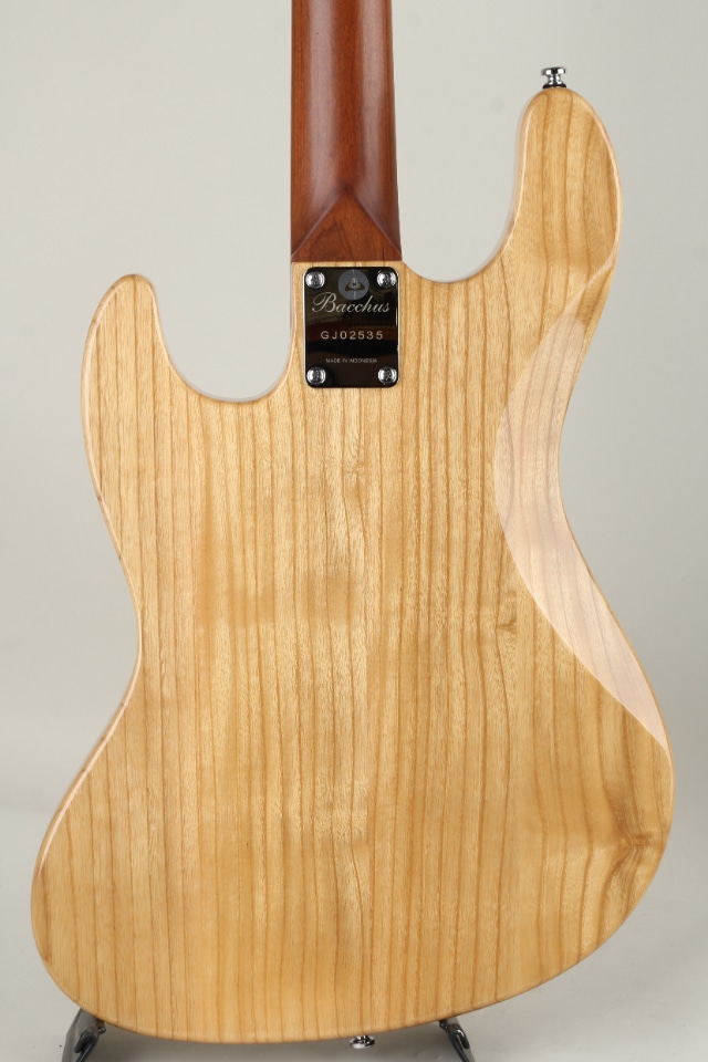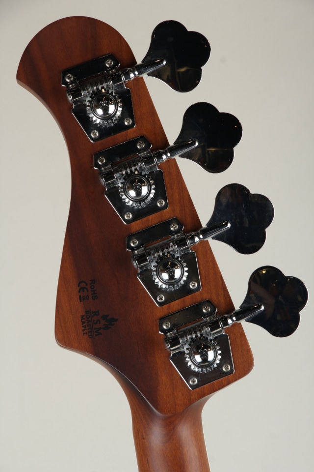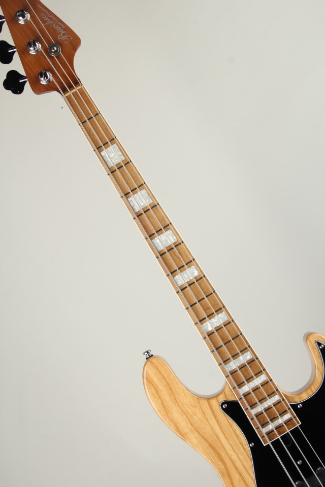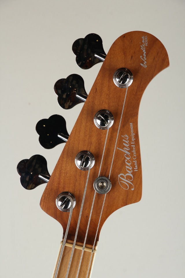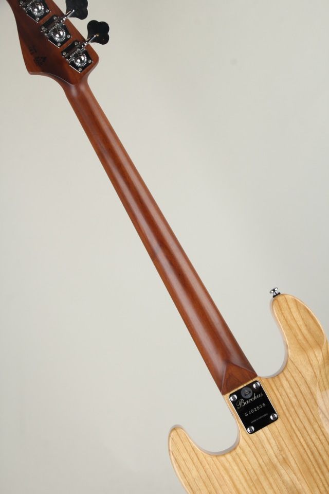 ウッドマテリアルにはアッシュボディのメイプルネック / メイプル指板を採用、ローステッド加工が施されたローステッドメイプルネックをはじめとして、34インチのロングスケールよりも短く設計された33インチ / 838mmスケールの採用など、バッカスおなじみの人気スペックを採用したジャズベースタイプでございます。オーソドックスな2ボリュームのマスタートーンに加えて、トーンノブをプッシュ / プルすることにより、ターボスイッチのオン / オフが可能となっております。
