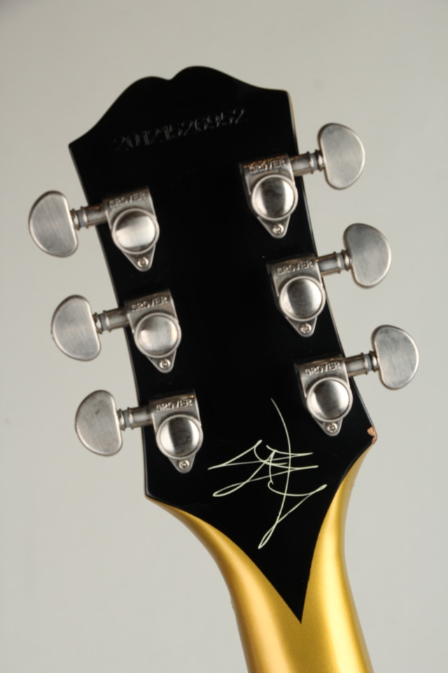 1ピックアップ、ラップアラウンドブリッジが特徴的なジャレッド・ジェイムス・ニコルスのシグネチャー・モデル、2020年製 Jared James Nichols Gold Glory Les Paul Custom Double Gold Vintage Aged でございます。