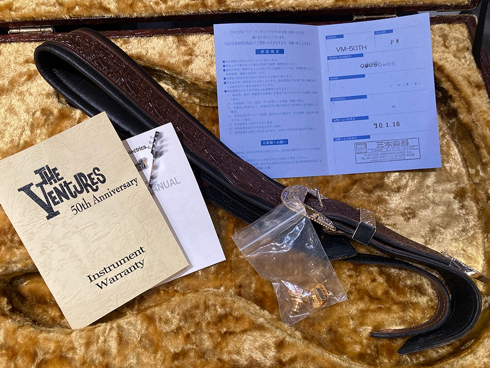 2009年、活動50周年を迎えたザ・ベンチャーズを記念して、日本国内わずか10本のみ製作された特別モデル。今もなお絶大な支持を誇る彼らの名を冠した「Ventures 50th Anniversary」が、美品コンディションを保った中古品として入荷いたしました。