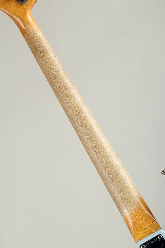 アルダーボディ、バインディング&ドットポジションマークが施されたメイプルネックにラウンド張りのローズ指板。パドルペグ搭載の66年仕様モデル。ソニックブルーにジャーニーマンレリックを施し、ビンテージ楽器さながらな雰囲気を醸し出しているクールなルックスのモデルとなっております。