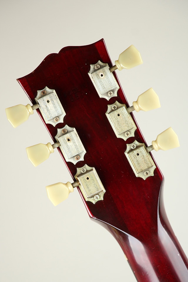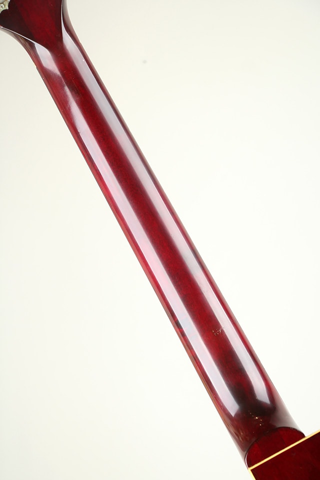 状態としましてポット×4が交換。テープピースがビグスビーに交換され、元のアンカー跡は埋められております。アームレストは一度剥がれ接着され直しされております。経年による塗装クラックや塗装焼け、ステッカー跡やピックガード欠けの他、全体的に傷や打痕等の使用感は見られますが演奏面は良好な状態をキープ。ネックコンディションは良好でトラスロッドの余裕もあり、フレット8残は割程となっており演奏面も良好です。