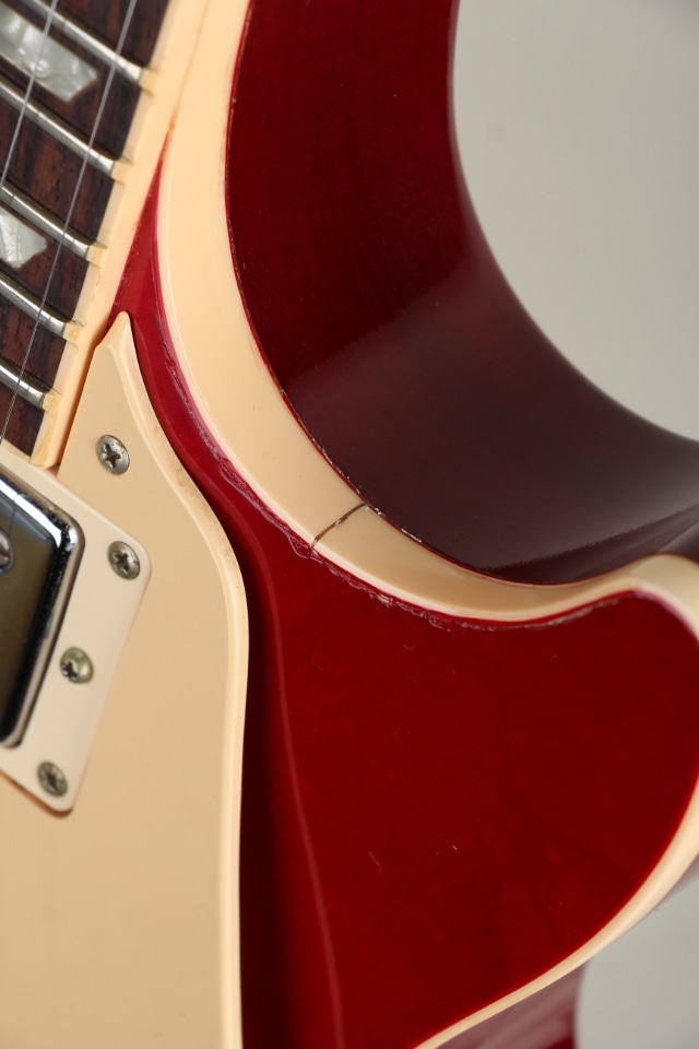 年式相応のキズや打痕、塗膜の経年感やクラックなどは見られますが、外観面を大きく損なうようなダメージはございません。現状のプレイアビリティに関して、ネック状態は問題無し、トラスロッドは効き良好左右に余裕あり、フレットには多少のすり減りは見られますが平均して8割以上は残っており、良好な外観とプレイアビリティをキープした個体でございます。
