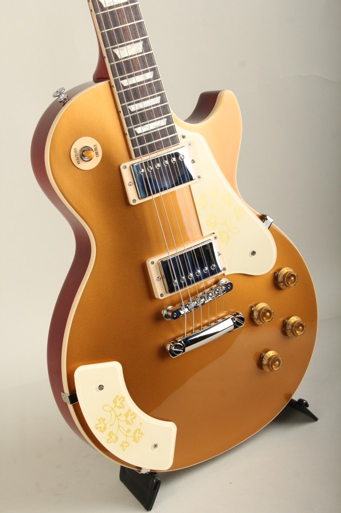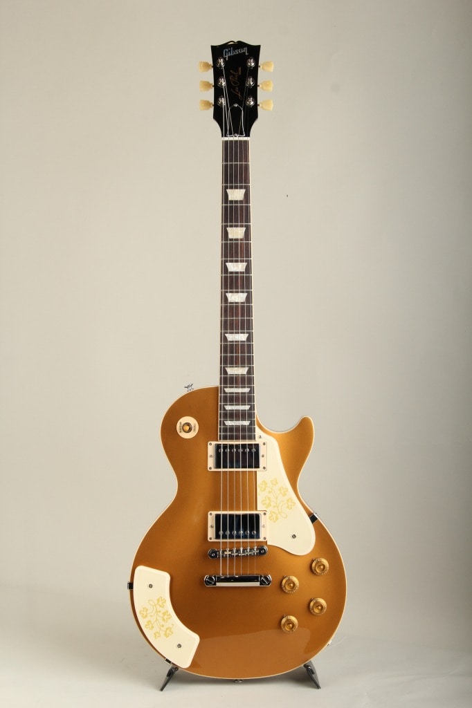 花柄のピックガードとアームレストが特徴的なゴールドトップのシグネイチャーモデルです。